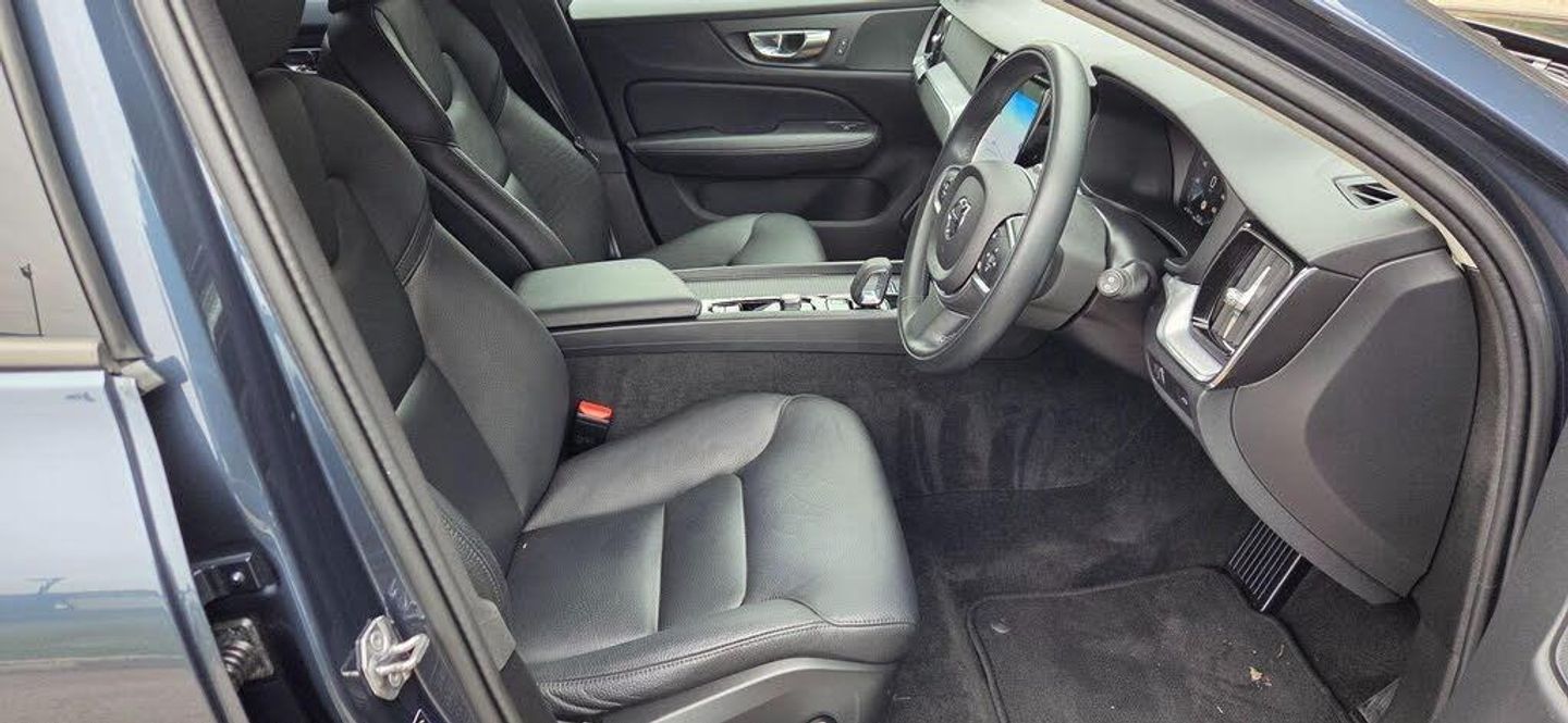 FANTASTIC CONDITION A REAL CHERISHED EXAMPLE, IN METALLIC BLUE WITH BLACK UPGRADED LEATHER, HEATED SEATS + STEERING WHEEL, FULL SCREEN NAVIGATION, REAR CAMERA, ELECTRIC TAILGATE, FULL VOLVO HISTORY. This 2021 Volvo V60 B4 Momentum is a well maintained example of this popular estate car. Powered by a 2.0 litre diesel hybrid engine, this Euro 6 compliant vehicle offers an efficient and refined driving experience. The Momentum trim level ensures a comfortable journey, enhanced by the Climate Pack which includes heated seats and a heated steering wheel, perfect for colder mornings. For added convenience, it features a power driver's seat with lumbar support and memory settings for both the seat and exterior mirrors, a Bluetooth handsfree system for seamless connectivity, and a rear park assist camera complemented by front and rear parking sensors to make manoeuvring effortless.The Volvo V60 is renowned for its practicality, and this model boasts a large boot space, making it ideal for families, hobbies, or any task requiring ample storage. The inclusion of features like the heated seats and steering wheel, along with the memory function for the driver's seat and mirrors, clearly demonstrates a higher level of comfort and personalisation compared to many other vehicles in its class. This V60 B4 Momentum combines sophisticated design with everyday usability, offering a premium experience for its owner.-FULL LEATHER/CLIMATE PACK-MINT-EXCEPTIONAL HPI CLEAR CARS. 12 MONTHS AA BREAKDOWN COVER. FULL DEALER FACILITIES