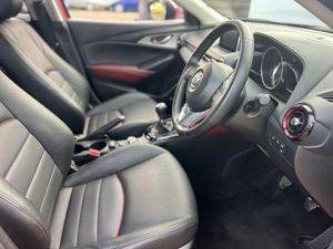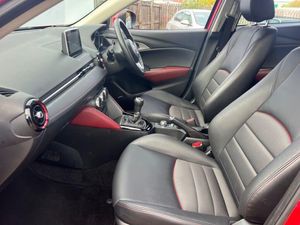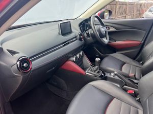 12V Power Socket - Front, 18in Alloy Wheels - Gun Metallic Diamond-cut, 7in Colour Touch Screen Display, Adjustable Speed Limiter, Aha App and Stitcher App Integration, Air Conditioning - Automatic Climate Control, Air Vents - Piano Black Surround with Dark Red Inner Ring, Airbags - Curtain Front, Airbags - Curtain Rear, Airbags - Driver, Airbags - Front Passenger, Airbags - Front Passenger Deactivation System, Anti Lock Braking System - 4W-ABS, AUX Socket, Bluetooth Audio Streaming, Bluetooth Hands Free System, Courtesy Light with Integral Spotlights, Cruise Control, Cupholder - Centre Console x2, DAB Radio, Dashboard Panel - Black - Soft-touch with Stitching, Deadlocking, Digital Speedometer, Door Mirrors - Electrically Adjustable-Heated-Folding-Turning Signal, Door Pockets - Front, Door Pockets - Rear, DSC - Dynamic Stability Control, Dusk Sensing Automatic Headlights, Dynamic Blue Mica, EBA - Emergency Brake Assist, EBD - Electronic Brakeforce Distribution, Electric Windows - Front and Rear with One Touch Auto Up and Down on Drivers Side, Emergency Stop Signalling System - ESS, Engine Start-Stop Button, Exhaust Tailpipes - Twin, Front Fog Lights - LED, Front Knee Pads - Dark Red - Soft-touch with Stitching, Front Side Airbags, Gear Knob - Leather-Wrapped with Satin Silver Surround, Gear Shift Indicator, Glovebox Illumination, Grab Handles - Front Passenger, Grab Handles - Two Rear with Coat Hooks, Handbrake - Leather Wrapped, Head Up Display, Headlights - Adaptive Front Lighting System, Headlights - Automatic Levelling, Headlights - Coming-Leaving Home, Headlights - LED, Hill Hold Assist, Immobiliser, Inner Door Handles - Satin Silver, ISOFIX Child Seat Anchorage for Outer Rear Seats, Lane Departure Warning System, Leatherette-Cloth - Black with Red Piping, LED Daytime Running Lights, Luggage Compartment - Flexible Floorboard for Adjustable Floor Height or Secure Separate Storage Space, Luggage Compartment - Light, Luggage Compartment - Tonneau Cover, Mazda Advanced Impact Distribution and Absorption System - MAIDAS, Multimedia Commander, Overhead Console with Sunglassess Holder, Pollen Filter, Power Assisted Steering - Electronic, Premium BOSE Sound System, Privacy Glass - Rear and Rear Side Windows, Radiator Grille - Chrome-accent, Radio-CD, Rain-Sensing Front Wipers, Rear Lights - LED, Rear Parking Sensors, Rear View Mirror - Manual - Day and Night Mode, Reversing Camera, Satellite Navigation - European Mapping with 3-years Map Updates, Satellite Navigation System, Seatback Pocket - Rear of Front Passenger Seat, Seatbelt Reminder - Front with Audible Warning, Seats - 60-40 Split Folding Rear, Seats - Drivers Manual Slide-Recline and Height Adjustment, Seats - Front Heated, Seats - Front Passenger Manual Slide and Recline Adjustment, Shark Fin Antenna, Side Door Trim - Dark Red - Soft-touch with Black Leatherette Inserts, Side Sill Trim - Chrome Accent, Smart City Brake Support, Smart Keyless Entry, Soft-touch Meter Hood - Black, Soul Red, Speakers x7, Spoiler - Rear Roof, SRS - Supplementary Restraint System, Steering Wheel - Leather-wrapped with Satin Silver Bezel, Steering Wheel - Mounted Audio and Bluetooth Controls, Steering Wheel - Telescopic and Tilt Adjust, Sunvisors - Driver and Front Passenger with Vanity Mirror, Sunvisors - Driver Ticket Holder, TCS - Traction Control System, Thatcham Catergory 1 Alarm, Three Height Adjustable Rear Head Restraints, Trip Computer, Tyre Pressure Monitoring System, Tyre Repair Kit, USB - iPod Connectivity, Voice Control for Phone