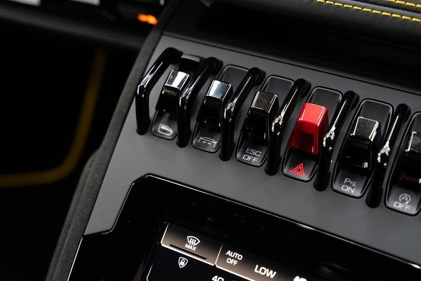 Sensonum Premium Sound System,Rear View Camera,19in Alloy Wheels - Morus Forged Shiny Black,Embroidered Lamborghini Shield on Headrest,Exterior Additional Lights on Front Bumper Predisposition,Roof Rails - Shiny Black,Tailpipes in Matt Black,Titanium Rear Arch,Yellow CCB Brakes Calipers,Dark Chrome Package,Floor Mats with Leather Piping and Double Stitching,Multifunction Steering Wheel in Alcantara and Central Mark in Contrast Colour,Giallo Inti,19in Alloy Wheels - Cerere Casted Silver,4th Year Maintenance Package,ABS - Anti-lock Braking System,Airbag - Driver,Airbag - Passenger,Anti-Theft Alarm,Autolock,Bluetooth Preparation - Hands Free Profile,Bridgestone Dueler - 235-40 R19 Front - 285-40 R19 Rear,Cruise Control,DAB - Digital Audio Broadcasting Tuner,Electrically Adjustable - Heating and Folding Side Mirrors with Door Panel Single-Arm Attachment,Electromechanical Power Steering,Exterior - Black Matt Painted Parts,Floor Mats,Front and Rear Parking Sensors,Immobiliser,Lamborghini Warranty 4th Year,Multifunction Steering Wheel in Smooth Leather and Central Mark - Rosso Alala,Remote Central Locking incl Luggage Compartment,Roof Rails - Matt Black,Side Mirrors - Black Matt,Silver CCB Brakes Calipers,Standard Comfort Seats,Sticker on Side Door,TPMS - Tyre Pressure Monitoring System,Tailpipes in Matt Grey,Tone on Tone Stitching,Vanity Mirrors in Sun Visors,Windows - Electric Front,Windscreen Washer System with 2 Wiper Speeds and Adjustable Intermittent Wiper