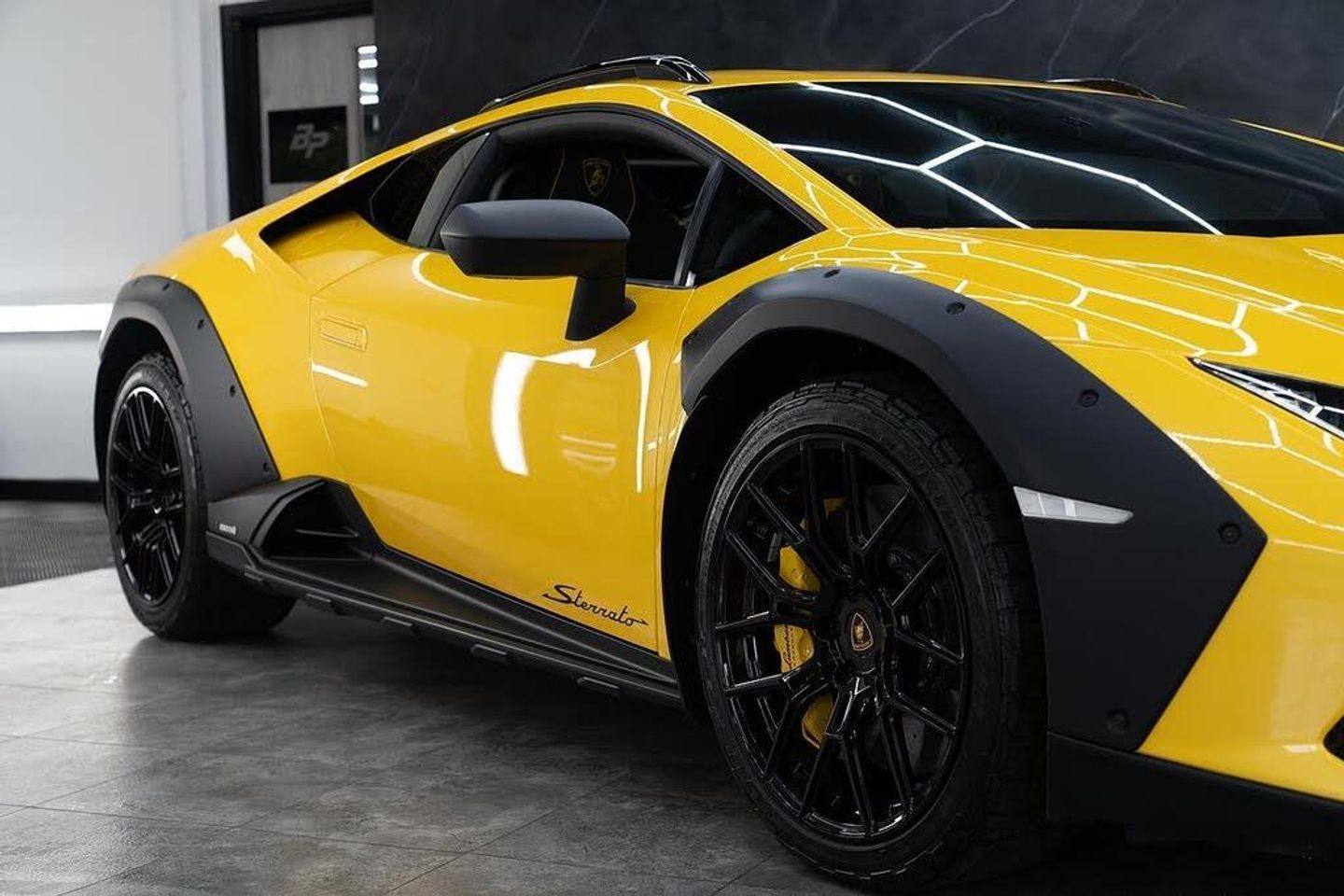 Better Performance are delighted to offer this Lamborghini Huracan Sterrato finished in Giallo Inti - Pearl. A VAT Qualifying, 1 owner, delivery mileage example that remains under Lamborghini Manufacture Warranty until July 2028 and benefits from full exterior PPF. Specification: Giallo Inti - Pearl 19' Morus Rims Forge Shiny Black Additional Lights on Bumper Predisposition Titanium Rear Arch Sensonum Premium Sound System Rear view camera Yellow CCB Brakes Calipers Floor Mats with Leather Piping and Double Stitching Tailpipes in Matt Black Embroidered Lamborghini Shield on Headrest Multifunction Steering Wheel in Alcantara and Central Mark in Contrast Colour Roof Rails - Shiny Black Dark Chrome Package Giallo Taurus Seat Belts Unicolour Leather and Alcantara with Contrast Stitch