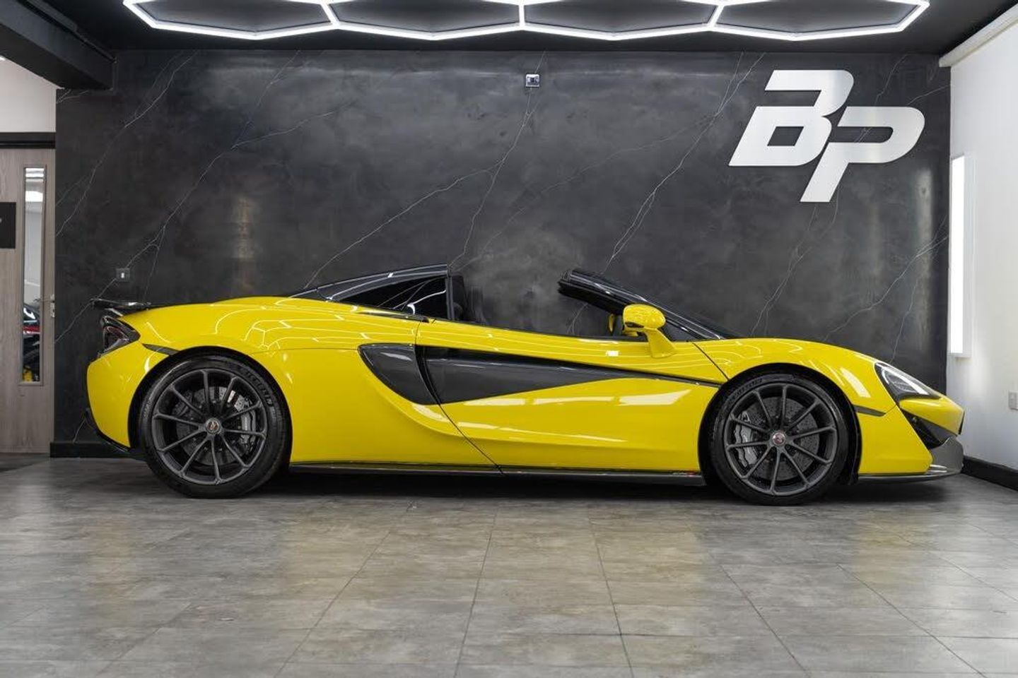 Bower and Wilkins Audio System,Front and Rear Parking Sensors,Rear View Camera,19in Front and 20in Rear Alloy Wheels - 10 Spoke Super Lightweight Forged,Dark Palladium Roof,Sports Exhaust,Stealth Exhaust Finisher,Stealth Wheel Finish,Contrast Stitch,Leather Sill Finishers with McLaren Branding,Leather-Alcantara Headlining,Lux Pack,Power Adjust Heated Memory Sports Seats,Soft Close Doors,Sicilian Yellow,Track Pack,Vehicle Lift,Security Pack,Vehicle Tracking System,By McLaren Designer Interiors - Sport - Jet Black with Sicilian Yellow,12V Accessory Socket,19in Front and 20in Rear Alloy Wheels - Sport 10 Spoke,3x Handling Modes - Normal - Sport - Track,7in Portrait Touch Screen Monitor,AM-FM Radio,Adaptive Damping S Tune,Alarm,Anti-Lock Braking System - ABS,Audio Media Player,Automatic LED Daytime Running Lights and Rear Lights,Automatic Lights and Rain Sensor,Black Leather Steering Wheel,Black Seatbelts,Bluetooth Telephony,Body Colour Door Mirror Casings and Door Mirror Arms,Body Colour Retractable Hard Top Roof,Brake Calipers - Black with Silver McLaren Logo,Carbon Ceramic Brakes with 6 Piston Calipers Front and 4 Piston Calipers Rear,Central High Mounted Stop Lamp,Cruise Control,DAB Radio,Dark Palladium Aero Blades,Dark Palladium Diffuser,Dark Palladium Exterior Door Inserts,Dark Palladium Front Splitter,Dark Palladium Rear Deck,Dark Palladium Rear Spoiler,Dark Palladium Service Cover,Dark Palladium Side Intakes,Dark Palladium Side Skirts,Dark Palladium Tonneau Cover,Dihedral Doors,Driver and Passenger Airbag,Dual Function LED Rear Fog - Reverse Light,Dual Zone Climate Control,Dynamic Electronic Stability Control - DESC,Electrically Folding Heated Door Mirrors with Dip in Reverse Functionality,Electrochromatic Dipping Rear View Interior Mirror,Electronic Immobiliser,Electronic Parking Brake,Exposed Engine Bay,Exterior and Interior Secondary Mechanical Door Releases,Follow Me Home Headlights,Front Side Airbags,Full LED Headlights with Automatic Headlight Levelling,Glass Wind Deflector,Hill Hold Assist,IRIS Navigation,Keyless Entry and Lock - Keyless Start,Launch Control,Manual Adjust Steering Column - Reach and Rake,Manual Sports Seats,McLaren 4-Speaker Audio System,McLaren Brake Steer,On-Board Memory,One Touch Electric Windows,Pirelli P ZERO Corsa Tyres,Power Steering,Rear Window Heating Element on Glass-Rear Window,Satin Chrome Brightwork,Silver Badge Set,Silver Exhaust Finisher,TPMS - Tyre Pressure Monitoring System and Tyre Temperature Gauge,Textile Headlining,Tilt Sensors,Tonal Stitch,Traction Control - TC,Trip Computer,Two Piece Retractable Hard Top Roof,USB Connectivity and AUX In,iPod-iPhone Integration