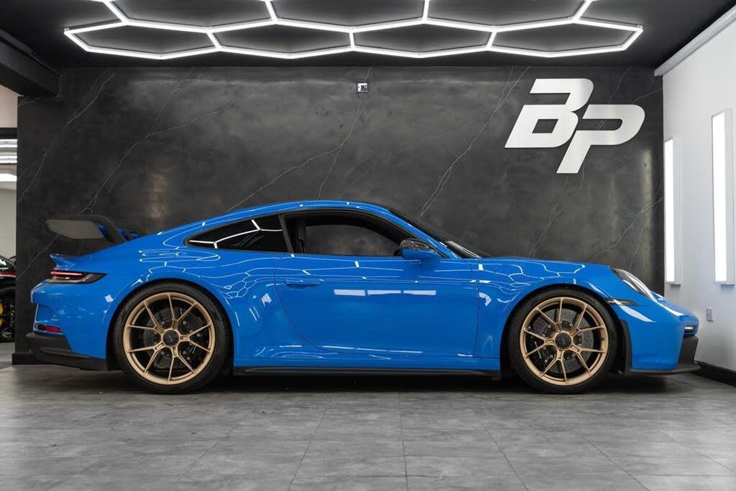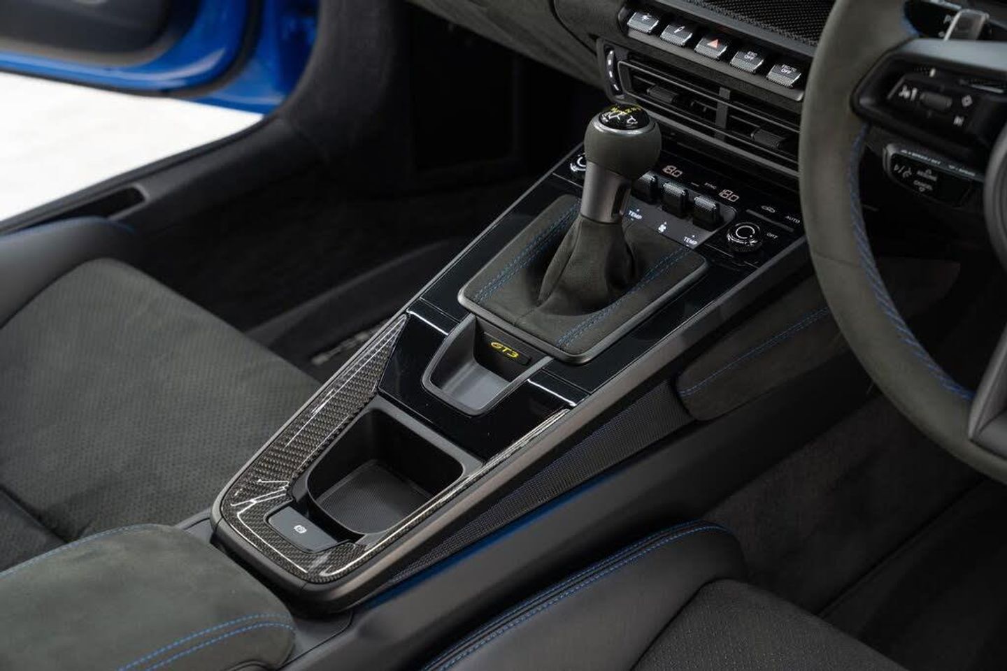 BOSE Surround Sound System,ParkAssist - Rear with Reversing Camera,Lightweight Carbon Roof,Wheels Painted in Satin Neodyme,LED Main Headlights in Black including Porsche Dynamic Light System - PDLS,Club Sports Package,Interior Package - Carbon,Interior Trim Package with Decorative Stitching and Embroidery in Contrasting Colour,Light Design Package,Race-Tex Sun Visors,Rev Counter in White,Seat Belts - Shark Blue,Seats - Full Bucket,Shark Blue,Chrono Package including Preparation for the Lap trigger,Front Axle Lift System,PCCB - Porsche Ceramic Composite Brakes in Black,Leather - Black with Shark Blue Stitching,2 USB-C Ports in Centre Console Main Storage Compartment Lid - 12V Socket in Passenger Footwell,20in Front 21in Rear Alloy Wheels - 911 GT3 Forged - Silver,3-Point Automatic Front Seat Belts with Buckle on Seat,Adjustable Suspension for Race Track Use,Automatic Headlight Activation including Welcome Home Lighting,Black Race-Tex Seat Centres - Steering Wheels Rim - PDK Gear Grip Area including Gaiter - Door Pulls - Door Panel Armrest - Centre Console Main Storage Compartment Lid Armrest,Brake Pad Wear Indicator,Brushed Aluminium Interior Package in Black,Central Wheel Bolts in Black and Wheel Hub Cover with GT3 Logo,Clothes Hooks on Seat Backrests,Cruise Control,Digital Radio,Door Sill Guards in Brushed Aluminium in Anthracite with GT3 Logo,Double Wishbone Front Suspension with Anti-Roll Bar,Electric Parking Brake,Electromechanical Power Steering with Variable Steering Ratio and Speed Sensitive Power Steering Assistance,Engine Immobiliser,Exterior Mirrors Upper and Lower Trim Painted in Exterior Colour - Mirror Base Painted in Satin Black,Exterior Mirrors on Door Waist Rails - Electrically Adjustable and Heatable - Aspherical on Drivers Side,Fixed Rear Wing with Swan Neck Connection and Wing Mounts in Aluminium which are Integral to the Bodyshell,Floor Mats,Front Apron in Exterior Colour - Black Lower Section with Integral Cooling Air Intakes with Anthracite-Coloured Grilles and Black Spoiler Lip,Full-Size Airbags for Driver and Front Passenger,GT-Specific PDK Gear Selector with Manual Gate and Grip Area including Gaiter in Black Race-Tex - Gate Surround with GT3 Logo in Yellow,Glove Compartment - Lockable and Storage Compartment in Each Door,Heated Rear Screen,Illuminated Vanity Mirrors in Sun Visors - Driver and Passenger Sides,Instrument Cluster with Central Analogue Rev Counter - Two 7in TFT Display,Intelligent Lightweight Construction in Aluminium-Steel-Composite Construction,Keyless Go,LED Auxiliary Lights Units in Front Apron with Position Lights - Direction Indicators and Side Indicators,LED Main Headlights - Daytime Running Lights with 4-Point LED Spotlights,LED Reading Lights - Orientation - Ignition Lock - Luggage Compartment - Footwell - Glove Compartment and Exit Courtesy Lighting,Lightweight Bonnet in Carbon-Fibre Reinforced Plastic in Exterior Colour with Two Air Outlets,Lightweight Glazing made of Compound Glass and Acoustic Film,Lightweight Rear Cover - Covered with Black Carpet,Lightweight Sport Exhaust System in Stainless Steel with Two Central Stainless Steel Tailpipes in Black,Luggage Compartment - Front,Multi-Link Rear Axle with Integrated Helper Springs - Anti-Roll Bar,Multifunction GT3 Sports Steering Wheel - PDK Shift Paddles in Dark Silver and Mode Switch,PASM - Porsche Active Suspension Management,PCM - Porsche Communication Management - Include Navigation,PTV Plus - Porsche Torque Vectoring Plus,PVTS - Porsche Vehicle Tracking System,Particle-Pollen Filter with Active Carbon Filter,Porsche Connect Online Navigation,Porsche Side Impact Protection - POSIP,Porsche Stability Management - PSM Including ABS with two Switchable Stages - SC OFF and SC Plus TC OFF,Porsche Track Precision App,Power Windows with One-Touch Operation and Door Seal Protection Function,Rear Apron with Additional Air Outlets Including Anthracite-Coloured Grilles - Black Lower Section,Rear Apron with GT3 Logo in Black,Rear Axle Steering with Sports Tuning,Rear Wing in Exterior Colour with Side Plates on Rear Wing - Wing Uprights in Black,Remote Central Locking,Retractable Door Handles,Rev Counter with Digital Display for Selected Gear and Vehicle Speed - Distinguishable Dial and Illuminated GT3 Logo,Roof Lining and A-B-C Pillar Trims in Race-Tex,Seamless Taillight Strip with Integrated Porsche Logo in Satin Black,Seat Bolsters - Headrests and Steering Wheel Airbag Module in Black Leather,Side Window Trim Strips and Side Skirts in Black,Six-Piston Closed Type Aluminium Monobloc Fixed Brake Calipers at Front and Four-Piston Closed Type Aluminium Monobloc Fixed Brake Calipers at Rear - Brake Calipers with Red Finish,Smartphone Integration - Apple Carplay and Android Auto,Sound Package Plus,Sports Seats Plus - Electrical 4 Way,Stitching and Embroidered GT3 Logos in GT Silver,Taillight Strip as Rear Driving Lights with Integrated Parking and Rear Fog Light,Taillights with Brake Light - Reversing Light and Direction Indicators Plus Third LED Brake Light,Trim Strips in Black with Inlays in Brushed Aluminium in Anthracite - Dashboard and Door Panel Trim Strips and Centre Console Trim,Two Individual Cupholders,Two-Zone Automatic Climate Control,Tyre Pressure Monitoring - TPM,Underbody Panelling with Rear Diffuser Featuring Fins,Water-Repellent Coating on Side Windows,Windscreen Washer System with Aero Wiper Blades and Washer Jets,Windscreen with Grey Top-Tint