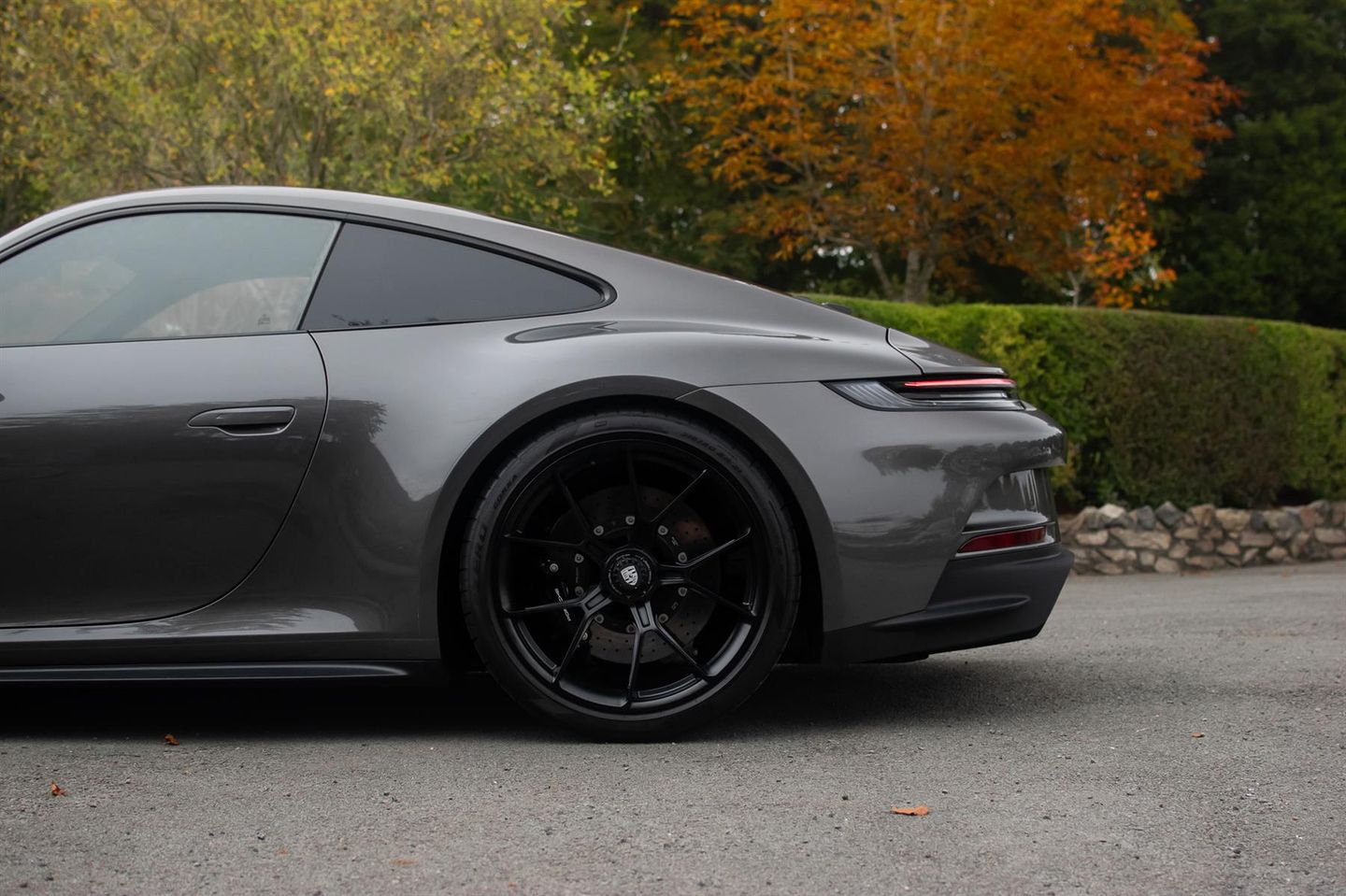 Agate Grey. Black leather / Race-Tex interior trim, Sports seats plus, heated seats, Porsche Ceramic Composite brakes with Black calipers, front axle lift, lightweight Carbon roof, tinted matrix headlights, exclusive design rear lights, exterior Touring pack in Black, BOSE surround sound, Apple CarPlay, Satin Black alloy wheels, auto dimming mirrors. Front end Paint protection film. Full Official Porsche Centre service history. Balance of Porsche warranty expires June 2027.