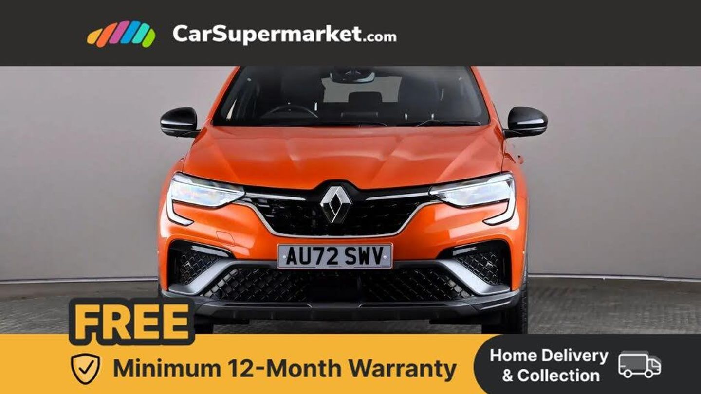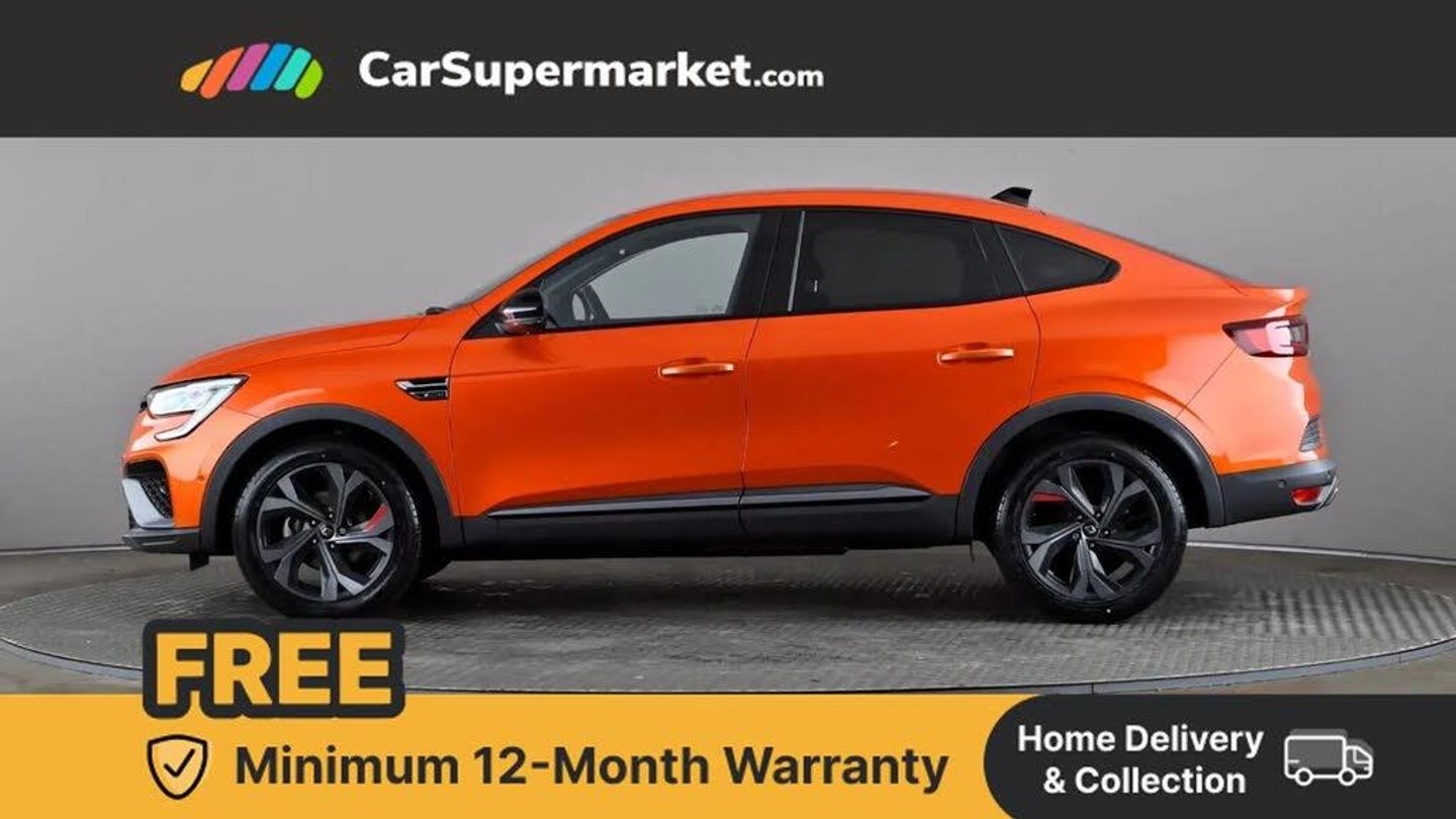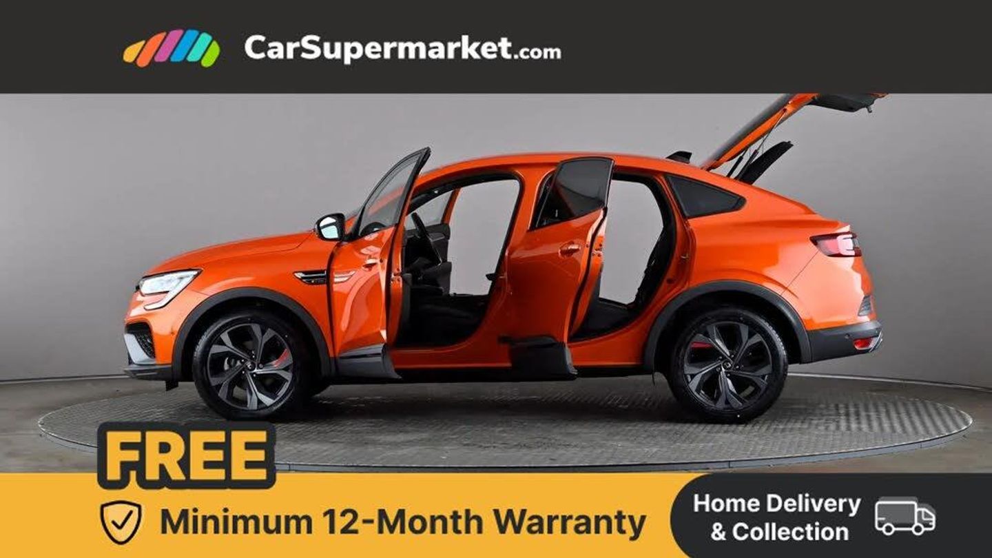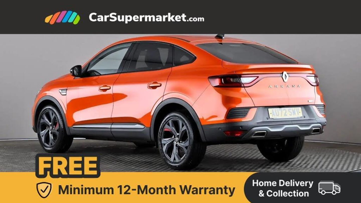7" TFT Driver information display,Blind spot warning,Bluetooth system,EASY LINK 9.3" portrait touchscreen with navigation, Google search and traffic information,eCall emergency call system,Eco mode,EV button to activate pure mode,Front and rear parking sensors,Gear change indicator,Lane departure warning,Lane keep assist,Multi-sense - 3 driving modes and 8 ambient lighting,Rear cross traffic alert,Rear view camera,Renault automatic emergency assist,Smartphone integration compatible with Apple CarPlay and Android Auto,Traffic sign recognition with over speed prevention,Trip computer,Variable assistance electric power steering,Wireless phone charger,DAB radio,USB port,3rd brake light,Auto dimming rear view mirror,Automatic headlights,Automatic high / low beam,Automatic windscreen wipers with rain sensor,Black side door protection with gun metal insert,Body coloured bumpers,C-shaped LED front signature lighting,Chrome decopart on wing (fender molding) with R.S. Line badge,Double chromed exhaust tailpipes elements,Extra tinted rear windows and tailgate,Frameless rear view mirror,Front and rear electric windows,Front bumper with F1 blade and honeycomb front grille,Front driver window with one touch facility and anti-pinch function,Front grille with chrome on upper part,Full LED headlights,Glossy black door mirror and lower window lining,Gun Metal front and rear skid plates,Heated rear window,R.S. Line badges on front wing and hatch door,Rain sensor,Rear windscreen wiper,Shiny black shark fin antenna,Side mirrors adjustable electrically, electrically foldable, with defrosting and temperature sensor, automatically foldable at vehicle closure,3 seat bench in 2nd row,60:40 split and fixed base rear seats,Aluminium pedals,Automatic climate control with combined filter, humidity sensor and AQS,Black interior roof lining,Carbon style dashboard,Central console with storage,Driver's seat height adjustment,Electrically adjustable front seats,Front and rear head restraints,Height and reach adjustable steering wheel,ISOFIX child seat fixing points on rear outermost seats,LED front and rear roof lights,Passenger seat height adjuster,R.S. line black suede-leather upholstery with red/grey stiching,R.S. Line perforated leather steering wheel with red/black harmony and R.S. Line badge,Rear air vents,Red inserts on air vents,Single front passenger seat,Parking Pack - Hands-free parking & flank protection - Arkana,Winter pack - Arkana,3x3 point rear seat belts,ABS+EBA,Active emergency braking system,B Brake Mode - One pedal driving with increased regenerative braking,Distance warning alert,Driver airbag,Driver and passenger front and side airbag deactivation,Driver and passenger side airbags,Driver height adjustable seat belt,Electronic parking brake with auto hold,ESC (Electronic Stability Control),Front and rear no seatbelt warning sound,Front curtain airbags,Front head airbags,Hill start assist,Passenger airbag,Tyre pressure warning light,Anti drill door locks and locking fuel cap,Central door locking,Deadlocking system,Hands free keycard with Keyless access and start,RAID (Renault Anti-Intruder Device) automatic door locking,Rear side wing door and window child locking function (front driver door control panel),Superlocking,Thatcham alarm,18" Silverstone diamond alloy wheels with red inserts,Valencia Orange,RS Line Suede-Leather - Black with Red-Grey Stitching