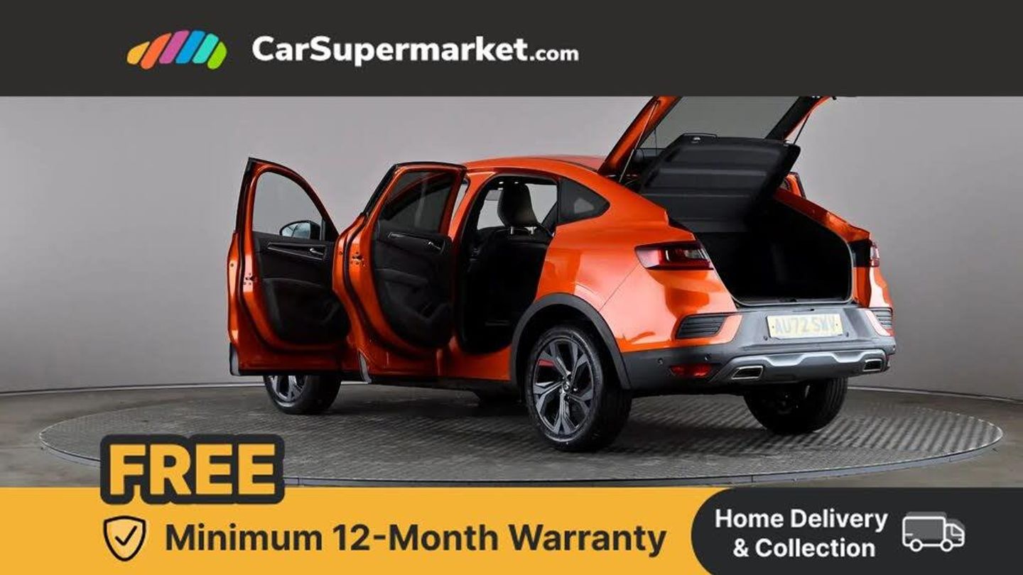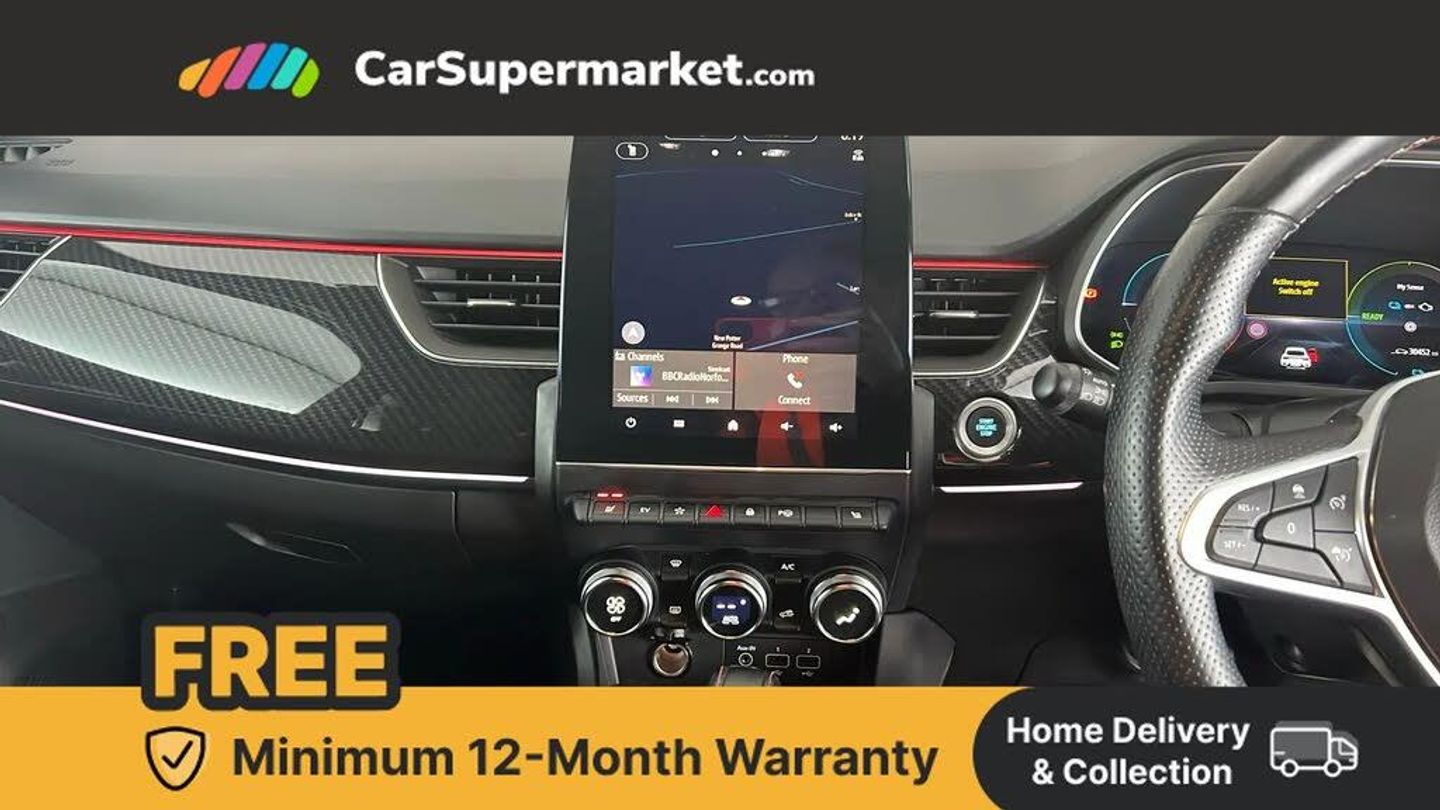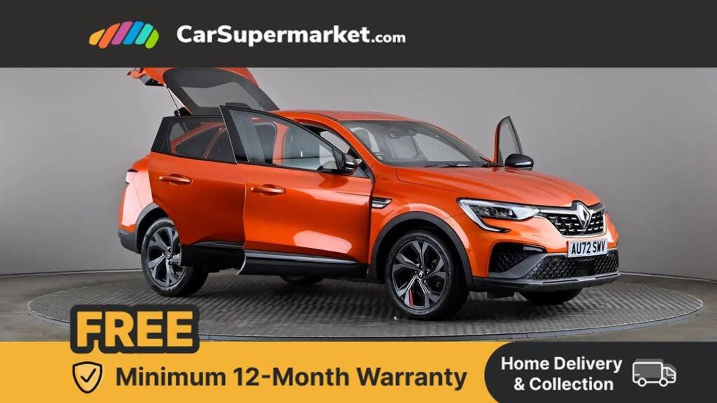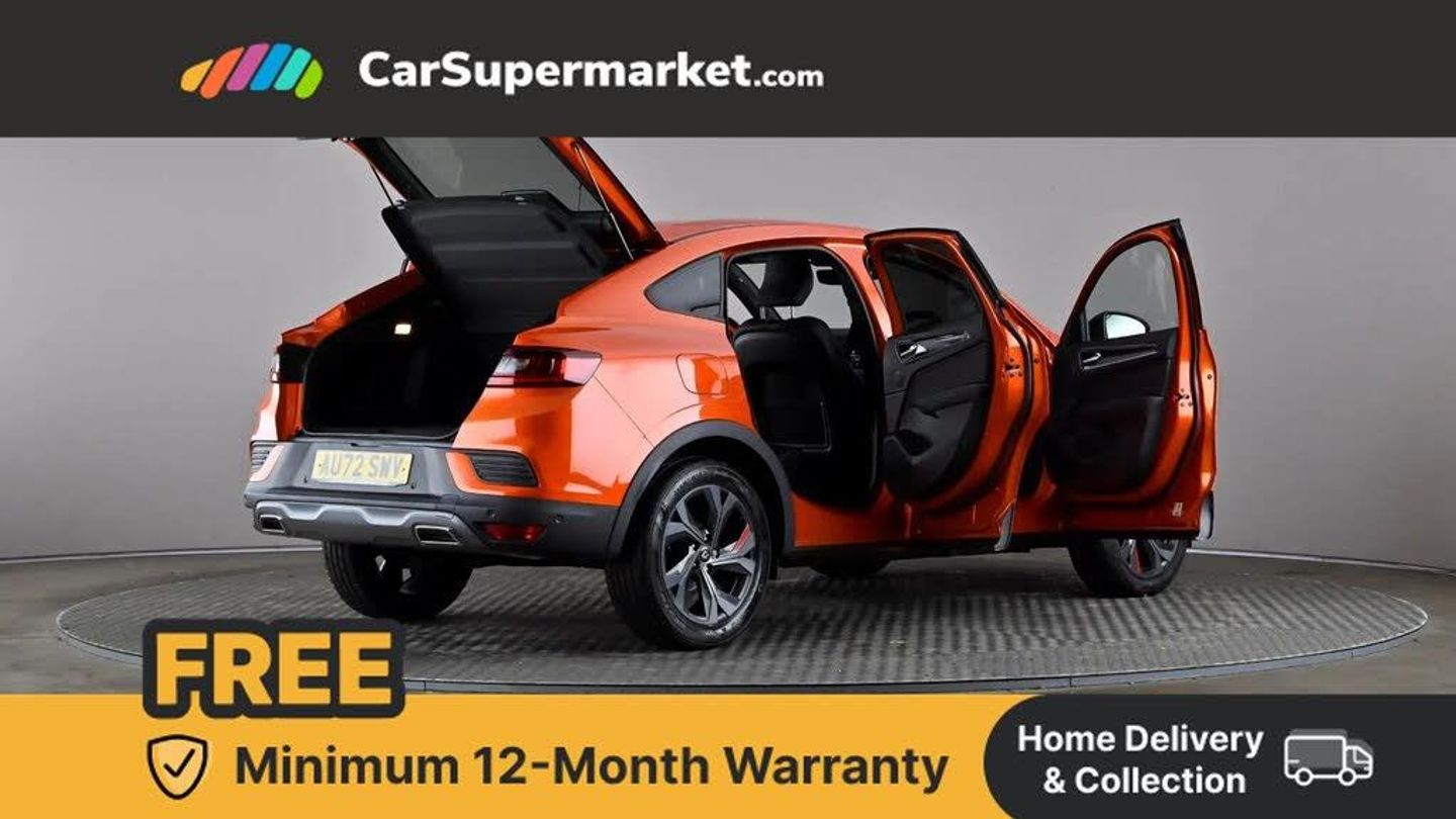 7" TFT Driver information display,Blind spot warning,Bluetooth system,EASY LINK 9.3" portrait touchscreen with navigation, Google search and traffic information,eCall emergency call system,Eco mode,EV button to activate pure mode,Front and rear parking sensors,Gear change indicator,Lane departure warning,Lane keep assist,Multi-sense - 3 driving modes and 8 ambient lighting,Rear cross traffic alert,Rear view camera,Renault automatic emergency assist,Smartphone integration compatible with Apple CarPlay and Android Auto,Traffic sign recognition with over speed prevention,Trip computer,Variable assistance electric power steering,Wireless phone charger,DAB radio,USB port,3rd brake light,Auto dimming rear view mirror,Automatic headlights,Automatic high / low beam,Automatic windscreen wipers with rain sensor,Black side door protection with gun metal insert,Body coloured bumpers,C-shaped LED front signature lighting,Chrome decopart on wing (fender molding) with R.S. Line badge,Double chromed exhaust tailpipes elements,Extra tinted rear windows and tailgate,Frameless rear view mirror,Front and rear electric windows,Front bumper with F1 blade and honeycomb front grille,Front driver window with one touch facility and anti-pinch function,Front grille with chrome on upper part,Full LED headlights,Glossy black door mirror and lower window lining,Gun Metal front and rear skid plates,Heated rear window,R.S. Line badges on front wing and hatch door,Rain sensor,Rear windscreen wiper,Shiny black shark fin antenna,Side mirrors adjustable electrically, electrically foldable, with defrosting and temperature sensor, automatically foldable at vehicle closure,3 seat bench in 2nd row,60:40 split and fixed base rear seats,Aluminium pedals,Automatic climate control with combined filter, humidity sensor and AQS,Black interior roof lining,Carbon style dashboard,Central console with storage,Driver's seat height adjustment,Electrically adjustable front seats,Front and rear head restraints,Height and reach adjustable steering wheel,ISOFIX child seat fixing points on rear outermost seats,LED front and rear roof lights,Passenger seat height adjuster,R.S. line black suede-leather upholstery with red/grey stiching,R.S. Line perforated leather steering wheel with red/black harmony and R.S. Line badge,Rear air vents,Red inserts on air vents,Single front passenger seat,Parking Pack - Hands-free parking & flank protection - Arkana,Winter pack - Arkana,3x3 point rear seat belts,ABS+EBA,Active emergency braking system,B Brake Mode - One pedal driving with increased regenerative braking,Distance warning alert,Driver airbag,Driver and passenger front and side airbag deactivation,Driver and passenger side airbags,Driver height adjustable seat belt,Electronic parking brake with auto hold,ESC (Electronic Stability Control),Front and rear no seatbelt warning sound,Front curtain airbags,Front head airbags,Hill start assist,Passenger airbag,Tyre pressure warning light,Anti drill door locks and locking fuel cap,Central door locking,Deadlocking system,Hands free keycard with Keyless access and start,RAID (Renault Anti-Intruder Device) automatic door locking,Rear side wing door and window child locking function (front driver door control panel),Superlocking,Thatcham alarm,18" Silverstone diamond alloy wheels with red inserts,Valencia Orange,RS Line Suede-Leather - Black with Red-Grey Stitching