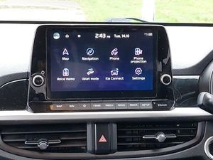 8" touch screen satellite naviagtion with RDS and DAB with telematics, Reversing camera system with dynamic guidelines (Integrated into centre fascia screen), Apple car play/Android Auto with voice control, Wireless Smartphone charger, Rear parking sensors, Kia Connect (UVO), USB ports for connection of a media device, Heated front seats, Heated steering wheel, Advanced Driver Assistance Pack - Picanto, Smart key with engine start/stop button, 16" alloy X-Line wheels