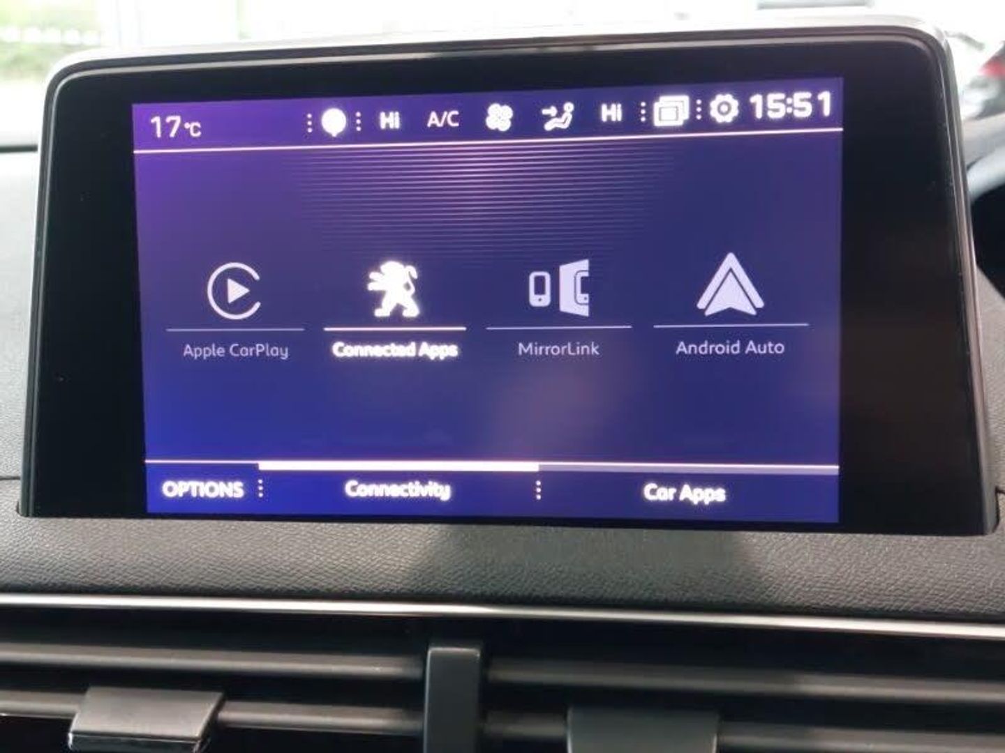 PEUGEOT i-Cockpit with configurable 12.3" Head-up digital instrument panel, PEUGEOT i-Cockpit with 8.0" capacitive touchscreen in centre console, 3D connected navigation + voice control + Peugeot connect SOS and assistance, Bluetooth telephone facility, Lane departure warning system, Front and rear parking sensors, Mirror screen with mirror link, apple carplay and android auto, PEUGEOT i-Cockpit with amplify (choice of two configurable interior ambiences), PEUGEOT i-Cockpit with compact sports steering wheel, Speed limit recognition and recommendation, Sports button, Dynamic stability control and electronic anti-skid system, USB socket, Steering column mounted multifunction controls, Door mirror mounted LED Peugeot lion approach lights, Full LED headlights with LED fog lights with static cornering function, sports front bumper and grille, GT Line emblem in satin copper, LED daytime running lights, LED rear lights, LED sequential scrolling front indicators, LED side indicator lights integrated into door mirrors, Radiator grille in chrome edge trim with chequered design and black 'PEUGEOT' lettering, Rear LED Peugeot signature 'Claw Effect' lights, Blue ambient lighting for connecting zone, Blue ambient lighting to front door panels, central storage and cupholders, LED interior lighting in storage spaces and load area, Mistral full grain perforated leather steering wheel with aikinite stitch detail and satin chrome 'GT Line' emblem, Roof lining - Mistral black, Safety pack - 3008, Safety Plus Pack - 3008, Visibility pack - 3008, Brumeo fabric Dashboard, front and rear door panel finish