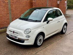 We are pleased to present this Fiat 500 lounge, 1.2, 3 door Petrol Manual Euro 5 (s/s) (69 bhp), In white with unusual black interior dash and steering wheel with cloth interior, MOT until August 2026.we have just replaced front offside absorber, service history, due to be serviced by ourselves. Cambelt replaced at 59648 miles , Very economical tax just 35 pounds per year. Car presents well, has been very well looked after. Great spec, alloys, Electric windows, electric mirrors, remote central locking, airbags all round, panoramic roof with blind, aircon, Folding rear seats, city driving mode, CD, ABS, Isofix, Body coloured bumpers. 1 original key, spare wheel, tool kit and parcel shelf all present. 30 day warranty including parts and labour. HPI clear, Ready to drive away. Any viewing or test drive welcome via appointment in our indoor showroom. We specialise in Fiat 500s, currently have over 25 in stock always happy to answer any questions. priced very well in todays market, Located just outside Tamworth, junction 11 of the M42