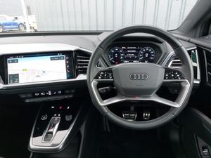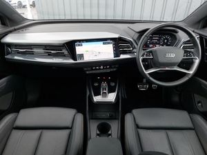 Rear view camera, Audi Virtual Cockpit - 10.25" display, Apple CarPlay, Android Auto, Heated front seats, Power operated tailgate with sensor controlled release, MMI Navigation Plus with high resolution 11.6 inch touchscreen colour display, Adaptive cruise control with speed limiter, Audi smartphone interface, Audi drive select, Camera based traffic sign recognition, Lane departure warning including emergency assist, Bluetooth interface, DAB Digital radio, Audi sound system with 8 loudspeakers incl. centre speaker, subwoofer and 6-channel amplifier with total output of 180 watts, 2 USB-C ports with charge and data functions, Electrically adjustable/heated/folding/auto dimming door mirrors with integrated LED indications + kerb view function for passenger side, Privacy glass - dark-tinted rear window, rear door windows and rear side windows, Black cloth headlining, Ambient lighting plus pack - Q4 E-tron, Frameless auto dimming interior rear view mirror, Pre-sense front with pedestrian and cyclist detection, Keyless Go, LED daytime running lights, 4 way electric lumbar support for driver and front passenger