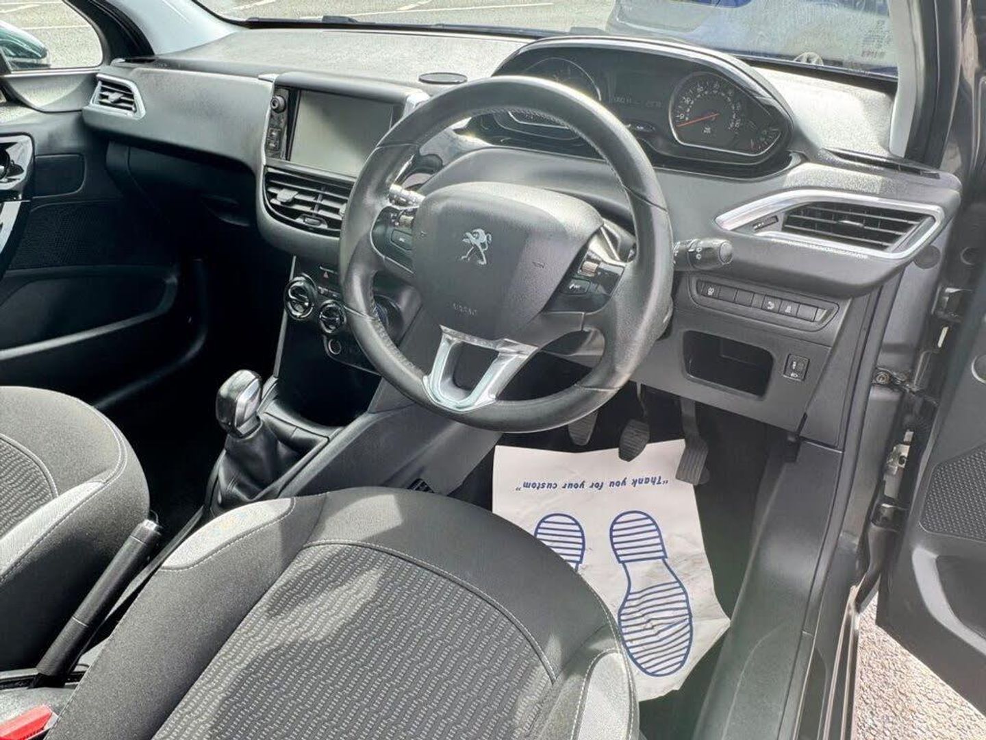 1/3 to 2/3 split folding rear seats, 3 rear 3 point seatbelts, 3 rear head restraints, 4 speakers + 2 tweeters, ABS/EBFD/EBA, Aluminium door sill trims, Automatic activation of hazard warning lights, Auxiliary input socket, Auxilliary 12V power socket, Body coloured bumpers, Body coloured door handles, Child safety lock, Chrome door mirrors, Chrome front fog light surround, Cloth upholstery, Cruise control + speed limiter, DAB Digital radio, Dark tinted rear windows, Driver and passenger airbags, Driver seat height adjust, Driver/passenger sunvisors and vanity mirrors, Electric operated/heated door mirrors, EPAS, ESP, External temperature gauge, Follow me home headlights, Front and rear curtain airbags, Front fog lights, Front side airbags, Full size spare wheel, Height adjustable front headrests, Honeycomb radiator grille, Immobiliser, Intermittent rear wash/wipe, ISOFIX on outer rear seats, Leather and chrome gear knob, Leather steering wheel, LED daytime running lights, LED rear lights, Manual air conditioning, One touch electric front windows, Panoramic glass roof with sunblind, Passenger airbag deactivation system, Peugeot connect with USB and bluetooth, Reach + rake adjustable steering column, Rear parking aid, Refrigerated glovebox, Remote central locking + deadlocks, Seatbelt warning lamp and buzzer, Service interval indicator, Steering wheel mounted remote controls, Touchscreen colour Satellite Navigation and 2nd USB, Traction control, Trip computer, Tyre pressure sensor