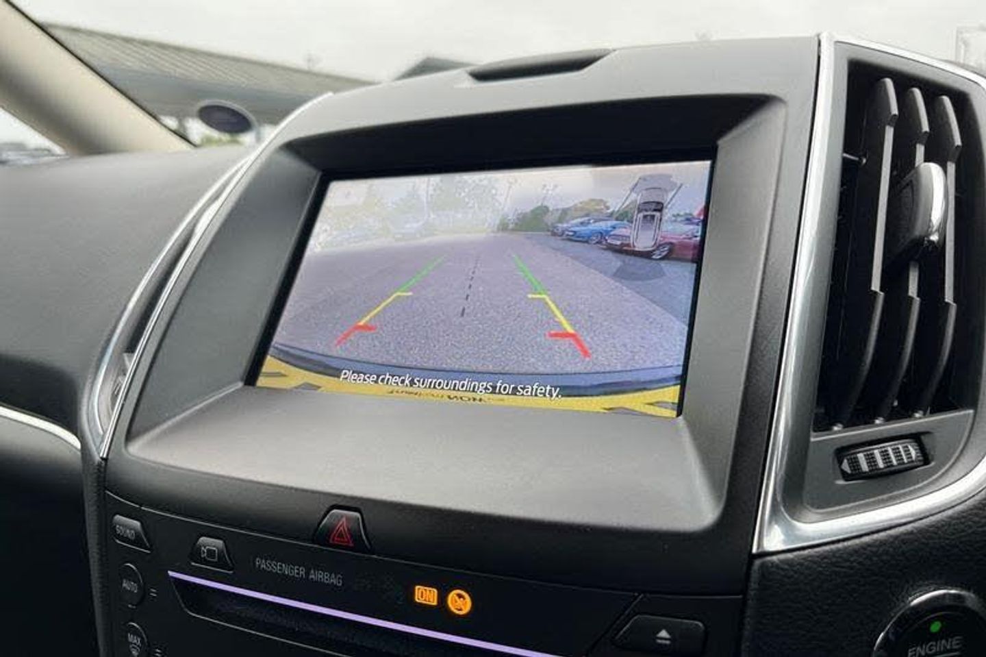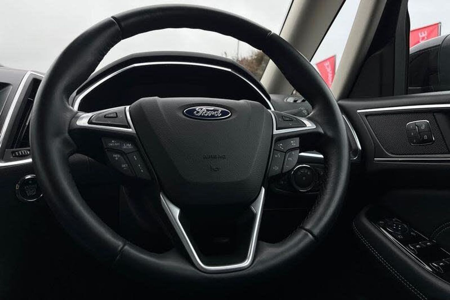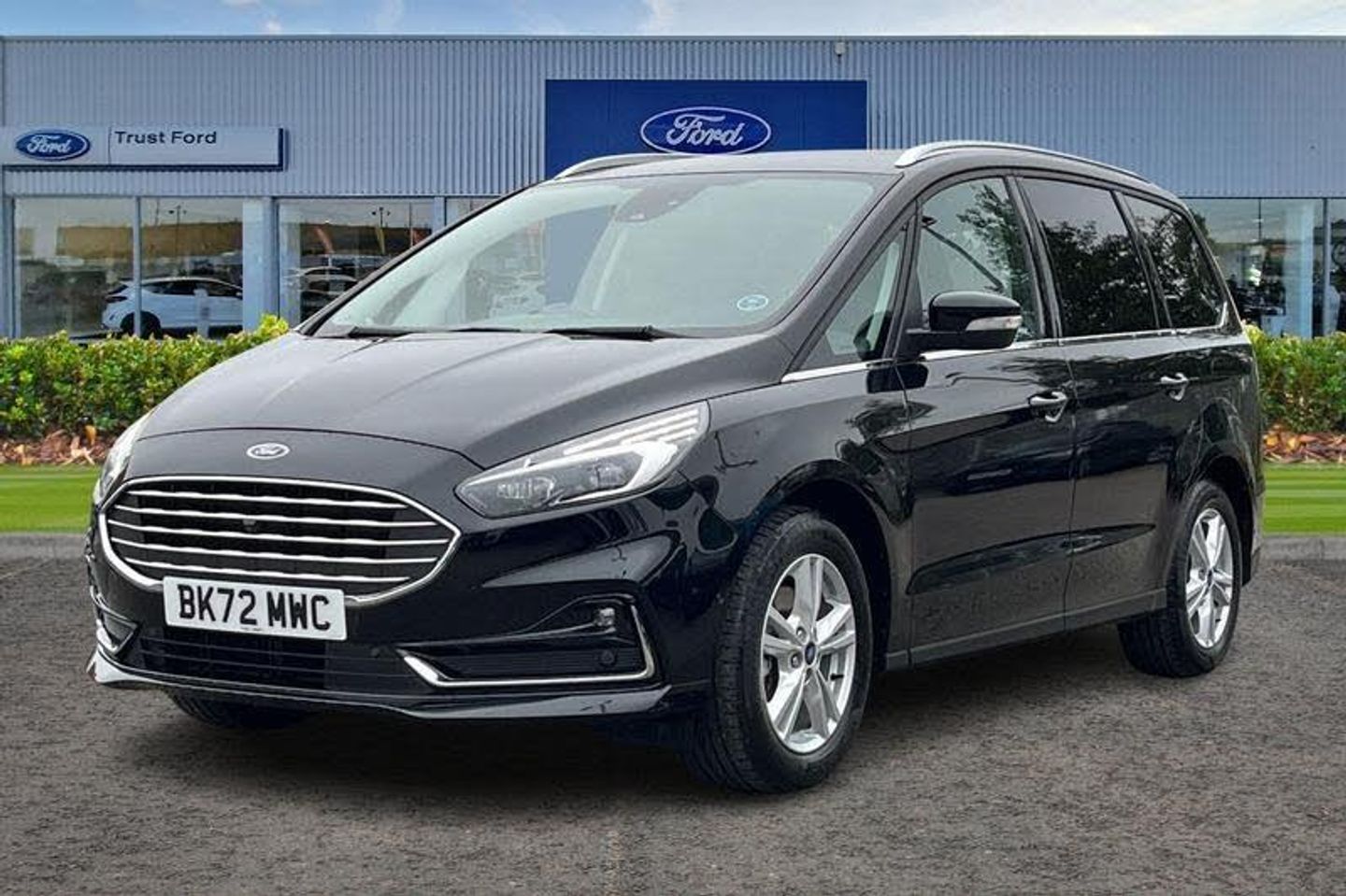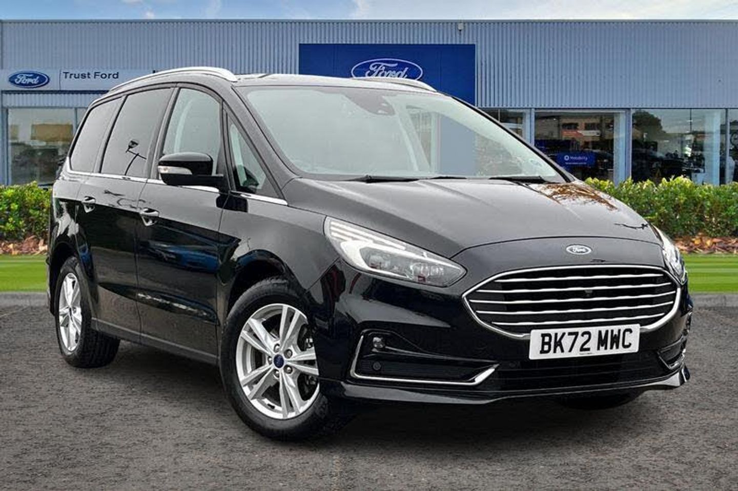 'Ford Power' starter button, Easy fuel capless refuelling system, eCall emergency call system, Ford pass connect embedded modem, Hydraulic PAS, Lane keeping aid - Driver impairment monitor, active steering with lane departure warning, Lights on warning, Outside temperature display, Tailgate, Traffic sign recognition, Trip computer, Unique instrument cluster, Auto dimming rear view mirror, Auto high beam assist, Automatic headlights, Automatic wipers with variable sensitivity adjustment, Body colour bumpers, Body colour door mirrors, Chrome trim to lower side windows, Dual exhaust pipes, Electric front and rear windows + one touch + global open/closing, Front fog lights, Halogen headlight with cornering lights, Headlight courtesy delay, Hybrid badge, LED daytime running lights, LED rear lights, LED third brake light, Lower front grille with chrome surround, Power folding and heated door mirrors, Quickclear heated windscreen, Rain sensor, Rear privacy glass - dark glass to rear windows, Rear side wing doors, Silver roof rails, 2 height adjustable headrests - 3rd row, 230V power outlet in centre console, 2nd row reading lights, 3 height adjustable headrests - 2nd row, 3 individual fold flat 2nd row seats, 3rd row rear seats with manual fold flat, slide/recline and manual easy entry, Ambient interior lighting (excludes 2nd row footwell), Driver/passenger sunvisors with illuminated vanity mirrors + covers, Dual zone air conditioning, Floor mats in all three rows, Front door scuff plates, Front headrests, Front seat armrests, Front seat storage pockets, Front sports seats, ISOFIX attachments for child seats in 2nd row, Leather gear knob, Leather trimmed steering wheel, Manual adjustable front seats + lumbar support, Overhead console with child observation mirror, Pollen filter, Reach + rake adjustable steering column, Rear cupholders, Single passenger seat, Sunglasses storage, Tray tables on front seatbacks, 3 point seatbelts on all seats, ABS, Child proof door locks, Driver and passenger airbags, Driver and passenger side airbags, Drivers knee airbag, Electric handbrake, Electronic brake force distribution, ESP with traction control + emergency brake assist, Pre-Collision assist with AEB, Regenerative braking system, Seatbelt warning, Side curtain airbags, Tyre pressure monitoring system