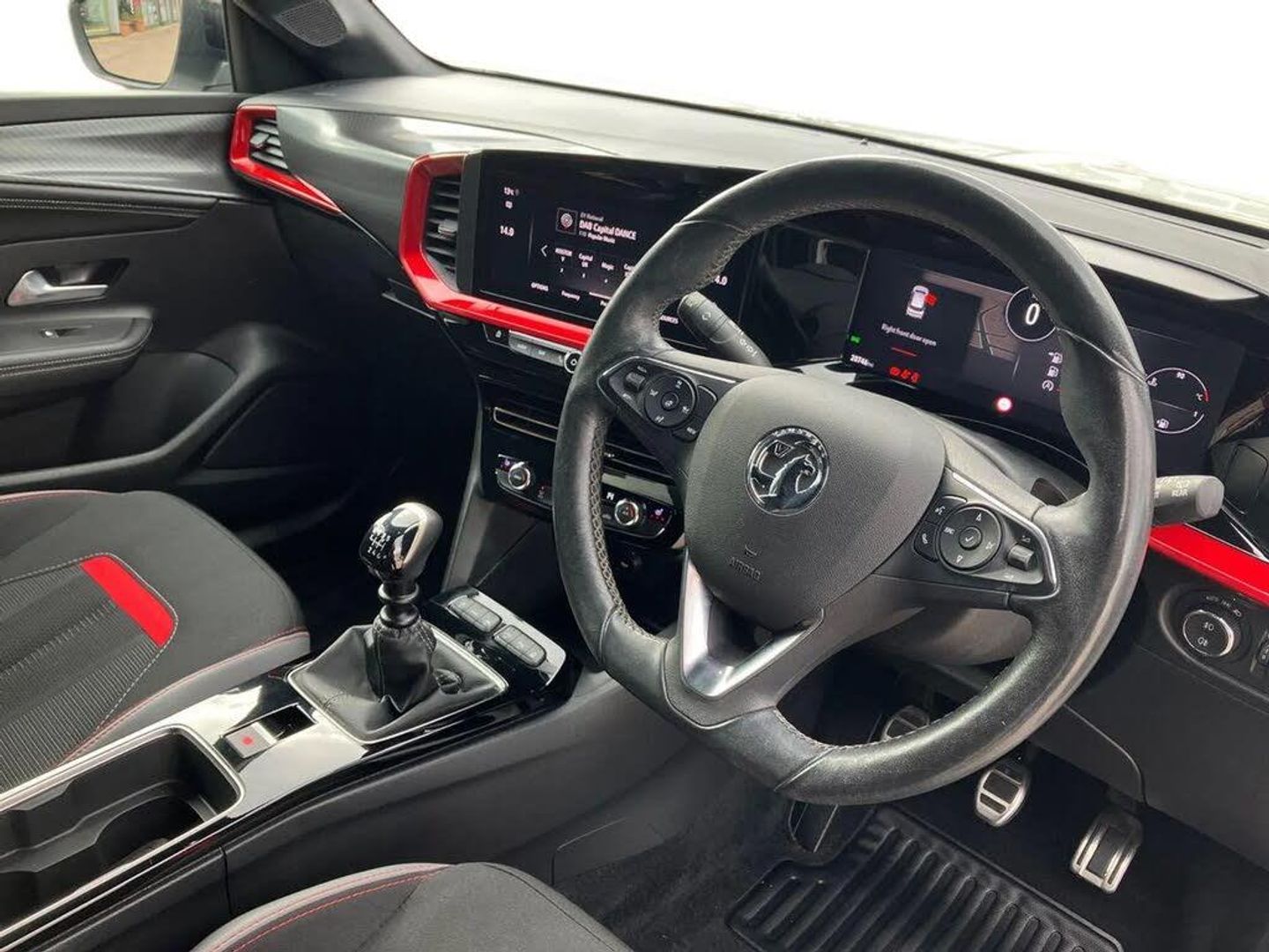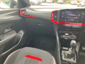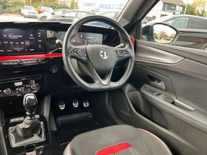 Automatic adaptive cruise control,Driver drowsiness alert system,Engine start/stop button,Front and rear parking distance sensors,Front camera system,Lane keep assist system (LAS) with Lane departure warning system (LDWS),Lights on audible warning,Multi function trip computer,Panoramic rear view camera,Power assisted speed sensitive steering,Side blind spot alert and flank guard,Smartphone integration compatible with Apple CarPlay and Android Auto,Speed sign recognition,Sports switch with engine sound enhancement,Start/stop system,Vauxhall connect with e-Call,6 speed manual transmission,Chassis drive line front wheel drive,Electronic fuel system,Front chassis equipment,Rear chassis equipment,Standard chassis suspension system ride handling,Bluetooth A2DP audio streaming,Flexible Roof Mounted Radio Aerial,Front USB connection,Mobile phone portal - bluetooth connect, vehicle microphone, handsfree calls, SMS read out and reply, phone book access,Multimedia Navi pro infotainment with satellite nav, 10" colour touchscreen, 6 speakers, DAB radio, 12" instrument panel, Apple carplay/Android auto,Steering wheel mounted controls,Two rear USB sockets,3rd brake light,Adaptive brake lights,Automatic lighting control with tunnel detection,Automatically dimming anti dazzle rear view mirror,Black door mirror housings,Black Griffin logo and vizor frame,Black rear spoiler,Black skid plates,Body colour door handles,Body colour front and rear bumpers,Dark tinted rear side windows + tailgate window,Electrically adjustable, heated and folding door mirrors,Electrically operated front and rear windows with safety auto reverse and one touch up/down facility,Hazard warning lights,Heated rear window+rear wash/wipe,High beam assist,LED daytime running lights,LED front fog lamps,LED side repeat indicators,LED tail lights,Manual headlamp level control,Rear foglight,Rear side wing doors,Rear wiper,Reversing light,Two speed rain-sensitive windscreen wipers with variable intermittent wipe,Windscreen and side window demist vents,12V Accessory socket,3 seat bench in 2nd row,3 spoke flat bottomed leather steering wheel with satin chrome bezel,4 speed fan with illuminated controls,6 way manual adjustable driver fore/aft, up/down with reclining seatback,6 way manual adjustable front passenger fore/aft, up/down with reclining seatback,Air recirculation system,Alloy sports pedals,Black headliner,Cabin particulate filter - removes dust, airborne particles and pollen,Centre console with two cup holders at front and one in rear,Chrome effect interior door handles,Door pockets with two litre capacity,Driver and passenger seat pocket,Driver and passenger sun visors with vanity mirror,Electronic climate control (ECC),Fabric/leather upholstery with jet black fabric side bolsters,Four adjustable facia vents,Four load restraint lashing eyes,Front centre armrest with storage,Front map reading lights,Front seat back storage pockets,Fully carpeted load area,Heated front seats,Heated steering wheel,Height adjustable front/rear head restraints,Illuminated load area,Interior courtesy light,Interior tailgate handle,Luggage compartment cover,Luggage compartment lighting,Reach + rake adjustable steering column,Single front passenger seat,Twin gas assisted tailgate struts,2x Isofix child seat fitting on outer rear seats,3x3 point rear seat belts,Anti-lock braking system (ABS),Automatic emergency city braking,Child proof locks on rear doors,Cornering brake control,Deactivation switch for front passenger front and side impact airbags,Drag torque control,Driver and front passenger airbags, front seat side impact airbags, full size curtain airbags,Electronic brake force distribution,Electronic Stability Programme (ESP),Emergency brake assist,Forward collision alert at all speed,Hill start assist,Inertia reel lap and diagonal seatbelts for all seats,Seatbelt unfastened audible warning and warning light,Straight line stability control,Traction control,Tyre pressure monitoring system,Electronically protected audio equipment,Freewheeling door locks,Immobiliser,Key left in ignition audible warning,Keyless entry and start,Locking wheel nuts,Remote control ultrasonic security alarm system,Visible vehicle identification number,Atlantis black trim inserts of front doors,Black facia with red trim insert,Instrument panel bar in Light Gravel,18" bi colour alloy wheels with red accents
