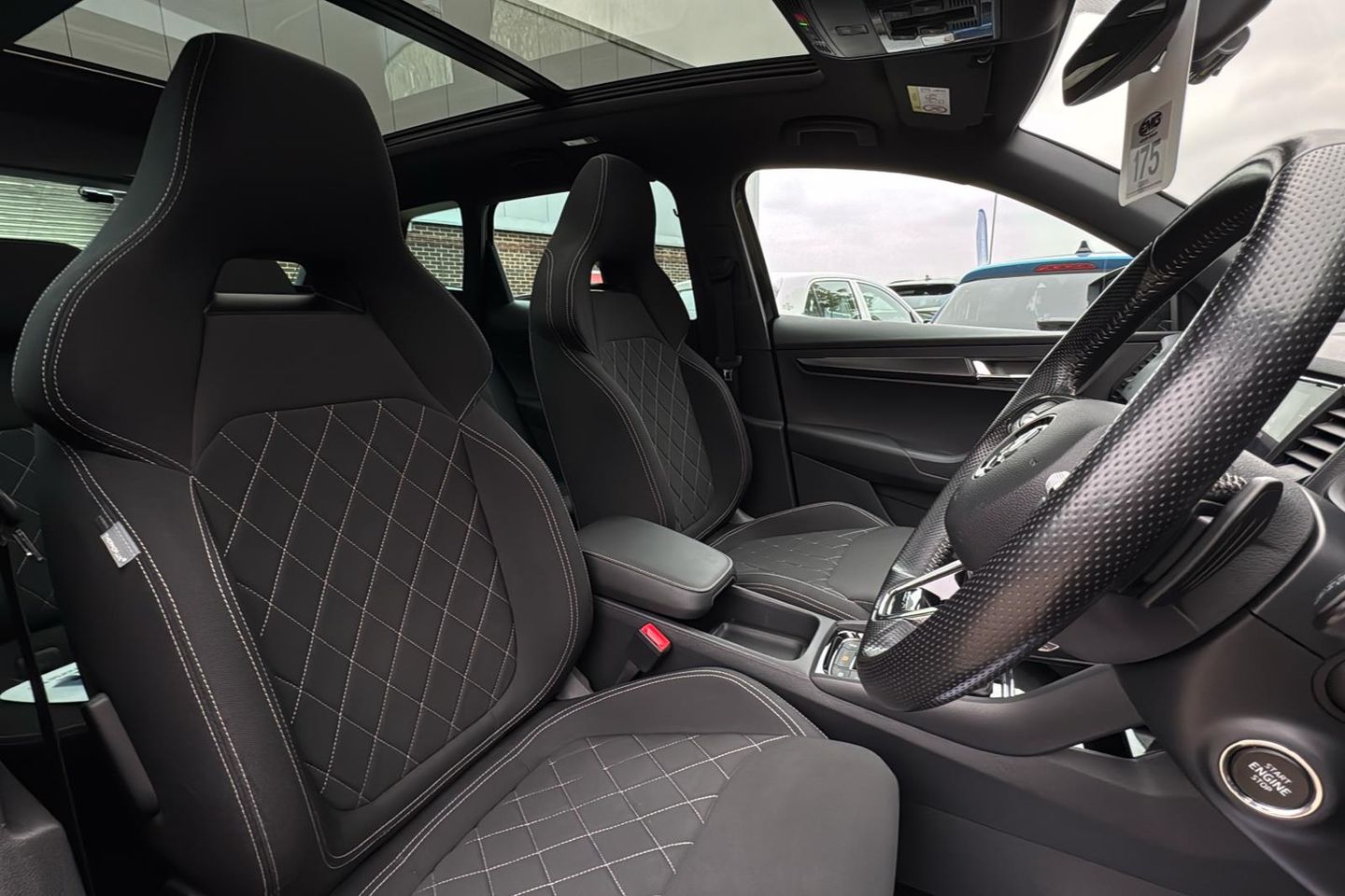 12V Power Socket in Boot 19in Alloy Wheels - Vega Anthracite 2 Reading Lights Front - For Driver and Passenger 3 Spoke Leather Sports Heated Multi-Function Steering Wheel 4 Foldable Roof Handles with Clothes Hooks in Rear Aero Front Windscreen Wipers with Intermitted Function Air Conditioning - Climate Control Dual Zone Air Vent Surrounds in Black Airbags - Driver Alarm with Interior Monitoring - Back Up Horn - Tilt Sensor and SAFE Function Aluminium Pedals Amundsen Touchscreen Satellite Navigation System Anti-Theft Locking Wheel Bolts Automatic Door Unlocking Incase of Crash Automatic Fuel Cut Off Incase of Crash Automatic Headlight Control Black Roof Headlining Black Roof Rails - Door Mirrors and Radiator Grille Bolero Radio Boot Package - 2 Folding Hooks and Nets Bottle Holders in Door Panel in the Front - 1.5 Litre Bottle - Driver and Passenger Door Panels Care Connect - Proactive Services - 10 Years Care Connect - Remote Access - 1 Year Care Connect - eCall Cargo Element in Boot Chrome Interior Door Handles Chrome Package Outside Aluminium Bar Around the Windows Colour Multifunction Trip Computer Cruise Control with Speed Limiter DAB Digital Radio and Bluetooth Drive Mode Selection Driver Fatigue Sensor ESC Electronic Stability Control incl ABS Anti Lock Braking System Electric Front and Rear Windows with Child Proof Lock Electric Window Control Buttons in Black Electrically Adjustable - Heated - Folding - Auto-Dimming Door Mirrors Electrically Operated Boot Electronic Engine Immobiliser Electronic Parking Brake with Auto Hold Function Emergency Rear Braking Signal Foldable Hooks in the Boot Front - Head - Knee - Curtain - Front Side Airbags Front Assist Front Centre Armrest with Storage Compartment - Rear Air Vents and 12v Socket Front Door Step with Sportline Logo Full LED Headlights with Adaptive Front Light System and LED Daytime Running Lights Glovebox - Illuminated and Cooled Headlights - Washers Heated Front Seats Heated Rear Windscreen Height Adjustable Driver and Front Passenger Seat Height Adjustable Front Three-Point Seat Belts with Tensioners ISOFIX Child Seat Preparation - Outer Rear Ice Scraper Illumination of Luggage Compartment KESSY - Keyless Entry and Start System with SAFE System LED Interior Light Package and SKODA Welcome Light Light Assistant Light and Rain Sensor with Auto-Dimming Rear View Mirror Manual Lumbar Support for Front Seats Net Programme in Boot Non Smokers Package Panoramic Sunroof Parking Sensors - Front and Rear Passenger Airbag with Switch Off Function Pedestrian Monitor Pen Holder Pollen Filter Power Steering Privacy Glass Protective Door Side Sills in Body Colour Reading Lights - Rear Rear Boot Cover Rear Diffuser Rear Lights - LED Rear Seats Fixed Rear View Camera Remote Central Locking - with 2 Keys Retractable Parcel Shelf Attachable to the Tailgate SKODA Lettering on Tailgate in Black Safety Reflectors on Front Doors Safety Vest Holder Scuff Plates in Door Sills Seat Belt Reminder - Signalisation and Pretensioner for All Seats SmartLink Plus SportLine Badge on Front Fender SportLine Decorative Inserts Sports Front and Rear Bumpers Storage Box in Upper Central Dashboard - Closed Storage Compartment Below the Passenger Seat Storage on Wheel Cover Sun Visors with Illuminated Vanity Mirror TPMS - Tyre Pressure Monitoring System Textile Floor Mats Third Brake Light Three Rear Head Rests Three-Point Seat Belts - Rear Two Tone Horn Tyre Pressure Display Tyre Repair Kit USB C Port x 2 in Front Centre Console Umbrella Under Front Passenger Seat Welcome Animation with SportLine Logo Wireless Charging without Wireless Aerial Connection