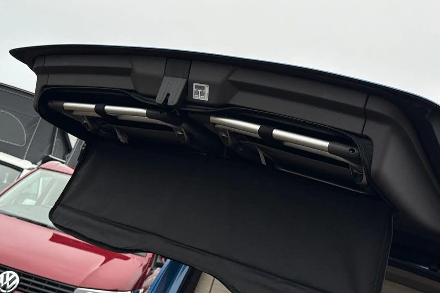Florida Beach Blue Metallic paint with black roof,Roll out awning in black,Retractable towbar with electric release,360° Parking cameras,Rear view camera,Melange bi-color cloth upholstery,LED interior lighting,Trailer hitch with trailer assist pack - California,2 Vehicle keys,18" Toshima silver alloy wheels,Metallic - Florida beach blue with Deep Black Pearl roof,Advanced Parking Pack,5 Plus Promise-Enjoy the remainder of:,5 Years Warranty?,5 Years Roadside Assist?,5 Services?,3 MOTs?,Melange bi-color cloth - Raven black/Sand,65% light absorbing privacy glass,Four speed control for windscreen wipers,Heat and sound insulating laminated safety glass windshield,Heated windscreen,Sliding window in front with fly screen in passenger compartment left/right & fixed window in rear in load passenger compartment at left,Windscreen wiper intermittent control,Standard suspension and shock absorption,Electro hydraulic elevating roof,with three windows including one front passengers panorama opening,canvas in Basalt Grey,Nameplate set California,Rear boot,3rd brake light,Dynamic Light Assist for LED matrix headlights,Illuminated molding between headlamps,Poor weather light including cornering light,Red LED tail lights,Autonomous emergency braking front assist with pedestrian and cyclist monitoring,Front disc brakes,Swerve support and oncoming vehicle braking when turning,Advanced driver attention and drowsiness monitor,Driving profile selection,Lane keeping system Lane Assist,Multifunction camera,PAS,Traffic sign recognition,Turn assist with evasive assistance,High gloss black door mirrors,2x3 point automatic seatbelts at the rear outside with ECE label,with/without belt tensioner,Child locks,Driver and front passenger airbags with front passenger airbag deactivation button,First aid kit with warning triangle and safety vest,Front Assist with pedestrian and cyclist detection,Height adjustable three point automatic seatbelts at front with belt and end fitting tensioners,Side and curtain airbags for driver and front passenger,curtain airbags for outer seats in rear,centre airbag in front,Tyre pressure loss indicator,California on tour app,Mobile phone interface,Preparation for online services,Volkswagen wired and wireless app connect,2 USB-C ports at the front,4 USB-C charging sockets in the passenger compartment,8 Speakers,Digital radio reception (DAB),eCall emergency system,Tailgate with window aperture and with power latching,Digital cockpit pro,Discover Pro Navigation system,Emergency assist,Function control unit,IDA voice assistant and voice enhancer,Additional batteries 2nd and 3rd with voltage transformer NV,Battery without capacity specification,Standard battery/generator,Dark silver brushed decorative inlays,2 single seats with integrated seatbelt and sleeping mat,Armrest on front swivel seats in both sides with electric lumbar support,Front and rear headrests,Heated front seats,Single front passenger seat,Swivel seat on left with height adjustable including drawer,Swivel seat on right with height adjustable including drawer,Camper parking heater for continuous operation & parking heater for windshield defrosting with radio remote control,230V external inlet with charging feature for vehicle batteries,230V inverter with socket on driver seat,Additional interior noise attenuation plus,Darkening roller blinds and thermo mats,Drawers under the outer seats in the cab and passenger compartment & 2 waste bins,Heated steering wheel,Kitchen with outdoor folding table for cooking and roof storage box in dTcor 2,Lockable glove compartment with lighting,Multifunction leather steering wheel with paddle shifters,Plastic floor covering in passenger/load compartment,Surround lighting in door area,Ambient interior lighting,Advanced assistance pack - California,Top package - California,Anti theft alarm system wit