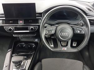 Audi drive select, Audi parking system plus with front and rear sensors, Audi virtual cockpit, Audi smartphone interface, Bluetooth interface, MMI Navigation plus with MMI touch includes 10.1" high resolution colour MMI display, 3D map, Rear view camera, Voice control system, Sports suspension lowered by 23mm, DAB digital radio reception, LED headlights with LED rear lights + dynamic rear indicators + headlight adjustment and high beam, turning light + LED daytime running lights, High beam assistant, 40/20/40 split folding 3 rear seat bench in 3 parts with rear centre armrest, Illuminated door sill trims with S logo, ISOFIX child seat mounting and top tether, LED Interior light pack - A4/S4, Titanium black styling pack - A4 Saloon, Hill hold assist, 19" 5 arm rotor design alloy wheels titanium matt look