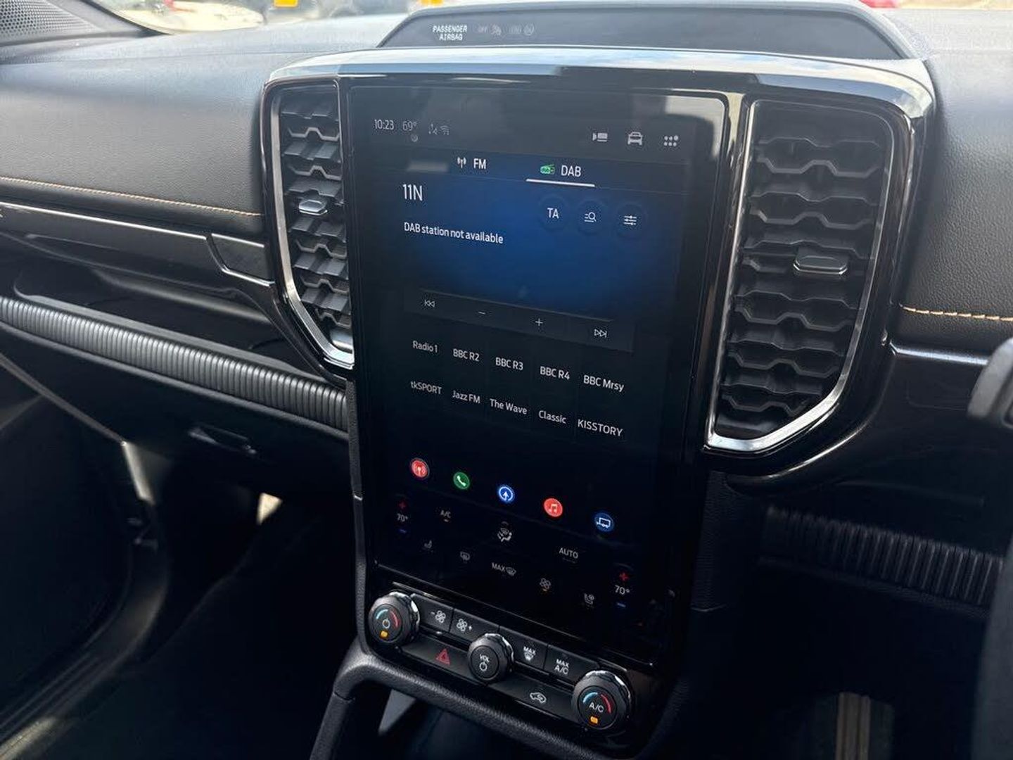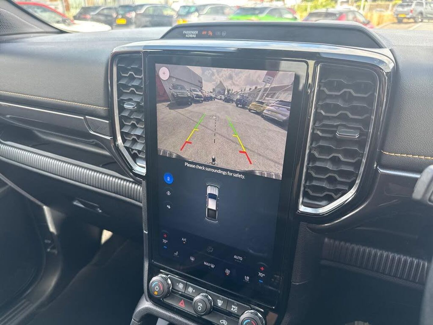 AEB and ISA, Conventional gearshift, Electric power assisted steering, Evasion steer assist, Ford pass connect embedded modem, Ice warning, Partial TFT/LCD instrument cluster, Passenger side roof mounted grab handle, Pre collision assist, Road departure warning, Traffic sign recognition, Trip computer, 360 lighting, Accent colour exterior mirrors, Accent colour front bumper, Accent colour grille, Accent colour rear bumper, Acoustic laminated windscreen, Assisted conventional tailgate, Auto high headlamp, Automatic headlights, Black rear underrun bar, Black wheelip molding, Body coloured door handles, Daytime running lights, Dual power heated fold back door mirror with puddle lamps, E-marked glass, Electric rear window defroster, Electric windshield defroster, Electrochromic interior mirror, Fog lamp bezel, Front fender painted grill, Front headlamp leveling, Front splash guard, Front towing hooks, High mounted stop lamp, Ladder rack, LED Front fog lamp, Level 2 halogen headlamps, Level 2 LED taillamps, Manual liftgate, Narrow bodyside moulding and insert, Non locking capless fuel fill, Outside thermometer, Plastic cab roll over bar, Power front windows with one touch up/down, Privacy glass, Quickclear heated windscreen, Rain sensitive windshield wipers, Rear bumper extension, Rear bumper step, Rear fog lamps, Rear mudflaps, Rear splash guard, Roof rails, Self coloured decklid handles, Side step - Bar only, Side step with bright finish inserts, Silver matte step bar, Standard green glass windscreen, Trailer tow class I, Trailer tow wiring, Under hood engine cover, Cargo light, Console with double lid, Door handles with inside MIC, Driver and passenger sunvisor with mirror, Ebony headliner, Electronic dual zone automatic air conditioning, Fold flat rear seat with durabale surface, Fresh air heater, Glove box lights, Heated steering wheel, LED ambient interior lighting, Less load rest, Less outside tie down hooks, Locking glove box lid, Micro rib embossed leather upholstery, Non woven carpet, Overhead console with dome lamps, Pollen filter, Premium air register, Premium front and rear floor mats, Pull out cup holder, Reach and rake adjustable steering column, Rear floor ducts, Roof storage for driver sunglasses, Steering wheel with multimedia controls, Tie down rails and rope hooks, Washer tank level warn lamp, Body protection pack 2 - Ranger, Front seat pack 7 - Ranger, Functional upgrade pack 3 - Ranger, Heavy duty terrain pack - Ranger, Interior trim pack 13 - Ranger, Rear seat pack 15 - Ranger, Tachograph prep pack - Ranger, Child proof rear door locks, Driver and passenger airbag, Driver knee airbag, Head and thorax airbag in 2nd row, ISOFIX child safety seat attachment, Passenger knee airbag, Tyre pressure sensors, 2 Remote control unit - key fob, Flip key, Immobiliser, Locking wheel lug nut, Passive anti theft system, Passive keyless entry, Power door dead locks, Power tailgate lock, Thatcham alarm system, Thatcham security system, 12V aux rear power point plug, ABS + ESP, Electric parking brake, Emergency brake assist, Engine start/stop system, Front and rear disc brakes, Loadbox power point plug, Open style rear axle, Soft ride suspension, 18" Aluminium spare wheel, Spare tire lock