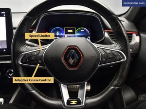 7in TFT Driver Information Display, ABS with EBA - Emergency Brake Assist, Active Emergency Braking System - AEBS, Adaptive Cruise Control with Speed Limiter, Airbags - Deactivation - Front and Side - Driver and Passenger, Anti Drill Door Locks and Locking Fuel Cap, Auto Dimming Rear View Mirror, Automatic Climate Control with Combined Filter - Humidity Sensor - Air Quality Sensor, Automatic Headlights, Automatic Windscreen Wipers with Rain Sensors, B Brake Mode - One-Pedal Driving with Increased Regenerative Braking, Black Interior Roof Lining, Black Side Door Protection with Gun Metal Insert, Bluetooth - DAB Radio and USB Ports, C-Shaped LED Front Signature Lighting, Carbon Style Soft Touch Dashboard, Central Console with Storage, Central Door Locking, Chrome Decopart on Wing - Fender Molding - with RS Line Badge, Deadlocking, Distance Warning Alert, Door Mirrors - Electrically Adjustable and Foldable with Defrosting and Temperature Sensor, Double Chromed Exhaust Tailpipes Elements, Driver and Passenger Front - Side - Head and Curtain Airbags, Driver Seat Belt Height Adjustable, Easy Link 9.3in Portrait Touchscreen with Navigation - Google Search - Traffic Information, EBD - Electronic Brake Distribution, ECO Mode Function, Electric Windows - Front and Rear, Electronic Parking Brake with Auto-Hold Function, ESC - Electronic Stability Control, EV Button to activate PURE mode -100% Electric Drive, Extra Tinted Windows - Rear and Tailgate, Frameless Rear-View Mirror, Front and Rear No Seatbelt Warning Sound, Front Bumper with F1 Blade and Honeycomb Front Grille, Front Driver Window with One Touch Facility and Anti-Pinch Function, Front Grille with Chrome on Upper Part, Full LED Headlights, Gear Change Indicator, Gun Metal Front and Rear Skid Plates, Hands Free Parking, Handsfree Keycard - Keyless Access and Start, Headlights - Automatic High-Low Beam, Heated Steering Wheel, ISOFIX Child Seat Fixing Points on Rear Outermost Seats, LDW - Lane Departure Warning, LED Front and Rear Rooflights, LKA - Lane Keep Assist, MULTI-SENSE - 3 Driving Modes and 8 Ambient Lighting, Parking Pack, Parking Sensors - Front and Rear, Pedals - Aluminium, RAID - Renault Anti Intruder Device - Automatic Door Locking, Rear Air Vents, Rear Door and Window Child Locking Function - Front Driver Door Control Panel for Rear Door, Rear Seats - 60-40 Split and Fixed Base, Rear Wiper, Rear-Cross Traffic Alert, Rear-View Camera, Renault Automatic Emergency Assist, RS Line Suede-Leather - Black with Red-Grey Stitching, Seats - Drivers Height Adjustment, Seats - Passenger Height Adjustment, Shiny Black Shark Fin Antenna, Smartphone Integration with Apple CarPlay and Android Auto, Steering Wheel - Height and Reach Adjustable, Steering Wheel - RS Line Perforated Leather with Red-Black Harmony and RS Line Badge, Traffic Sign Recognition with Overspeed Prevention, Trip Computer, Tyre Pressure Warning Light, Variable Power Assisted Steering - Electrical, Winter Pack, Wireless Charging for Smartphone
