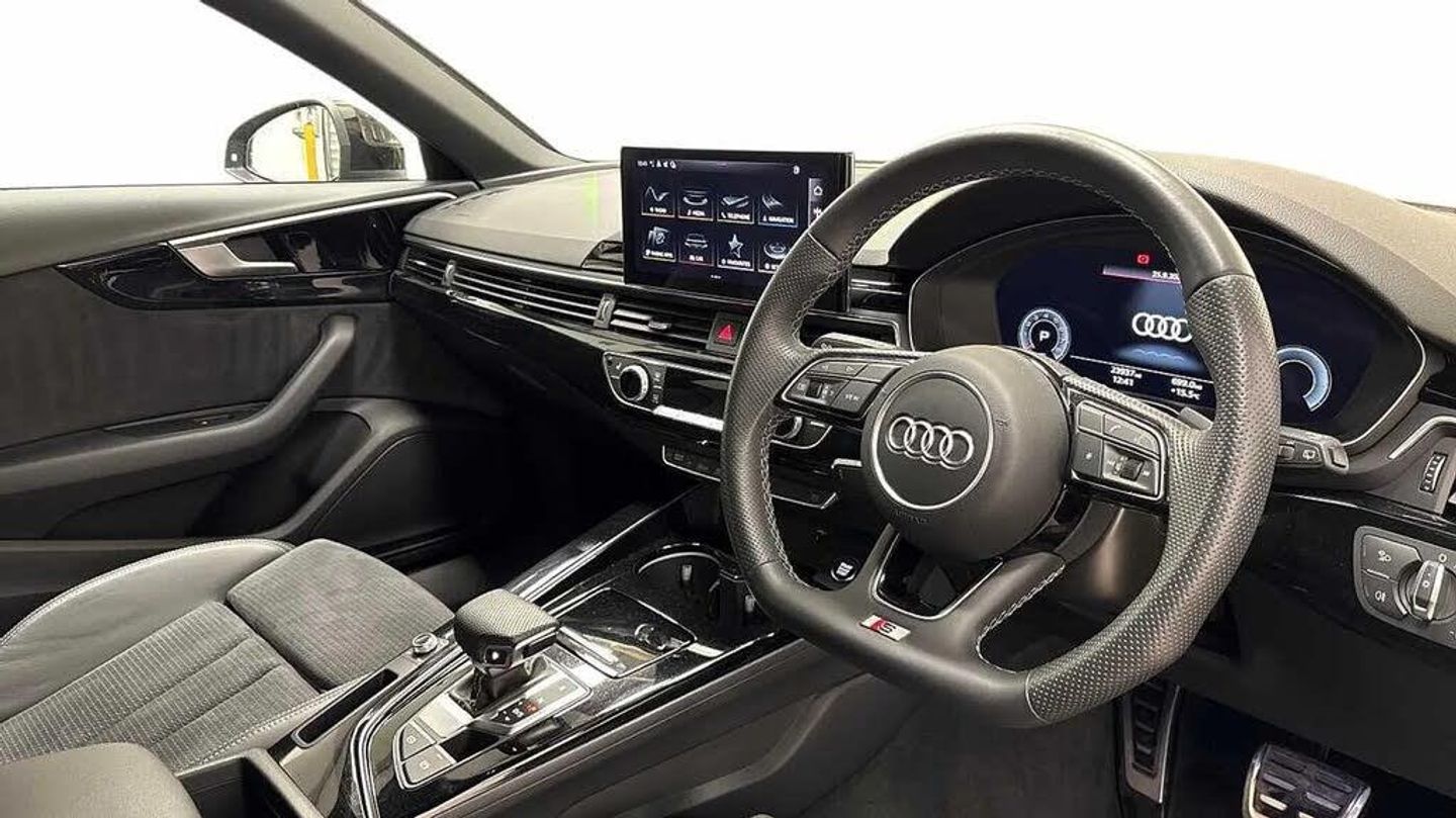 Black Edition,Black Styling Pack,Black Edition Pack,Flat-bottomed 3-spoke leather high multi-function steering wheel,Deletion of power/technology character,Black roof rails,Black exterior styling including black Audi rings and model badging,19" x 8.5J diamond cut - '5-arm flag' design Audi Sport alloy wheels in gloss anthracite black with 245/35 R19 tyres,Inlays - Piano finish black,Black door mirrors,Cruise control warning system,Equipment options subset for Great Britain,19in Alloy Wheels - 5-Arm Flag Design - Audi Sport - Diamond Cut Gloss Anthracite Black,2 USB Charging Ports,4-Way Electric Lumbar Support,6-Airbag System,8 Passive Loudspeakers,Anti Theft Locking Wheel Bolts,Anti-Theft Alarm,Audi Beam,Audi Connect Infotainment Services (36 Month Subscription From New),Audi Connect with Amazon Alexa Integration,Audi Drive Select,Audi Rings in Black and Black Model Badging and Removed Engine Badging,Audi Smartphone Interface,Audi Virtual Cockpit,Auto-Dimming Rear-View Mirror,Automatic Start-Stop with Coasting Functionality and Efficiency Programme,Bluetooth Interface,Body Coloured Side Sill Trims,Cloth Headlining in Black,Contrast Stitching on Seats - Steering Wheel and Gear-Lever Gaiter,Cruise Control System with Speed Limiter,DAB Digital Radio Reception,Deluxe 3-Zone Electronic Climate Control,Door Handles - Body Coloured,Door Mirrors - Folding with Auto-Dimming,Electric Load Area Cover,Electric Windows - Front,Electromechanical Power Steering,Email - Calendar and Text Messages can be Displayed on your Vehicles MMI,ESC - Electronic Stabilisation Control inc ABS - ASR and EDL,Exhaust Tailpipe - Gloss Black Trims,First Aid Kit and Warning Triangle,Flat-Bottomed 3-Spoke Leather High Multi-Function Sport Steering Wheel,Front Centre Armrest,Front Spoiler Lip in Body Colour,Front Sports Seats,Gear-lever Knob in Black Perforated Leather,Headlights - High-Beam Assist,Heated Front Seats,High Gloss Package,Hill Hold Assist,Illuminated Door Sill Trims with S Logo,Inlays - Piano Finish - Black,ISOFIX Child Seat Mounting and Top Tether,Keyless Go,LED Headlights with LED Rear Lights and Dynamic Rear Indicators,LED Interior Lighting Pack,Light and Rain Sensor,Manual Seat Adjustment,MMI Navigation Plus including MMI Touch,Multi Collision Brake Assist,Parking System Plus - Front and Rear Sensors,Pedals and Footrest - Stainless Steel,Pop-Up Bonnet for Pedestrian Protection,Power Operated Tailgate,Pre-Sense City,Privacy Glass,Radiator Grille with Honeycomb Structure in Grained Matt Black,Rear-View Camera,S line Front and Rear Bumpers and Side Skirts,S Line Rear Diffuser in Matt Anthracite Black with Trim Strip in Matt Aluminium Silver,S Line Rear Diffuser in Matt Titanium Black with Trim Strip in Matt Aluminium Silver,Seat Belt Monitoring,Side Air Inlets in Grained Matt Black with Inlay in Matt Aluminium Silver,Split-Folding Rear Seat Bench in 3 Parts - 40-20-40 with Rear Centre Armrest,Sport Suspension,Steering Wheel - Gear Shift Paddles,Tailpipe Trims in Matt Aluminium Silver,Titanium Black Styling Pack,Tool Kit,Tyre Repair Kit,Voice Control,Windscreen with Acoustic Glazing