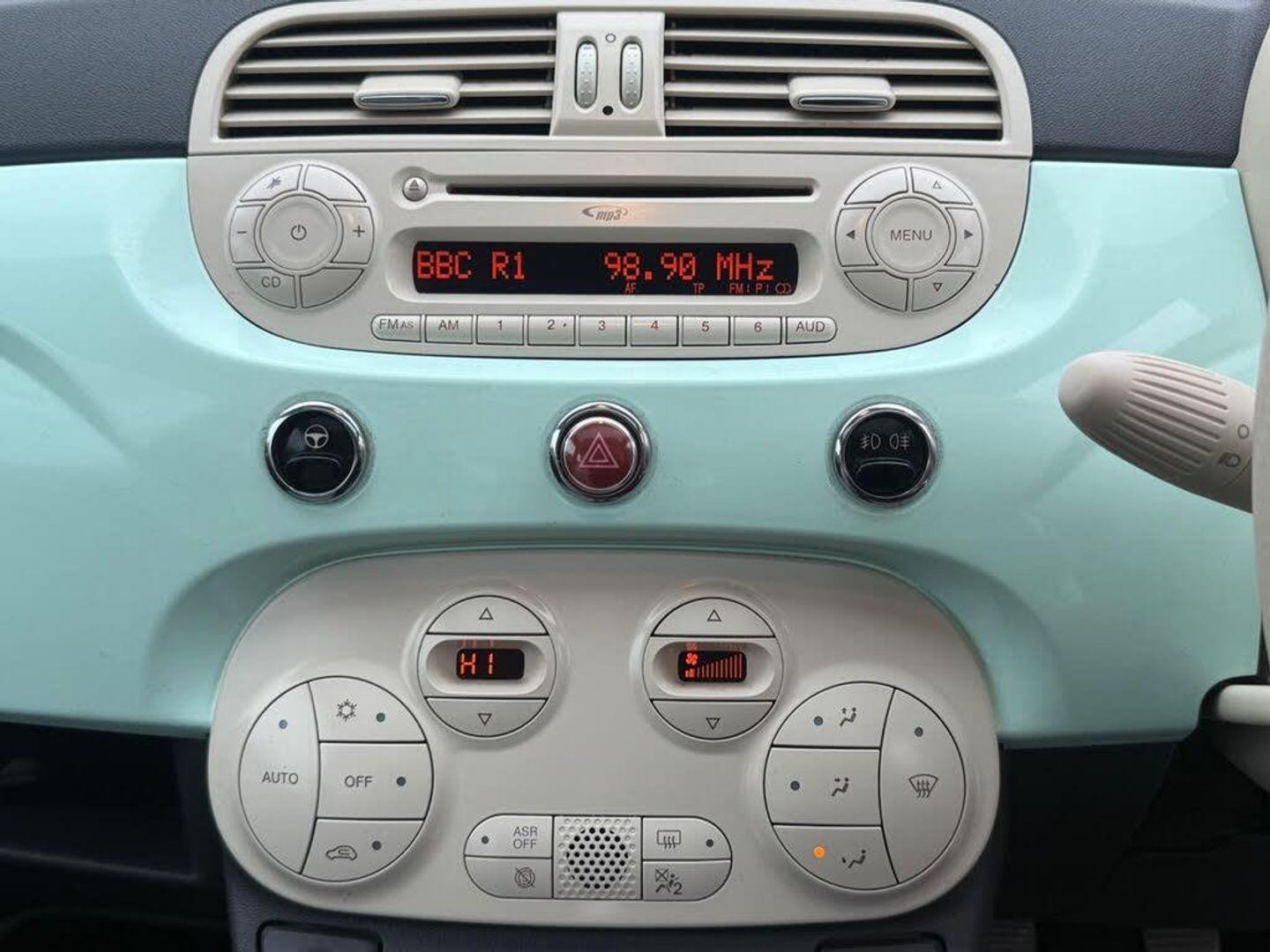 12V Socket - Front, 15in Alloy Wheels - 73Z, ABS - Anti-Lock Braking System, ASR - Anti-Slip Regulation, Air Conditioning, Airbags - Driver, Airbags - Front Side, Airbags - Passenger, BAS - Brake Assistance System, Blue&Me - Hands Free System with USB Port, Body Coloured Bumpers, Chrome Kit, Drivers Knee Airbag, Dualdrive Power Steering, EBD - Electronic Brakeforce Distribution, ESP - Electronic Stability Programme, Electric Front Windows, Electrically Adjustable Heated Door Mirrors, Exterior Temperature Sensor, Fix and Go Puncture Repair Kit, Fixed Glass Roof, GSI - Gear Shift Indicator, Grab Handle, Height Adjustable Drivers Seat, Hill Holder, Locking Wheel Nuts, MSR - Motor Slip Regulation, Radio-CD and MP3 Player, Remote Central Locking, Seats - Passengers Memory Function, Seats-back Pockets, Space Saver Spare Wheel, Split Folding 50:50 Rear Seat, Steering Wheel - Black, Steering Wheel - Height Adjustment, Steering Wheel - Leather with Audio Controls, Steering Wheel Audio Controls, Storage Under Passenger Seat, Thermal Windows, Tyre Pressure Monitor System, Window Airbags, Cloth - Ivory with Green Logo and Ivory Ambience