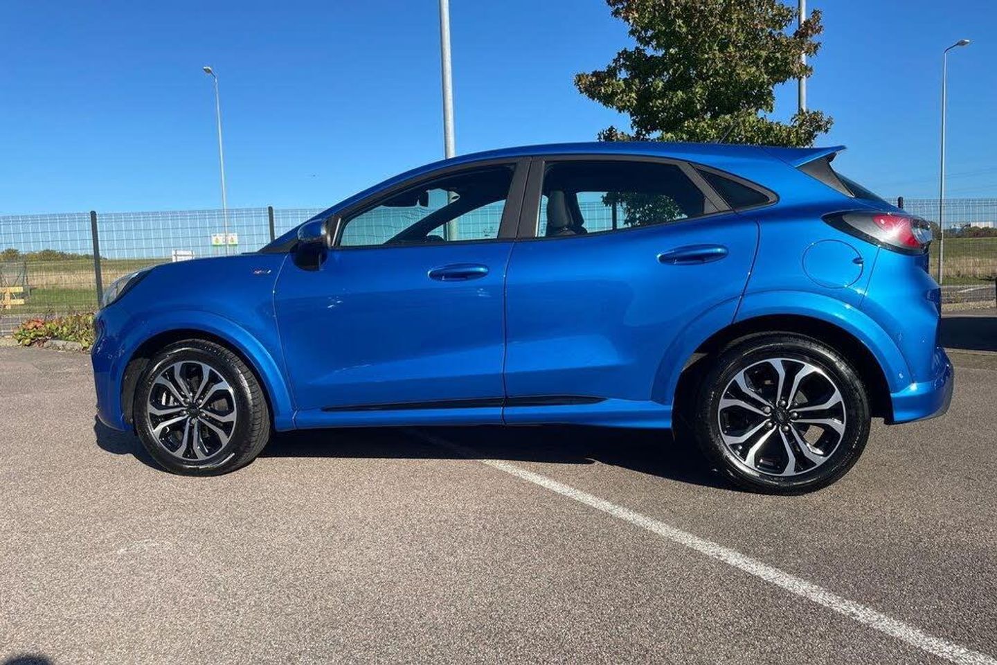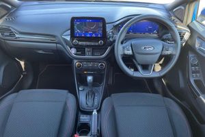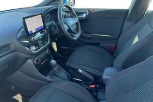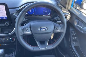Inflation Kit, 17in Alloy Wheels - 5x2 Spoke - Black Machined Finish, ABS - Anti-lock Braking System, Acoustic Laminated Windscreen, Active Grille Shutter, Automatic Dimming Rear View Mirror, Automatic Headlights with Rain-Sensing Wipers and Auto High Beam, Centre Console with Armrest - Stowage, Courtesy Lights - Ambient LED Courtesy Lighting - Single Colour, Cruise Control - Lane Keeping Aid and Lane Departure Warning, Driver Seat Lumbar and Height Adjustment, Electric Windows - Front and Rear, Electronic Stability Control - ESC with Traction Control and Emergency Brake Assist - EBA, Emergency Brake Warning - Automatic Hazard Warning Lights, First Aid Kit Strap, Floor Mats - Front and Rear, Ford Easy Fuel System, Ford MegaBox Extended Bootspace, Ford Power Starter Button, Ford SYNC 3 Navigation, Front Bumper - Unique ST-Line Sport Design - Body Colour, Front Door Threshold Plates - ST-Line, Front Fog Lights with Cornering lights and LED Rear Lamps, Front Seats - Sports Style, Full Digital 12.3in Instrument Cluster, Gearshift Knob - Soft Feel with Red Stitching, Headliner - Deluxe, Instrument Panel - High Level, Large Rear Spoiler - Body Colour with Centre High Mounted Stop Light, Locking Wheel Nuts, Lower Bodyside Moulding - Body Colour, Manual Air Conditioning, Post Collision Braking, Power Steering, Power-Foldable Heated Door Mirrors with Puddle Lamps, Pre-Collision Assist with Autonomous Emergency Braking and Pedestrian-Cyclist Detection, Projector Headlamps with LED Daytime Running Lights, Puma Badge, Quickclear Heated Windscreen, Rear Bumper Body Colour - Diffuser, Rear Parking Sensors, Rear Seats - 2-Way Head Restraint Up-Down, Rear Seats - Second Row 60-40 Folding Seats, Remote Central-Double Locking, Restrain Device Pack, ST-Line Badge, ST-Line Body Styling Kit, ST-Lined Flat-Bottomed Leather Steering Wheel - Leather Handbrake, Selectable Driving Modes - Normal - Eco - Sport - Slippery and Trail, Speed Limiter, Sports Suspension, Thatcham Alarm, Trip-Fuel Computer, Tyre Inflation Kit, Tyre Pressure Monitoring System - TPMS, Wireless Charging