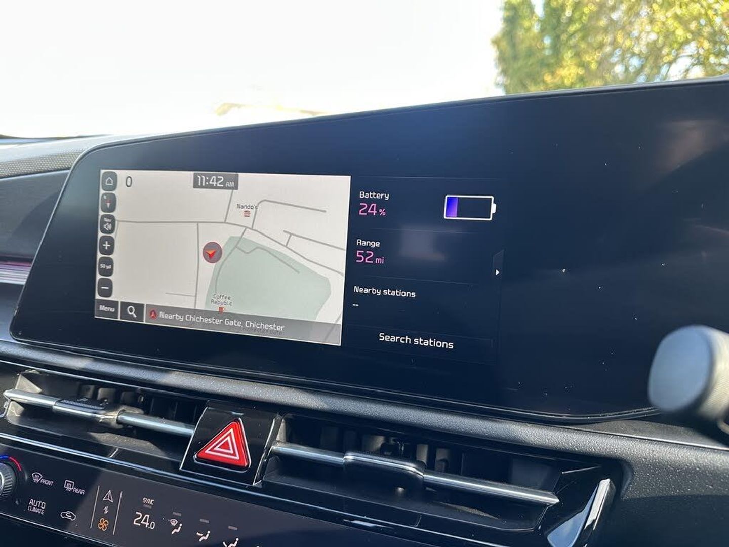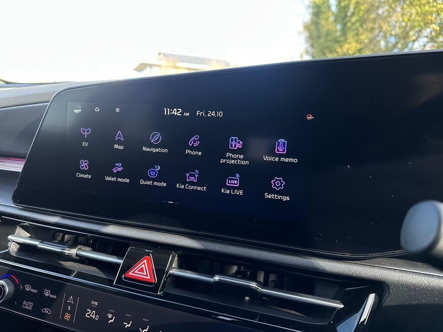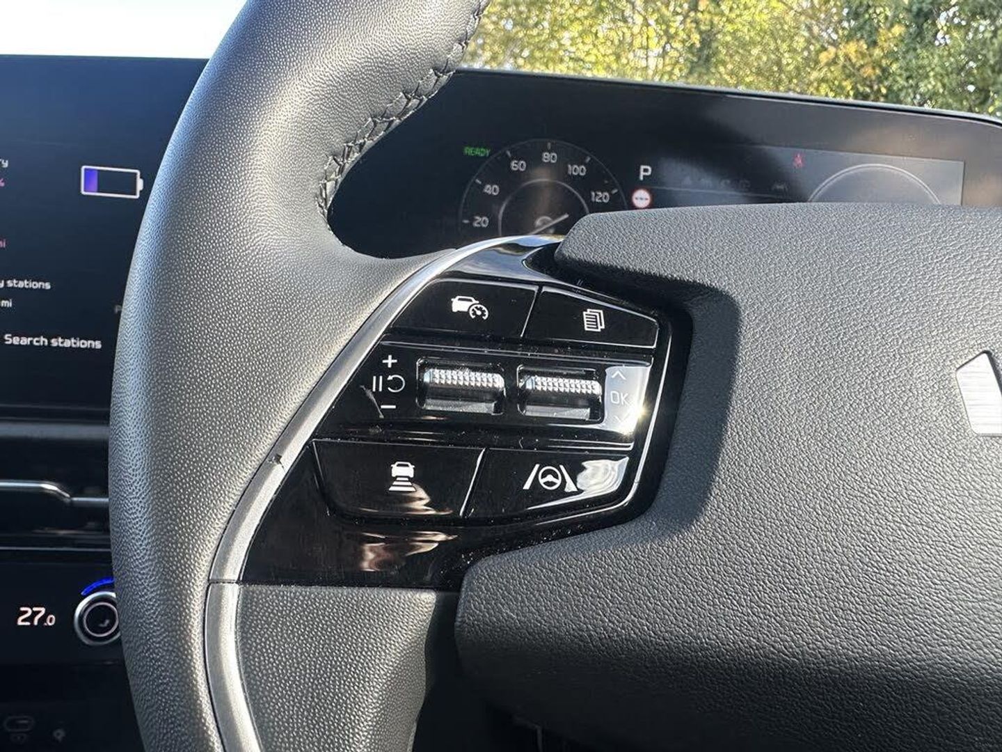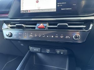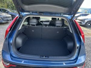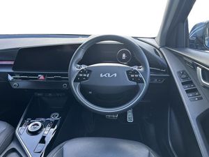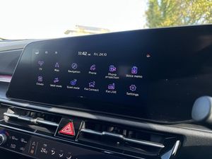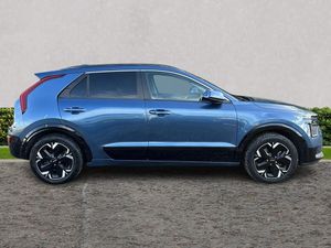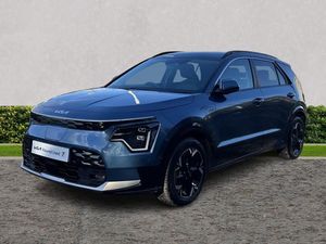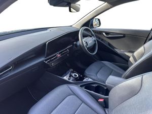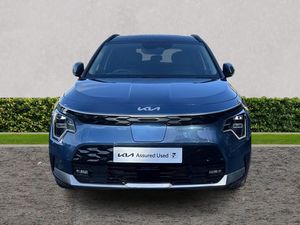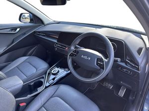 10.25" Supervision colour cluster display, 10.25" touchscreen satellite navigation, Adaptive smart cruise control function (SCC) with stop and go, Apple car play/Android Auto with voice control, Blind spot collision avoidance assist, Charging indicator on dashboard, Digital clock, Drive mode select (Eco, normal, sport, snow), E-call, Emergency stop signalling system, Forward Collision-Avoidance Assist (FCA) 2.0 - City/Pedestrian/Cyclist/Junction turning & crossing, Front parking sensors, Head up Display, Highway Driving Assist (HDA 2.0), Intelligent speed limit assist, Kia Connect (UVO), Lane Following Assist (LFA), Lane keep assist, Motor driven power steering, Parking collision avoidance assist (PCA), Power opening/closing tailgate, Rear parking sensors, Remote smart parking assist, Reversing camera with dynamic guide lines, Trip computer with distance/fuel consumption/average speed, Vehicle-to-device (V2D), Wireless Smartphone charger, 11 kW AC onboard charger, Battery heating system, Front Grille Charging Port, 'Shark fin' mobile antenna, 2 type C USB ports on front seats, 2 USB ports in centre console including 1 type C, 6 speakers, Bluetooth with music streaming, DAB Digital radio, Steering wheel mounted controls, Acoustic windshield, All round electric windows with drivers and front passenger auto up/down and safety function, Auto dimming rear view mirror, Automatic defog system, Automatic headlight control system, Black beltline mouldings, Black grille with chrome surround, Body colour bumpers, Body colour exterior door handles, Deluxe door scuff plates, Dual LED headlights (low and high projection), Electric heated door mirrors, Electrically folding door mirrors, Front and rear chrome skid plates, Front fog lights, Heated rear window with timer, High gloss black door mirrors, LED daytime running lights, LED rear combination lights, LED third brake light, One touch single tilting/sliding power sunroof, Privacy glass - Rear windows and tailgate, Rain sensing front wipers, Rear fog lights, Rear side wing doors, Rear spoiler, Rear wiper, Roof rails, Solar glass windscreen, Welcome and follow-me home light functionality, Windscreen Washer Level Warning, 12V socket in front, 12V socket in luggage compartment, 3 seat bench in 2nd row, 60:40 split remote folding rear seats, Air filter, All-round height adjustable headrests, Aluminium pedals, Artificial leather centre console storage box, Artificial leather steering wheel, Centre console cupholder, Chrome coating interior door handles, Driver/passenger sunvisors with illuminated vanity mirrors, Drivers seat power lumbar support, Dual zone automatic air conditioning, Electric adjustable front seats with memory function for driver seat, Front and rear door storage, Heated front seats, Heated outer rear seats, Heated steering wheel, Illuminated glovebox, Interior door lock/unlock function, ISOFIX Child seat top tethers and anchor fixings, LED luggage area light, LED overhead console lamp with sunglasses case, Luggage area load cover, Luggage board, Paddle shifts, Passenger premium relaxation seat, Power adjustable lumbar support on front passenger seat, Seatback pocket - driver, Seatback pocket - front passenger, Shift by wire SBW, Single front passenger seat, Tilt/telescopic adjustable steering wheel, Ventilated front seats, Ventiliation ducts to rear compartment, Towing pack - Niro, 3 point seatbelts on all seats, ABS, Automatic unlocking of doors in case of impact, Centre side front airbags, Curtain and side airbags, Drivers knee airbag, Dual shell horn, Electric parking brake with auto hold function, Electronic stability control, Front passenger airbag deactivation, Height adjustable front seatbelts, Hill start assist control (HAC), Manual rear child locks, Rear seat alert system, Traction control, Tyre pressure monitoring system, Alarm system and engine immobiliser, Deadlocks, Engine Start/Stop Button with Smart Entry System, Locking wheel nuts, Visible vehicle identification number, Warranty - 7 Years/ 100,000 miles, Metal chopped carbon centre fascia, 17" Alloy wheels, Tyre mobility kit