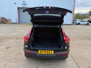 12.3in Active TFT Crystal Drivers Information Display, 12V Socket - Front Tunnel Console and Cargo Compartment, 19in Alloy Wheels - 5 Double Spoke - Diamond Cut - Matt Black, 2-Zone Electronic Climate Control with Cooled Glovebox and Rear Air Vents, 7m Charge Cable with 3 Pin Plug, 9in Centre Console Portrait Touch Screen, ABS - Anti-Lock Brake System, Adaptive Brake Lights including High Level LED Brake Light, Adjustable Steering Force, Ambient Door and Instrument Panel Lighting, Anti-Theft Alarm including Immobiliser - Volume Sensor and Level Sensor, Autodimming Interior Mirror, Autofolding Heated Power Door Mirrors, Automatic Headlight Levelling System, Automatic LED Headlights with Active High Beam incorporating Day Running Lights, Black Headlining, Black Stone Door Mirrors, Black Stone Roof, Bluetooth Handsfree System, Care Key with User Defined Top Speed, Centre Console Cupholders and Storage, City Safety, Cruise Control, Cutting Edge Aluminium Inlays, DAB - Digital Audio Broadcasting Radio, Dark Tinted Windows - Rear Side Windows and Cargo Area, Drive Mode Settings, Driver Knee Airbag, Drivers Side Lower Dashboard Credit Card Storage Compartment, Dual Stage Driver and Passenger Airbags, Electric Front Axle Drive, Electronic Climate Control with CleanZone Air Quality System with Pollen Filter, First Aid Kit, Front Aluminium Tread Plates, Front Door Pocket and Front Cupholder Illumination, Front Footwell Illumination, Front LED Foglights, Front Reading Lights and Theatre Lighting, Front Seat Cushion Extensions, Front and Rear Power Windows, Gear Knob - Leather, Glovebox Bag Hook, Height and Reach Adjustable Steering Column, Height and Tilt Adjustable Driver Seat, High Gloss Black Deco Lower Front Bumper, High Gloss Black Front and Rear Skid Plate, High Gloss Black Mesh Front Grille with High Gloss Black Surround, High Gloss Black Window Trim Surround, High Gloss Centre Tunnel Deco, Hill Descent Control, Hill Start Assist, Home Safe and Approach Lighting, IC - Inflatable Curtains - Full Length, ISOFIX Attachment - Outer Rear Seats, Illuminated Vanity Mirrors, Key Integrated Remote Control Central Locking including Fuel Flap with Deadlocking System and Auto Open-Close Power Windows, Keyless Start, Lane Keeping Aid with Driver Alert Control, Load Protection Net, Lockable Glovebox Compartment with Illumination, Locking Wheel Nuts, Luggage Compartment Illumination, Mechanical Child Locks - Rear Doors, Multi-Directional Lumbar Support, Multicolour Theatre Lighting, Oncoming Lane Mitigation, P-SIM Card - Access to 1 Year - 100GB of Data, Passenger Airbag Cut-Off Switch, Power Operated Tailgate, Power Parking Brake with Auto Hold Function, Private Locking for Tailgate, Rain Sensor - Automatic Windscreen Wiper Activation, Rear Armrest with Storage and Cupholders, Rear Clothes Hook, Rear Park Assist, Rear Reading and Courtesy Lights, Recharging Port Located in Nearside Front Wing, Road Sign Information Display, Roof Antenna, Roof Rails - Integrated High Gloss Black, Roof Spoiler, Run-Off Road Mitigation, Run-Off Road Protection, SIPS - Side Impact Protection System, SIPS Airbags - Front Seats, Seatbelt Reminder and Pretensioners, Seats - Passenger Height Adjustment, Sensus Connect with High Performance Sound, Sensus Navigation, Slippery Road and Hazard Light Alert, Speed Limiter, Speed Sensitive Steering, Sports Chassis, Sports Floor Mats, Sports Leather Steering Wheel, Sports Pedals, Stability and Traction Control, Steering Wheel Remote Infotainment Controls, Tailgate Illumination, Tyre Pressure Monitoring System, Tyre Sealant Kit and Compressor, Underfloor Cargo Storage, Vanity Mirrors with Ticket Holder, Vehicle Deceleration Control, Versatile Split Folding Rear Seats - 60-40, Visible VIN Plate, Voice Activated Control for Key Functions, Volvo On Call with App, WHIPS - Whiplash Protection System - Front Seats, Warning Triangle, Sensus Connect with Premium Sound by Harman Kardon, Smartphone Integration includes Apple CarPlay and
