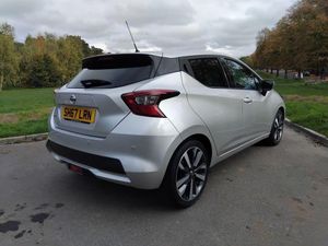 Nissan Micra 0.9 IG-T Tekna Euro 6 (s/s) 5dr in Silver with cloth seats. The main features of this stunning car are 17" Alloys, Keyless entry and start, Reversing camera, Bose Audio pack and advance drive assist. The car comes with a great service history done @ 11k, 23k, 26k, 27k, 29k, 31k, 33k and has an MOT until 26 september 2026 with no advisories !! We are FCA regulated and use a finance broker called Motion finance who offer very competitive rates and use up to 25 finance lenders to offer you the best deal possible. ALL OUR VEHICLES COME WITH A 6 MONTH WARRANTY - GREAT LOW-COST FINANCE PACKAGES AVAILABLE, ASK FOR DETAILS - TO VIEW AND TEST DRIVE CALL US ON 01202577576 - NOT ALL VEHICLES ARE LOCATED ON SITE SO PLEASE CALL TO ARRANGE AN APPOINTMENT. PLEASE VISIT www.wessexcarsalesltd.co.uk This 2017 Nissan Micra IG-T Tekna offers exceptional value with its remarkably low mileage of just 36,136 miles. This Euro 6 compliant 0.9L petrol engine is presented in the desirable Tekna trim, boasting a suite of premium features. Enjoy an immersive audio experience with the BOSE Personal Audio Pack, while the Comfort Pack provides keyless entry and automatic climate control for effortless journeys. The Vision Pack enhances convenience and safety with rear parking sensors and a rear camera, complemented by automatic headlights that adjust to ambient light conditions. This Nissan Micra stands out with its impressive fuel economy, achieving a remarkable 61 miles per gallon, which indicates it is more economical than many similar vehicles. Furthermore, its low insurance group rating suggests that running costs will be more affordable. The low CO2 emissions also highlight its environmental efficiency compared to other cars in its class.