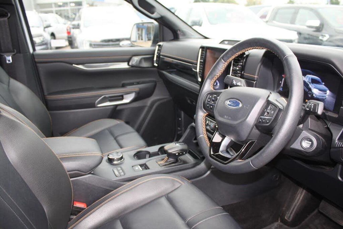 Lights on warning buzzer, Multimeter on instrument panel, Off road information centre, PAS, Remote fuel cap release, Reverse parking sensor, 6 speakers, Radio/6CD with remote music connection socket, Body colour bumpers with silver trim, Chrome effect door and tailgate handles, Chrome electrically adjustable and heated door mirrors, Chrome front grille, Door mirror mounted LED turn signals, Electric folding door mirrors, Electric front windows, Electric rear windows, Front fog lights, Halogen headlights, Headlamp levelling, Heated rear cab window, Illuminated front scuff plates, Intermittent front wipers with wash/wipe, Lower sports cladding, Metallic paint, Pick up box sports rail extension, Privacy glass, Rear bumper chrome under-bar, Rear mudflaps, Side steps, Side window demisters, Sports bar and roof rails, Steel double skinned pick up box with 2 position tailgate and inner fenders, Tinted glass, Wheel arch mouldings - Body colour, 2 sunvisors with ticket holders and passengers with mirror, 4 speed air recirculation fan + heater, Air conditioning, Anti-submarine front seats, Ashtray, Carpet covered floor, Carpet mats with Ranger logo, Cigarette lighter, Door operated dome light with courtesy switches on all doors, Fixed bench with 2 height adjustable head restraints, Front centre armrest with storage bin, Front centre console with dual cup holders and armrest with double lidded storage box, Front door storage pockets, Front footwell lights, Front passenger grab handle, Front seat back pockets, Heated front seats, High performance bedliner with protective side wall, Interior tie down hooks and load rest, Leather door inserts, Leather gearknob, Leather steering wheel with silver finish spokes, Leather/alcantara upholstery, Locking glovebox, Pull-out instrument panel tray, Rake adjustable front seats with height adjustable head restraints, Rake adjustable steering wheel, Rear cup holders, Rear passenger lighting, Silver highlight gearshift surround, Stowage bin on centre dash, Immobiliser, Perimeter alarm, Remote central locking