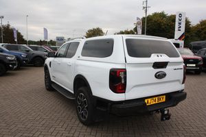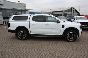This 2025 Ford Ranger Wildtrak presents an exceptional ownership proposition, boasting a mere 8704 miles and having been cherished by just one owner from new. Under the bonnet, a potent 3.0L TD V6 EcoBlue diesel engine delivers a robust 237 bhp, paired with a smooth automatic transmission and a capable Four Wheel Drive system, ensuring confident performance in all conditions. This Euro 6 compliant model is also equipped to handle significant loads, with a towing weight of 3500 kg.The TD V6 Wildtrak derivative offers a compelling blend of power and refinement, making it stand out from other vehicles in its class. Its impressive engine power and low mileage for its age are key indicators of its superior condition and potential for many more miles of reliable service. This Ranger is ready for any challenge, whether for work or leisure, offering a premium and highly capable driving experience.-Hard Top 20'' Wheels