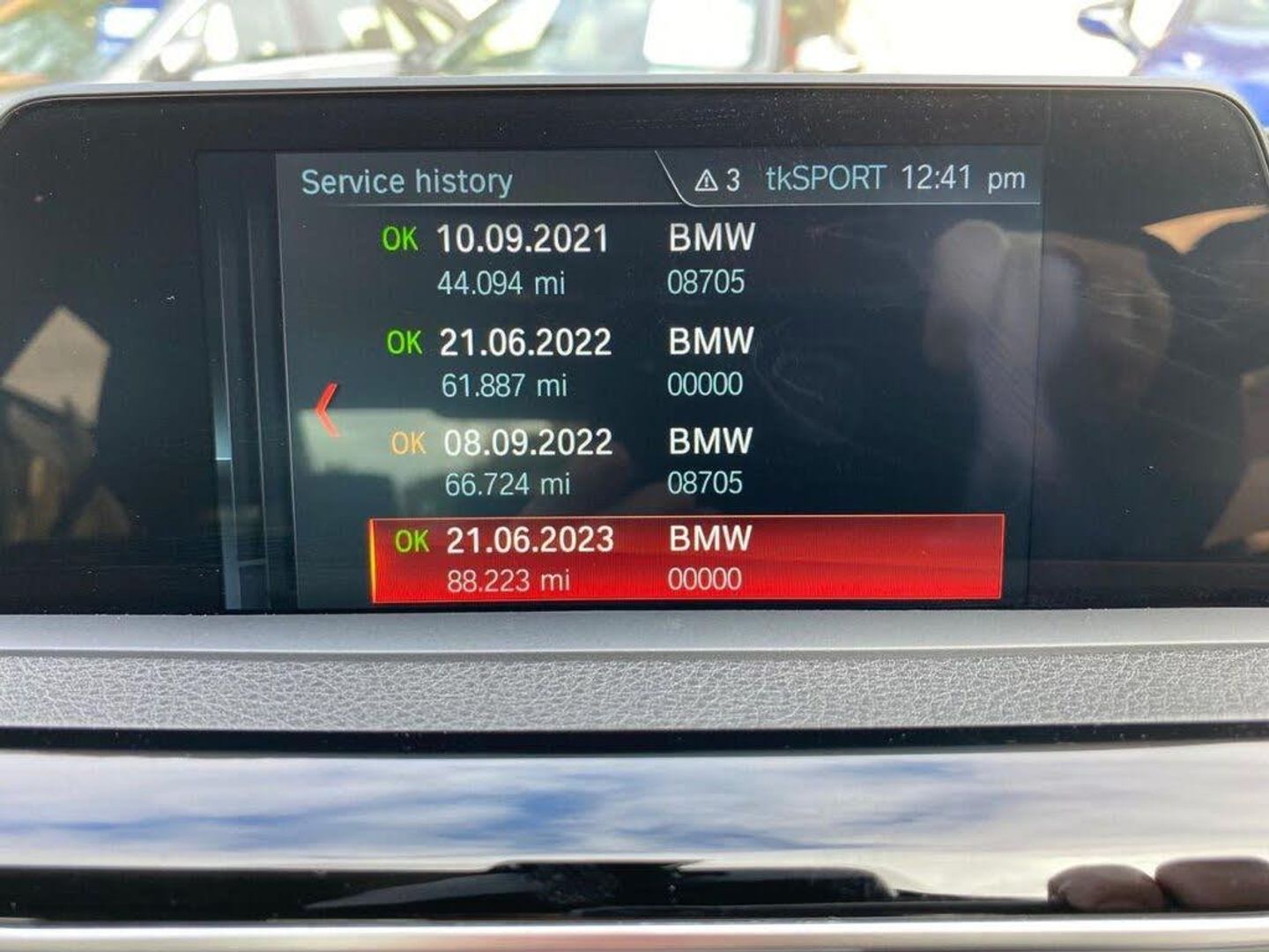 12V Power Socket in Front Centre Console and Passenger Footwell, 17in Alloy Wheels - Double Spoke - 392, 6.5in Colour Display Screen, Access to BMW Connected Plus (12 Month Subscription From New), Air Conditioning - Automatic with Two-Zone Control, Air Conditioning and Radio Control Panel with Chrome Highlight, Airbags, Alarm System - Thatcham 1 with Remote Control and Engine Immobiliser, Ambient Lighting - Switchable BMW Classic Orange - Cold White - LED, Armrest - Front - Folding with Storage Compartment, Armrest - Rear Centre with Two Cupholders, Automatically Dimming Rear View Mirror, Battery Safety Cut Off, Bluetooth Hands Free with USB Audio Interface, BMW ConnectedDrive Online Services, BMW Emergency Call, BMW Navigation System, BMW Professional Radio - Single CD and MP3, Bottle Holders Integrated into Door Trim Storage Compartments, Brake Pad Wear Indicator - Front and Rear, Bumper - Rear with Black High Gloss Finisher, Bumper System Front and Rear - Replaceable Deformation Elements for Impacts Up to 9mph, Central Locking Switch - Doors - Fuel Filler Cap - Luggage Compartment, Check Control Warning System for Monitoring of Lights and Door-Luggage Compartment Open Warning, Child Proof Locking System - Rear Doors, Child Seat ISOFIX Attachment - Rear, Condition Based Service, Crash Sensor, Cruise Control with Brake Function, Cup Holders - Two in Front with Sliding Lid, DAB Digital Radio, Dakota Leather - Black with Black Interior, Direction Indicator - Side Repeaters - Integrated in Exterior Mirrors, Door Sill Finishers - Neutral BMW Designation - Front, Drive Performance Control, DSC - Dynamic Stability Control Plus, Dynamic Brake Lights, Electric Windows - Front and Rear, EPS - Electric Power Steering, Exhaust - Single with Dark Chrome Finisher, Extended Lighting, Exterior B Pillar - High Gloss Black, Exterior Mirrors - Heated - Electrically Adjustable, Exterior Parts in Body Colour, Exterior Trim - Matt Black, First Aid Kit and Warning Triangle, Floor Mats - Velour, Front Air Inlet with High-Gloss Black Finisher, Glove Box Opener with Chrome Spider, Grab Handles - Integrated in Roof Lining x4, Handbrake and Gear Knob - Leather, Heat Protection Glazing with Green Tint, Heated Windscreen Washer Jets, High Level Third Brake Light, iDrive Controller - 8 Favourite Buttons, Indicator Lenses - Clear, Instrument Cluster, Interior Lighting, Interior Trim - High-Gloss Black with Coral Red Matt Finisher, Interior Trim - High-Gloss Black with Pearl Chrome Finisher, Kidney Grille - Chrome with Extra Wide Black - High Gloss Vertical Slats, Lashing Eyes in Luggage Compartment x4, LED Fog Lights - Front, LED Headlights, Lights-On Warning by Audio Warning Signal When Ignition is Switched Off, Luggage Compartment - Light, Media Package - BMW Business, Mediterranean Blue, Mirror Caps - Black High Gloss, Model Designation, Non Smokers Package, OBC - On-Board Computer, Oil Sensor For Level and Grade - Warning by Check Control System, Optimum Shift Indicator, PDC - Park Distance Control - Rear, Personal Profile, Rain Sensor with Automatic Headlight Activation, Real Time Traffic Information, Rear Lights - LED, Rear Seat Headrests - Three, Rear Suspension - Five-Link, Remote Control Including Integrated Key - 2, Remote Control with Integrated Key with Insert in Red, Remote Services, Run Flat Tyres, Seat Belt Security Check for Driver, Seat Heating for Driver and Front Passenger, Servotronic, Shark Fin, Side Air Inlets - Highlighter in Black-Aluminium, Side Armrests - Front and Rear Integrated into Door Trim, Side Impact Protection, Split Folding Rear Seat, Sport Instrument Cluster with Red Highlight and Chrono Scale, Sport Leather Steering Wheel - Three-Spoke - Black, Sport Multi-Function Leather Steering Wheel - Three Spoke, Sport Seats - Front, Start-Stop Button with Comfort Go Keyless Engine Start and Auto Start-Stop Deactivation Button, Steering Column with Manual Reach and Rake Adjustment, Storage Compartment in Rear Centre Console - Front and Rear Door Trims and Under Luggage Compartment, Sun Visors with Illuminated Vanity Mirrors and Ticket Pocket, Suspension - Front Aluminium, Three-Point Seat Belts - All Seats, Tool Kit Located in Luggage Compartment, TPMS - Tyre Pressure Monitoring System, Trim Designation Deletion, Twin Horns, Tyres - Reduced Rolling Resistance, Visible VIN, Welcome Lighting - LED, Windscreen Wipers - Two-Speed with Adjustable Intervals