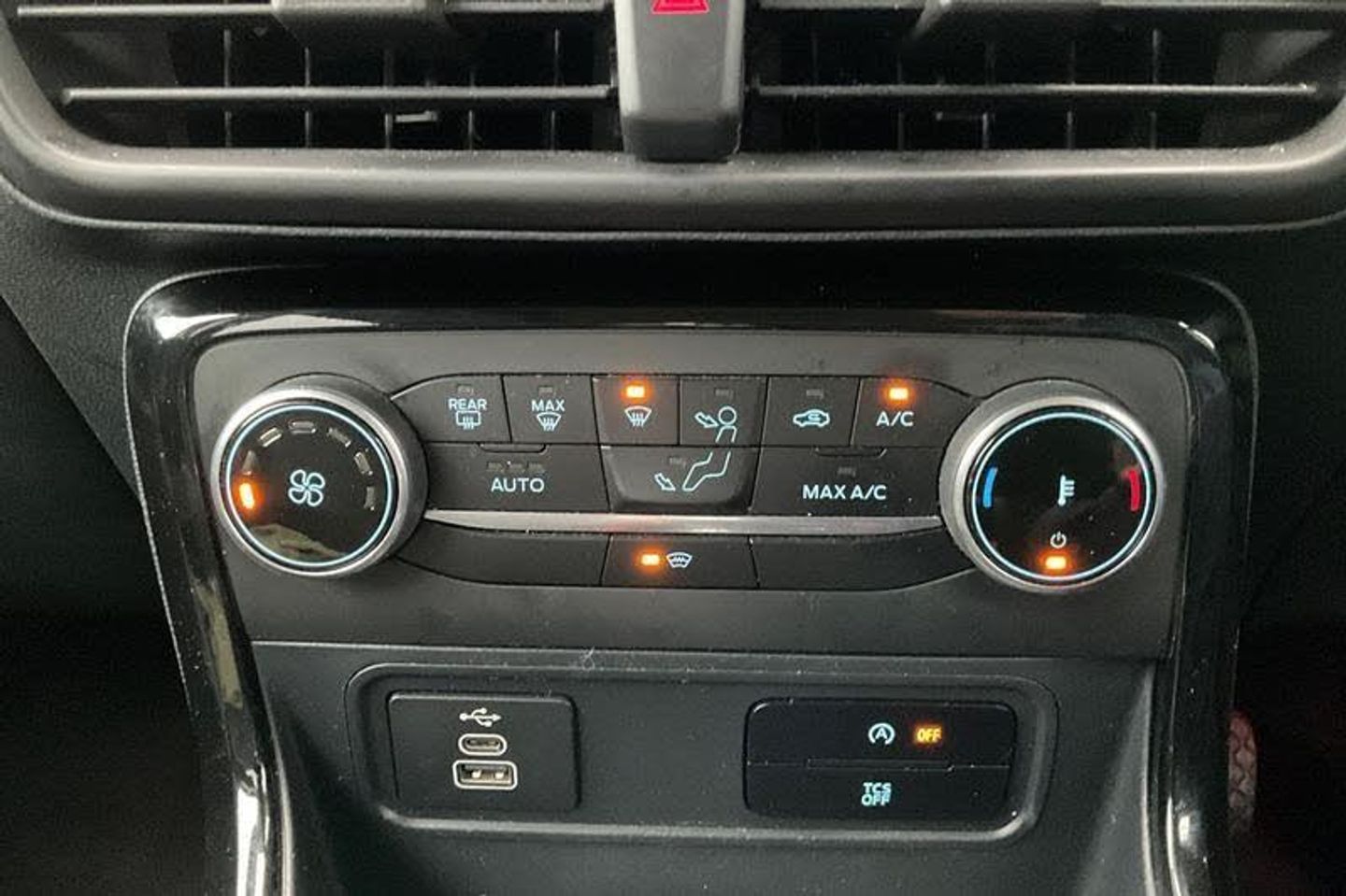 Cruise control, e-Call (emergency call), Easy fuel capless refuelling system, Ford SYNC 3 nav system with DAB radio, 8 screen, emergency assistance, Apple car play/Android auto, 2x USB, 6 speakers, Ford pass connect, Intelligent speed limiter, PAS, Rear parking sensors, Rear view camera, Traffic sign recognition, Trip computer, Auto dimming rear view mirror, Automatic front wipers, Automatic headlights, Black roof rails, Body colour door handles, Body coloured bumpers, Chrome lower window surround, Electrically adjustable and heated door mirrors, Front fog lights, Front grille bars and surround in black, Headlight levelling control, Large rear roof spoiler, LED day running lights, LED third brake light, Power front and rear windows, Puddle lights, Quick-clear heated windscreen, Rear side wing doors, Rear wiper, ST Line body styling kit - Black headlamp bezel, front and rear sport bumpers, body colour lower door claddings, 12V socket in front and rear, 3 seat bench in 2nd row, 60/40 split rear seats, Ambient lighting, Centre console with sliding front armrest, Cooled glovebox, Courtesy lights with map reading light, Driver seat height/lumbar adjust, Driver's side glovebox, Driver/passenger sunvisors and lidded vanity mirrors, EATC - Electronic Auto Temperature control, Folding grab handles, Front head restraints, Front seat back map pockets, Illuminated glovebox, Illuminated luggage compartment, Isofix system on outer rear seats, Luggage compartment carpet, Neosuede/Partial sensico leather upholstery, Overhead console with sunglasses holder, Rake adjustable rear seats, Reach + rake adjustable steering column, Rear headrests, Sensico trimmed steering wheel, handbrake and gearshift gaiter with red stitching, Single front passenger seat, ST-Line Front floor mats with red stitching, Stainless steel sports pedals, Storage drawers under front seats, Tie down hooks, Variable boot floor, 3x3 point rear seatbelts, ABS, Autonomous emergency braking, Child locks on rear doors, Curtain airbags, Driver airbag, Drivers knee airbag, Electronic Stability Programme with hill launch assist, Front passenger airbag deactivation, Front side airbags, Passenger airbag, Pre collision assist system with AEB, Seatbelt reminder for driver and front passenger, Traction control, Tyre pressure monitoring system