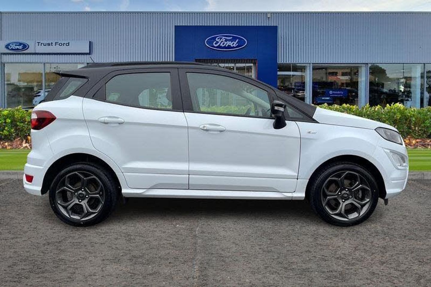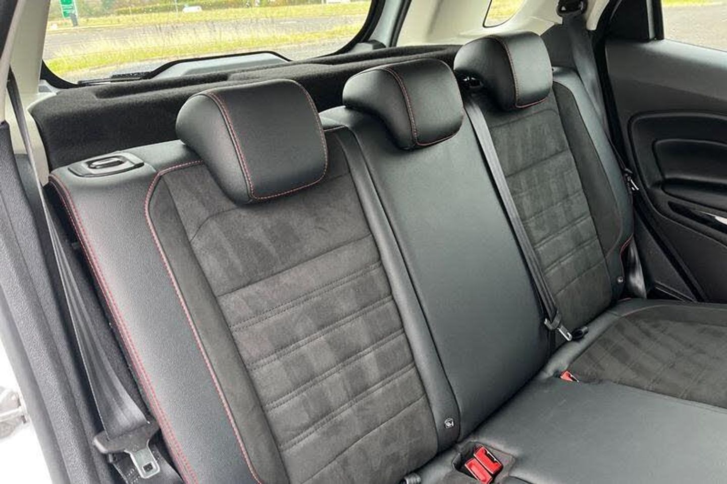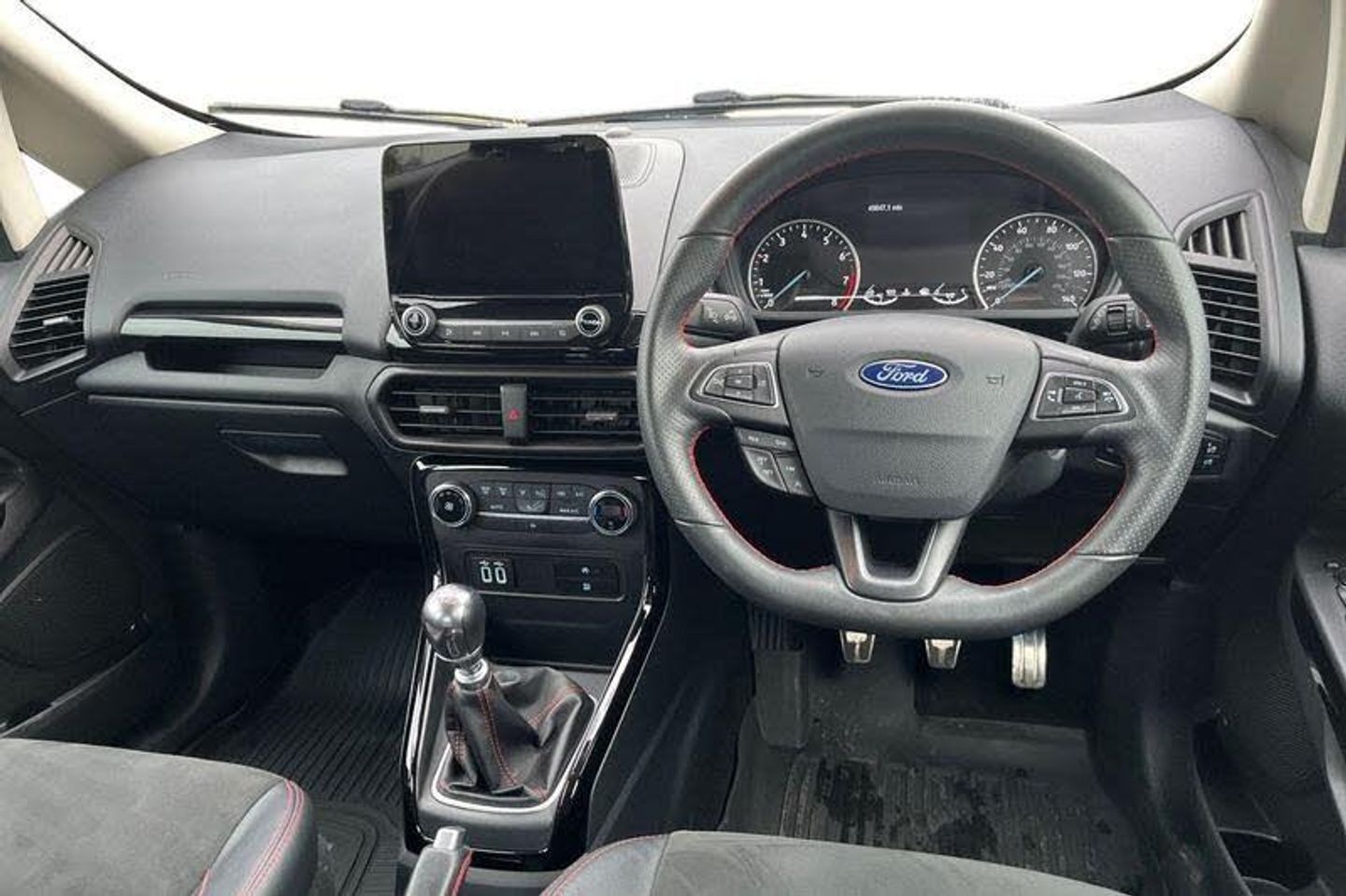 Cruise control, e-Call (emergency call), Easy fuel capless refuelling system, Ford SYNC 3 nav system with DAB radio, 8 screen, emergency assistance, Apple car play/Android auto, 2x USB, 6 speakers, Ford pass connect, Intelligent speed limiter, PAS, Rear parking sensors, Rear view camera, Traffic sign recognition, Trip computer, Auto dimming rear view mirror, Automatic front wipers, Automatic headlights, Black roof rails, Body colour door handles, Body coloured bumpers, Chrome lower window surround, Electrically adjustable and heated door mirrors, Front fog lights, Front grille bars and surround in black, Headlight levelling control, Large rear roof spoiler, LED day running lights, LED third brake light, Power front and rear windows, Puddle lights, Quick-clear heated windscreen, Rear side wing doors, Rear wiper, ST Line body styling kit - Black headlamp bezel, front and rear sport bumpers, body colour lower door claddings, 12V socket in front and rear, 3 seat bench in 2nd row, 60/40 split rear seats, Ambient lighting, Centre console with sliding front armrest, Cooled glovebox, Courtesy lights with map reading light, Driver seat height/lumbar adjust, Driver's side glovebox, Driver/passenger sunvisors and lidded vanity mirrors, EATC - Electronic Auto Temperature control, Folding grab handles, Front head restraints, Front seat back map pockets, Illuminated glovebox, Illuminated luggage compartment, Isofix system on outer rear seats, Luggage compartment carpet, Neosuede/Partial sensico leather upholstery, Overhead console with sunglasses holder, Rake adjustable rear seats, Reach + rake adjustable steering column, Rear headrests, Sensico trimmed steering wheel, handbrake and gearshift gaiter with red stitching, Single front passenger seat, ST-Line Front floor mats with red stitching, Stainless steel sports pedals, Storage drawers under front seats, Tie down hooks, Variable boot floor, 3x3 point rear seatbelts, ABS, Autonomous emergency braking, Child locks on rear doors, Curtain airbags, Driver airbag, Drivers knee airbag, Electronic Stability Programme with hill launch assist, Front passenger airbag deactivation, Front side airbags, Passenger airbag, Pre collision assist system with AEB, Seatbelt reminder for driver and front passenger, Traction control, Tyre pressure monitoring system