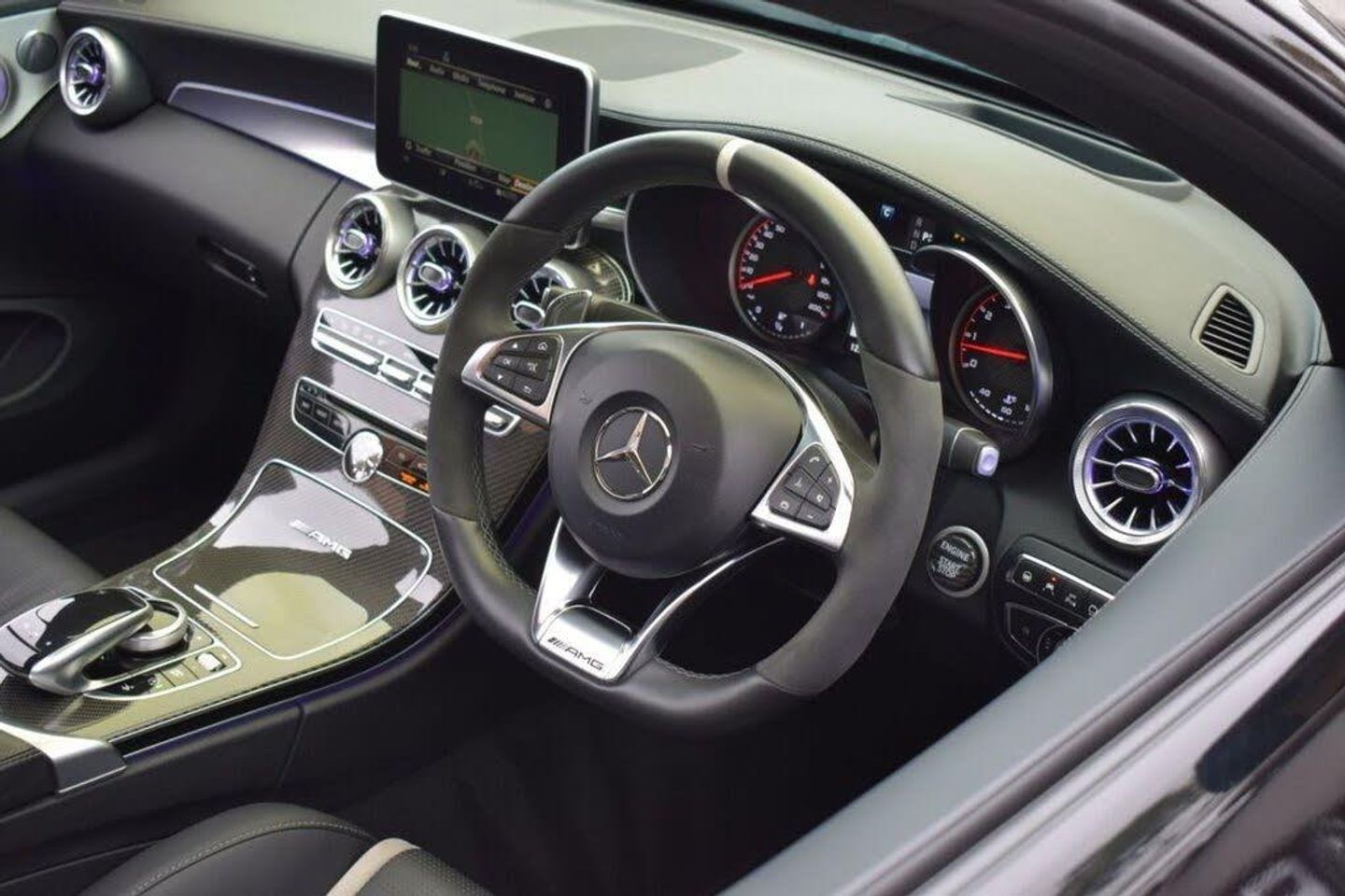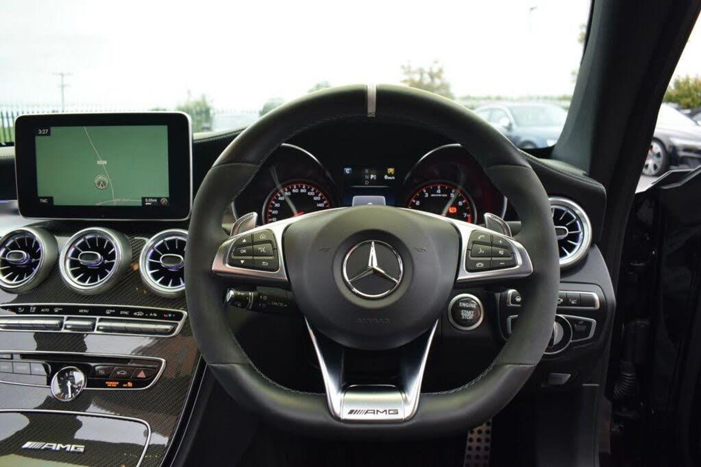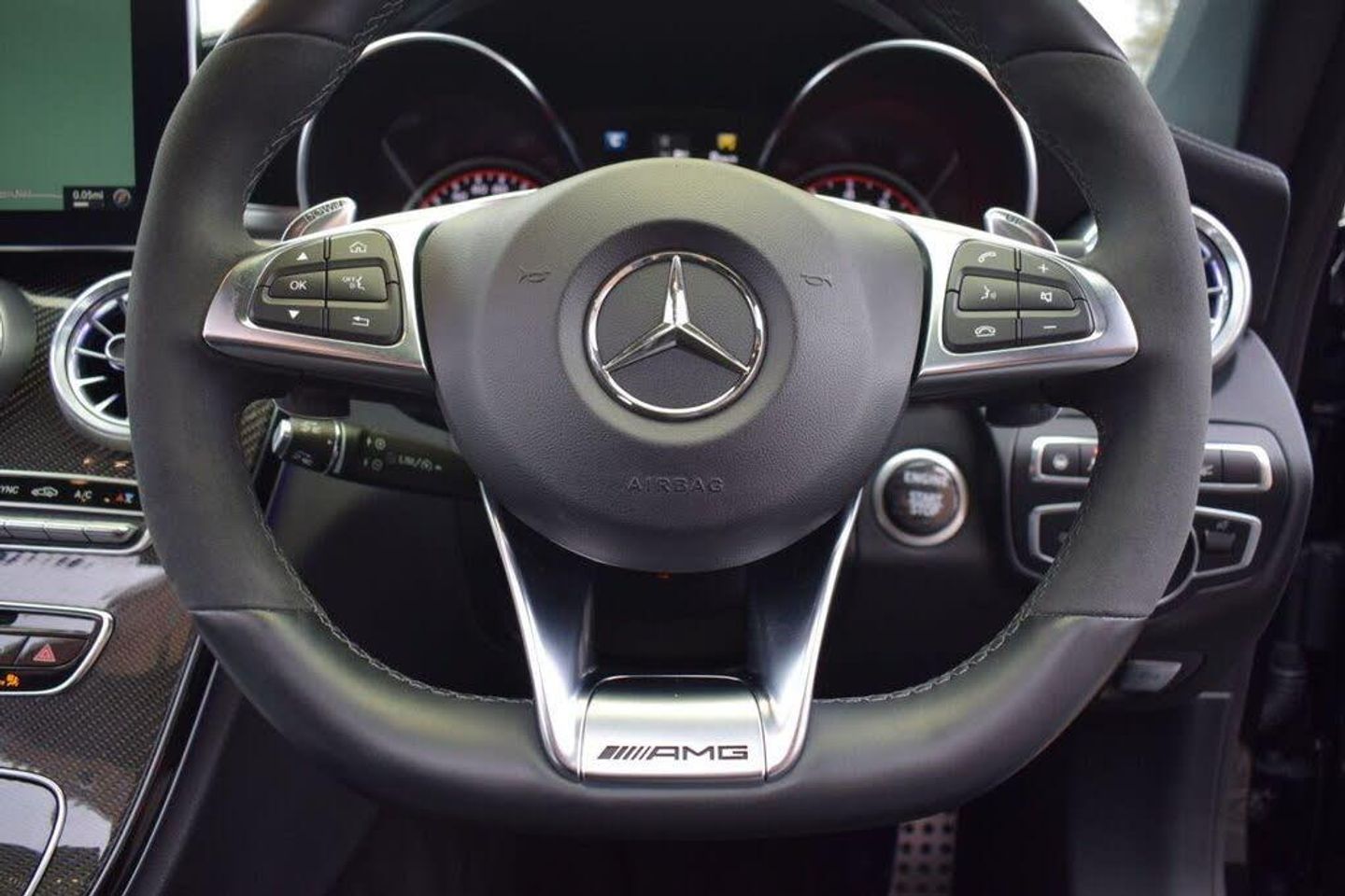 AMG Night Package, Privacy Glass, 19in Front-20in Rear Alloy Wheels - AMG Forged Cross-Spoke Design Painted Matt Black, AMG Interior Carbon Fibre Trim Package, Driving Assistance Package, Head-Up Display, Obsidian Black, 360 Degree Camera, 19in Alloy Wheels - AMG 5-Twin-Spoke Design in Titanium Grey, 8.4in Colour Display - High-Resolution, ABS - Anti-Lock Braking System, AMG Bodystyling - Front Apron - Bonnet - Side Skirts - Fenders and Rear Diffuser-Style Apron Design, AMG Bonnet with Powerdomes, AMG Boot Lid Spoiler in Body Colour, AMG Dynamic Select with a Choice of Driving Modes - Comfort-Sport-Sport Plus-Individual-Race, AMG Electronic Rear Axle Differential Lock, AMG High-Performance Brake System, AMG Instrument Cluster, AMG Lettering in Diamond Grille, AMG Performance Exhaust System, AMG Performance Seats, AMG Ride Control Sports Suspension, AMG Track Pace - Records Lap Times on the Racetrack, ATTENTION Assist, Active Bonnet - Pedestrian Safety Measure which Detects an Impact and Raises Bonnet, Active Parking Assist including PARKTRONIC, Adaptive Brake Lamps, Adaptive Brake with Hold Function - Hill Start Assist - Brake Drying, Ambient Lighting, Anti-Theft Protection Package, Automatic Child Seat Recognition Sensor, Automatic Seat-Belt Presenter for Driver and Front Passenger, Bluetooth Interface for Hands-free Function, Brake Calipers - Painted Red, COMAND Online System, Central Locking with Interior Switch - Automatic Locking and Crash Sensor with Emergency Opening Function, Centre Armrest - Front with Stowage, Collision Prevention Assist Plus, DAB Digital Radio Tuner, Door Mirrors - Electrically Adjustable and Heated, Dual-Stage Airbags - Driver and Front Passenger - Sidebags in Front Seats - Driver Kneebag - Pelvis Bag and Windowbags for Driver - Front Passenger and Rear Passengers, ESP - Electronic Stability Programme, Electric Parking Brake, Electronic Key - Chrome Surround, First Aid Kit and Warning Triangle, Floor Mats - Black with AMG Lettering, Front Door Sill Panels with AMG Lettering, Front Electric Windows with One-Touch Opening and Closing including Obstruction Sensors, Fuel Computer, Full LED Tail Lights, Gearshift Paddle on Steering Wheel, Headlamps - LED High Performance with Integrated LED Daytime Running Lights, Heated Front Seats, Heated Windscreen Washer System, ISOFIX Child Seat Attachment Points with Top Tether in Rear, Illuminated Glove Compartment, Instrument Cluster with Two Tube-Design Round Dials and 5.5in TFT Multi-Function Display, Interior Lighting Package, Keyless Entry, Memory Package, Mercedes Connect Me - Remote Online, Mercedes Connect Me - Standard Services, Mirror Package, Outside Temperature Display, Premium Package, Race Start Function, Radio Aerial Integrated into Rear Window, Rain Sensing Windscreen Wipers, Remote Boot Release, Reversing Camera, SPEEDTRONIC Cruise Control and Variable Speed Limiter, Seat Belts - Crystal Grey, Seats - Rear Split Folding 40-20-40, Service Indicator ASSYST, Sports Pedals in Brushed Stainless Steel with Rubber Studs, Status Display for Rear Seat Belts in Instrument Cluster, Steering - AMG 3 Stage Speed-Sensitive Sports Steering, Steering Column - Electronically Adjustable for Height and Reach, Steering Wheel - Multi-Function with Audio and Onboard Settings Control, Steering wheel - 3-Spoke Multi-Function AMG Performance Steering Wheel in Black Nappa/DINAMICA Microfibre - Controls Audio and Onboard Settings, Stowage - Double Cup Holder in Centre Console, Stowage Package, Sun Visors with Illuminated Vanity Mirrors, THERMATIC - Automatic Climate Control - Two-Zone, TIREFIT with Tyre Inflation Compressor, Tinted Glass All Round - Green, Top Surround of Side Windows in Polished Aluminium, Trim - High-Gloss Black with Aluminium Door Trims, Two USB Ports and an SD Card Slot in Centre Console, Tyre Pressure Monitoring System, Upholstery - Artico Leather Upper Dashboard and Beltlines with Contrast Stitching, V8 BITURBO Lettering on Front Wings