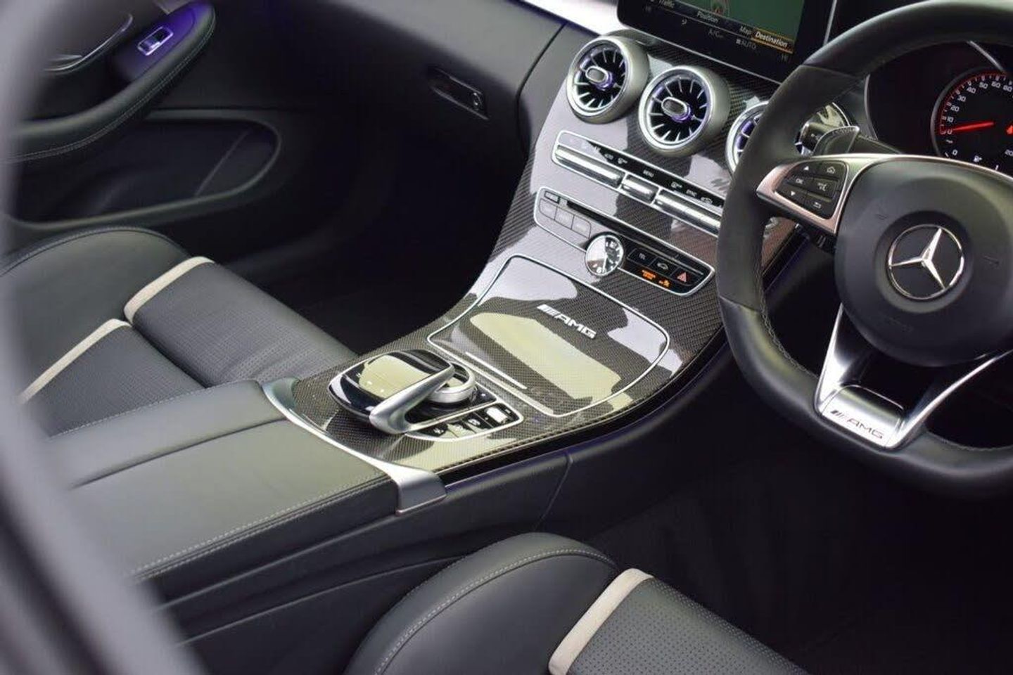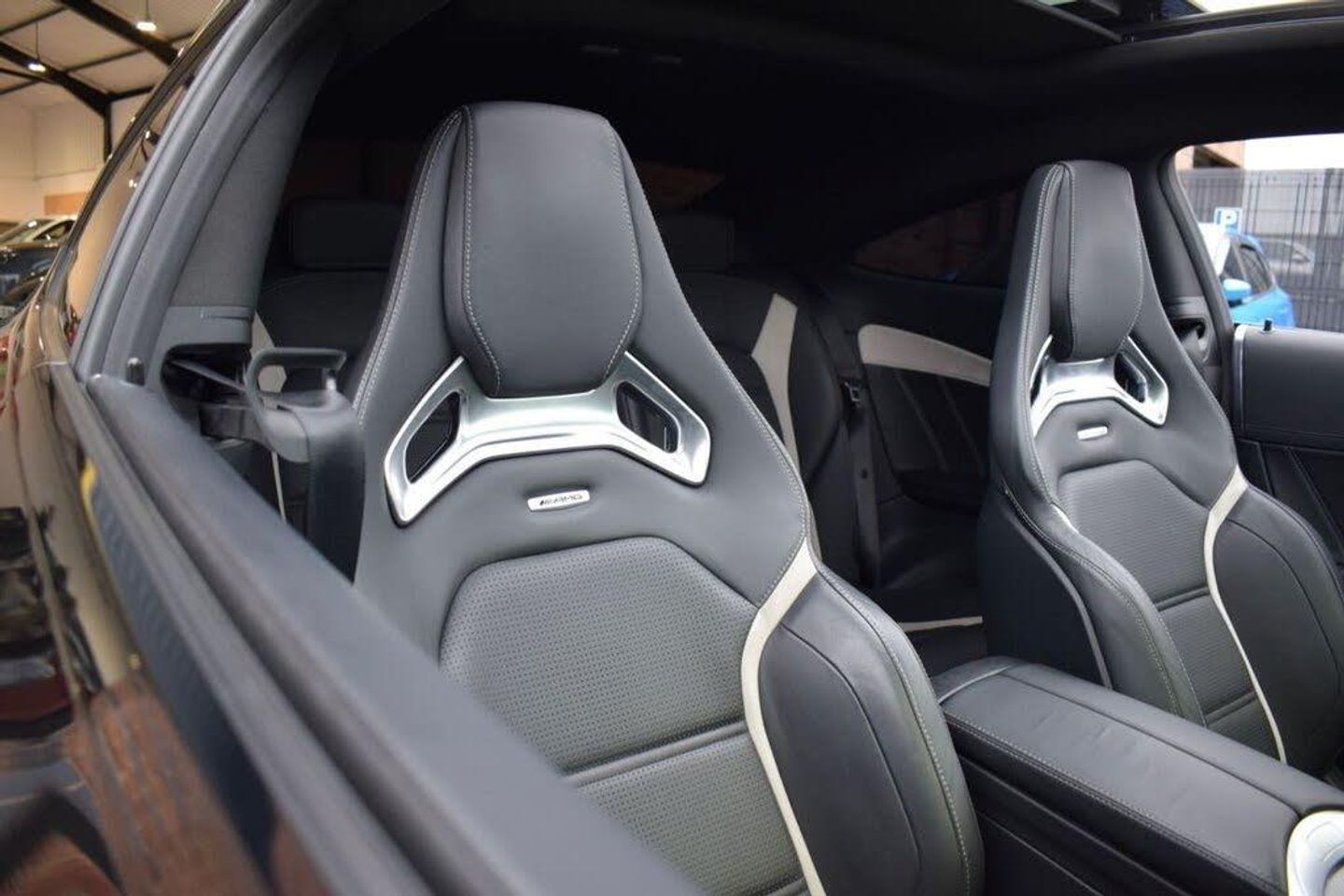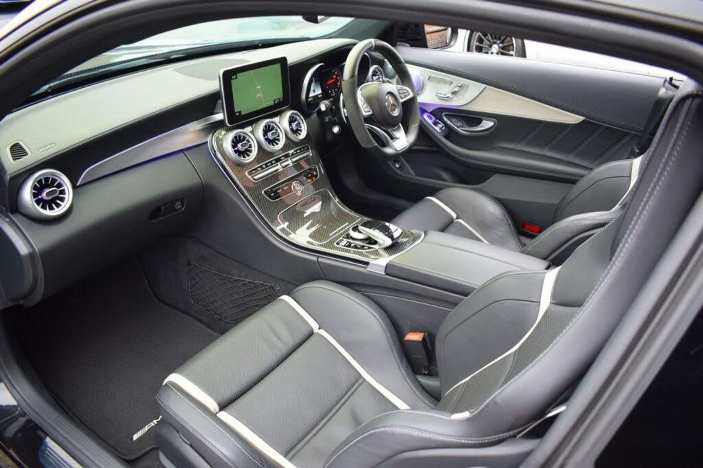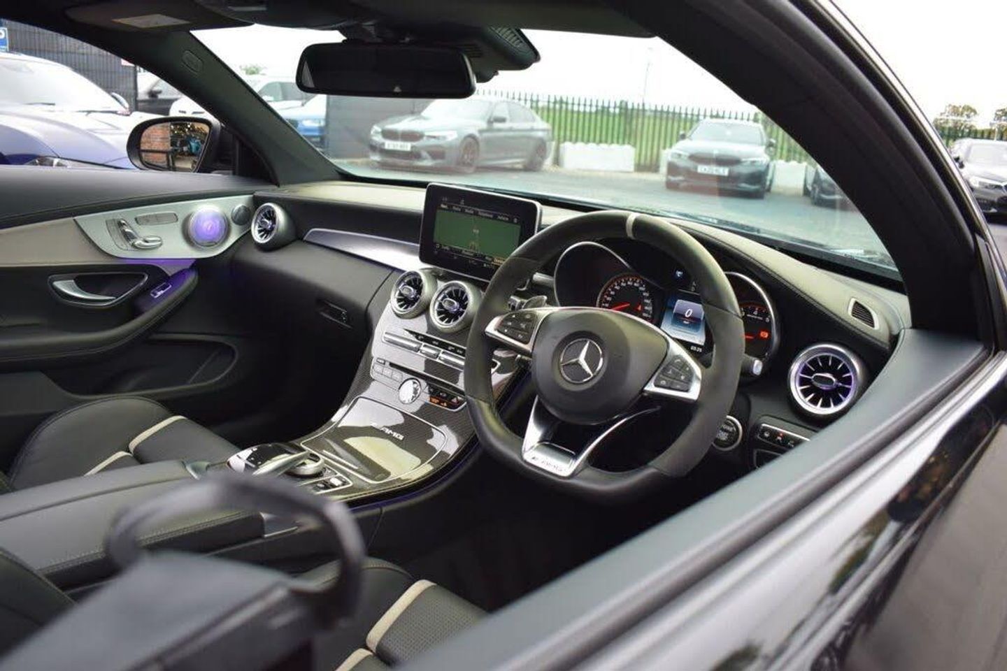AMG Night Package, Privacy Glass, 19in Front-20in Rear Alloy Wheels - AMG Forged Cross-Spoke Design Painted Matt Black, AMG Interior Carbon Fibre Trim Package, Driving Assistance Package, Head-Up Display, Obsidian Black, 360 Degree Camera, 19in Alloy Wheels - AMG 5-Twin-Spoke Design in Titanium Grey, 8.4in Colour Display - High-Resolution, ABS - Anti-Lock Braking System, AMG Bodystyling - Front Apron - Bonnet - Side Skirts - Fenders and Rear Diffuser-Style Apron Design, AMG Bonnet with Powerdomes, AMG Boot Lid Spoiler in Body Colour, AMG Dynamic Select with a Choice of Driving Modes - Comfort-Sport-Sport Plus-Individual-Race, AMG Electronic Rear Axle Differential Lock, AMG High-Performance Brake System, AMG Instrument Cluster, AMG Lettering in Diamond Grille, AMG Performance Exhaust System, AMG Performance Seats, AMG Ride Control Sports Suspension, AMG Track Pace - Records Lap Times on the Racetrack, ATTENTION Assist, Active Bonnet - Pedestrian Safety Measure which Detects an Impact and Raises Bonnet, Active Parking Assist including PARKTRONIC, Adaptive Brake Lamps, Adaptive Brake with Hold Function - Hill Start Assist - Brake Drying, Ambient Lighting, Anti-Theft Protection Package, Automatic Child Seat Recognition Sensor, Automatic Seat-Belt Presenter for Driver and Front Passenger, Bluetooth Interface for Hands-free Function, Brake Calipers - Painted Red, COMAND Online System, Central Locking with Interior Switch - Automatic Locking and Crash Sensor with Emergency Opening Function, Centre Armrest - Front with Stowage, Collision Prevention Assist Plus, DAB Digital Radio Tuner, Door Mirrors - Electrically Adjustable and Heated, Dual-Stage Airbags - Driver and Front Passenger - Sidebags in Front Seats - Driver Kneebag - Pelvis Bag and Windowbags for Driver - Front Passenger and Rear Passengers, ESP - Electronic Stability Programme, Electric Parking Brake, Electronic Key - Chrome Surround, First Aid Kit and Warning Triangle, Floor Mats - Black with AMG Lettering, Front Door Sill Panels with AMG Lettering, Front Electric Windows with One-Touch Opening and Closing including Obstruction Sensors, Fuel Computer, Full LED Tail Lights, Gearshift Paddle on Steering Wheel, Headlamps - LED High Performance with Integrated LED Daytime Running Lights, Heated Front Seats, Heated Windscreen Washer System, ISOFIX Child Seat Attachment Points with Top Tether in Rear, Illuminated Glove Compartment, Instrument Cluster with Two Tube-Design Round Dials and 5.5in TFT Multi-Function Display, Interior Lighting Package, Keyless Entry, Memory Package, Mercedes Connect Me - Remote Online, Mercedes Connect Me - Standard Services, Mirror Package, Outside Temperature Display, Premium Package, Race Start Function, Radio Aerial Integrated into Rear Window, Rain Sensing Windscreen Wipers, Remote Boot Release, Reversing Camera, SPEEDTRONIC Cruise Control and Variable Speed Limiter, Seat Belts - Crystal Grey, Seats - Rear Split Folding 40-20-40, Service Indicator ASSYST, Sports Pedals in Brushed Stainless Steel with Rubber Studs, Status Display for Rear Seat Belts in Instrument Cluster, Steering - AMG 3 Stage Speed-Sensitive Sports Steering, Steering Column - Electronically Adjustable for Height and Reach, Steering Wheel - Multi-Function with Audio and Onboard Settings Control, Steering wheel - 3-Spoke Multi-Function AMG Performance Steering Wheel in Black Nappa/DINAMICA Microfibre - Controls Audio and Onboard Settings, Stowage - Double Cup Holder in Centre Console, Stowage Package, Sun Visors with Illuminated Vanity Mirrors, THERMATIC - Automatic Climate Control - Two-Zone, TIREFIT with Tyre Inflation Compressor, Tinted Glass All Round - Green, Top Surround of Side Windows in Polished Aluminium, Trim - High-Gloss Black with Aluminium Door Trims, Two USB Ports and an SD Card Slot in Centre Console, Tyre Pressure Monitoring System, Upholstery - Artico Leather Upper Dashboard and Beltlines with Contrast Stitching, V8 BITURBO Lettering on Front Wings