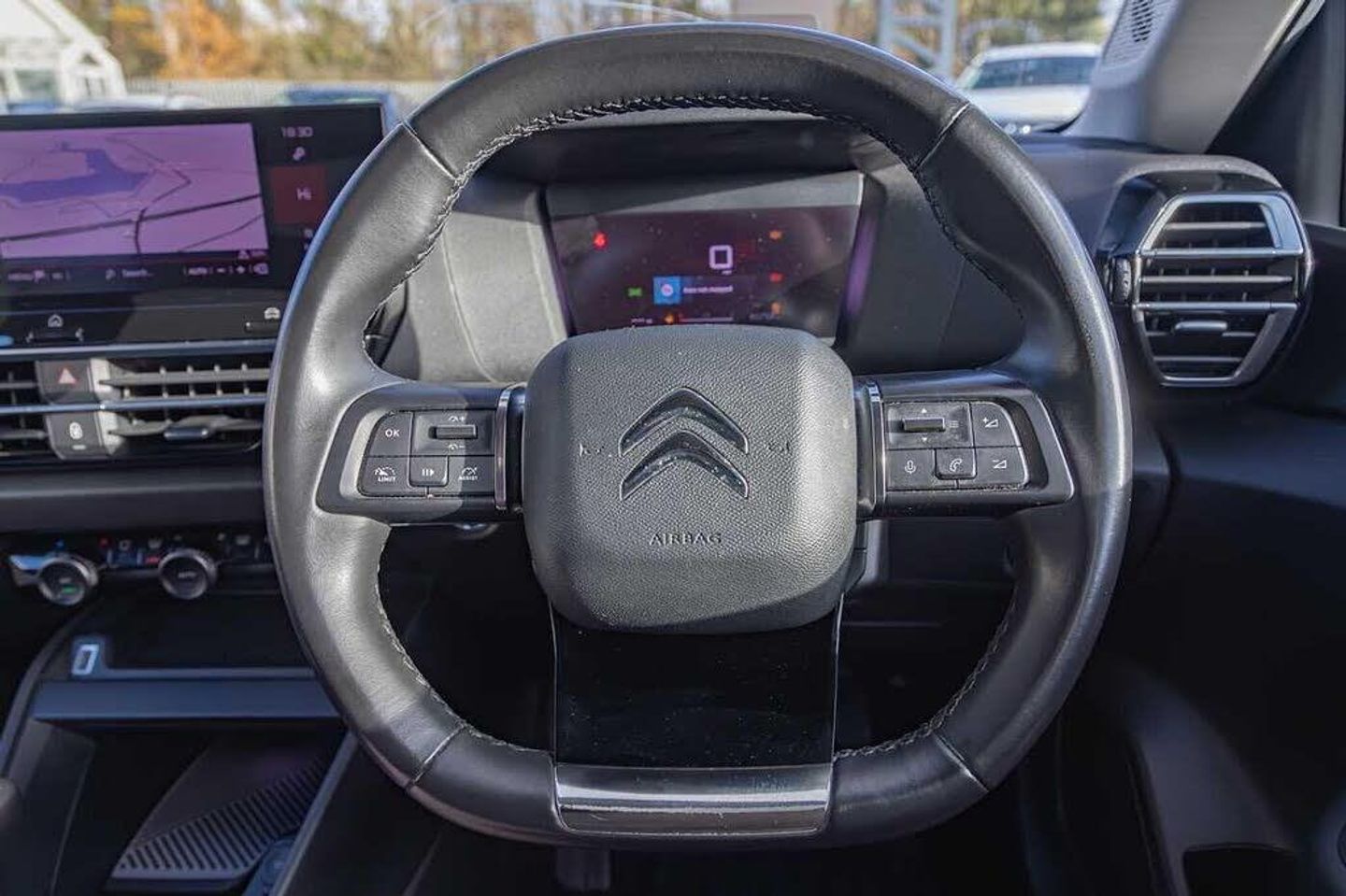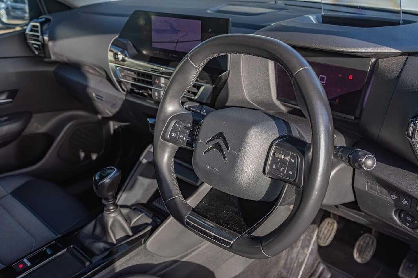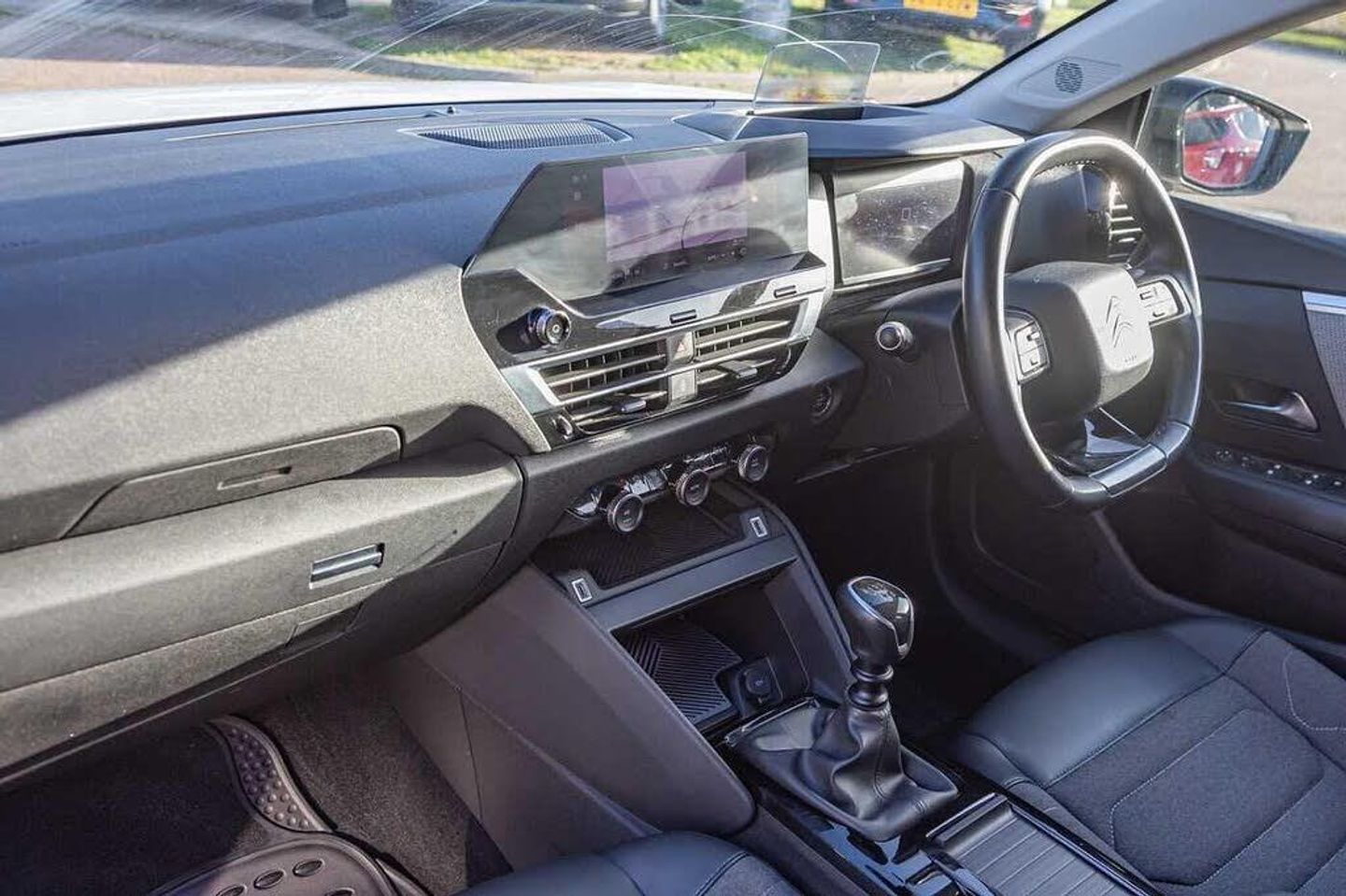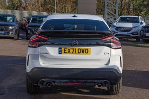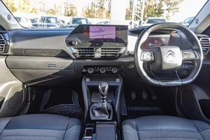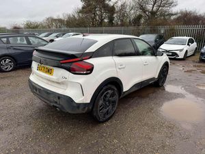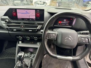 Dark tinted rear windows and side windows with chrome detail, Front and rear electric windows, Rain sensing automatic front windscreen wipers, Suspension with progressive hydraulic cushions - double hydraulic stops on front suspension and single on rear suspension, Body colour bumpers, Body colour door handles, Gloss black rear skirt, Intelligent beam headlights, LED daytime running lights in V signature, LED front fog lamps with static cornering function, LED front headlamps, Welcome and goodbye lighting, ABS, Electric parking brake, ESP, Hill start assist, Post collision safety brake, Active blind spot detection, Citroen connect box emergency and assistance system, Cruise control + speed limiter, Electronic Power Steering (EPS), In-crash braking, Body colour painted external rear view mirrors, Electrically heated, folding and adjustable external rear view mirrors with courtesy lighting, Electrochrome interior rear-view mirror with automatic day-night switching, 3x3 point rear seatbelts, Driver and front passenger airbags, Front seatbelt pretensioners, Manual child lock in second row, Manual deactivation of front passenger airbag, Row 1 and 2 curtain airbags, Row 1 side thorax airbags, Seatbelt unfastened on the move warning, Tyre underinflation detection, Apple car play and Android auto, Voice commands, Auxiliary input socket, Bluetooth telephone and audio streaming, DAB Digital radio, 10'' high resolution touchscreen user interface, controlling media, connectivity and vehicle settings, 5.5 inch backlit full TFT driver's instrument cluster with LED ambient lighting, Citroen connect nav with speed cam and danger zones alert, Driver's head-up display, Dual zone automatic air conditioning, 12V power outlet, 1x USB Type-C socket charging & data connection and 1x USB Type-A socket in 1st row and 1x USB Type-A socket charging in 2nd row, Dashboard tray in front cabin, Deluxe leather steering wheel with two command blocks, Height and reach adjustable steering wheel, Raised centre console with armrest and two cup holders, Two position boot floor, Boot light, Front and rear LED interior lighting, Driver and passenger sunvisors with illuminated vanity mirrors, High level acoustic insulation pack - C4/C4 X/e-C4 X, Safety pack plus - C4 Shine/ Shine Plus, 3 rear headrests, Front head restraints, Height adjustable front passenger seat, Map pockets in rear of front seats, Split folding rear seats, Anti-theft alarm (volumetric protection), Immobiliser, Keyless entry and start, Remote locking with deadlocks, 18'' Bi-tone diamond-cut aeroblade alloy wheels with anti-theft locking wheel nuts, Puncture repair kit with compressor