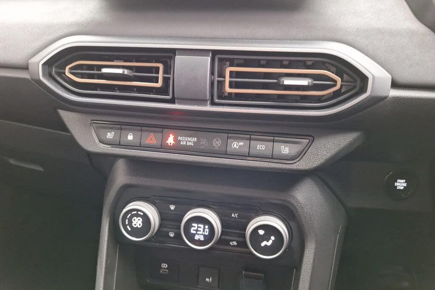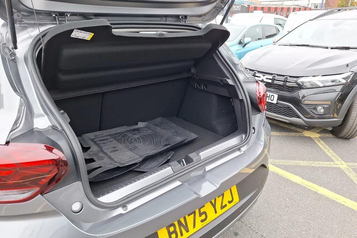 3.5" TFT instrument panel with on-board computer,Blind spot warning,Cruise control with speed limiter,Driver attention warning,eCall emergency call system,Eco mode,Electric power assisted steering,Emergency Stop Signal (ESS),Event data recoder,Extended grip switch,Front parking sensors,Lane departure warning,Lane keep assist,Rear parking sensors,Rescue code,Rev counter,Reversing camera,Stop/start system,Traffic sign recognition with speed alert/Intelligent speed assist (ISA),8" MediaNav with DAB Radio + Smartphone replication + Bluetooth + 6 Speakers with Apple Carplay and Android Auto,USB connection for data transfer and charging,USB socket,USB-C plug,USB-C plug rear,3 speed windscreen wipers,Auto lighting,Automatic wipers,Black radiator grille with white inserts stepway inscription,Body colour door handles,Body coloured bumpers,Copper Brown Dacia inscription on tail gate,Copper brown deco part on fog lamp area,Copper brown door mirrors,Copper brown stepway inscription on roof bars,Door sills in topographic pattern,Drivers one touch electric windows,Electrically adjustable and heated door mirrors,Front electric windows,Front fog lights,Heated rear window,High level third brake light,Lateral sticker with topographic pattern,LED automatic daytime running lights,LED Y-shape Dacia signature lighting,Megatith modular roof bars,Rear electric windows,Rear side wing doors,Rear wash/wipe,Shiny black shark antenna,Snorkel sticker with topographic pattern,Tinted windows,Topographic door protection decals and snorkel animation,1/3 to 2/3 split folding rear seats,12 volt front socket,12 volt rear socket,3 height adjustable rear headrests,3 seat rear bench,Automatic air conditioning,Copper brown doors deco parts,Driver and passenger vanity mirror with cover,Fixed smartphone holder on dashboard,Fog grey animation on air vents,Fog grey interior door handles,Front and rear rubber mats with topographic pattern,Gear shift indicator,Height adjustable drivers seat with armrest,Height adjustable front headrests,Height/depth adjustable steering wheel,High central armrest with console storage,Isofix points for child seats in both outer rear seats,Micro-cloud grey fabric on dashboard,MicroCloud fabric upholstery,Single front passenger seat,Soft feel steering wheel,Steering wheel controls,3x3 point rear seatbelts,ABS and Emergency brake assist,Advanced emergency braking system,Alcohol imoboliser predisposal,Automatic emergency braking system,Child locks on rear doors,Door open visual and audible warning,Driver airbag,EBD - Electronic brakeforce distribution,Electronic parking brake,ESC (Electronic Stability Control),ESP + Hill Start Assist,Front curtain airbags,Front seatbelt pretensioners,Front side airbags,Height adjustable front seatbelts,Passenger airbag,Seatbelt reminder for driver and front passenger,Side impact protection,Tyre pressure monitor,Automatic central locking,Immobiliser,Keyless entry,Remote central locking,Decopart on instrument panel and door with textile,16" Mahalia black alloy wheels,Extreme - Cloth - Black,Shadow Grey