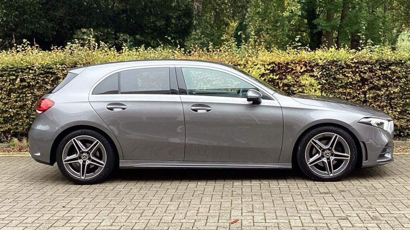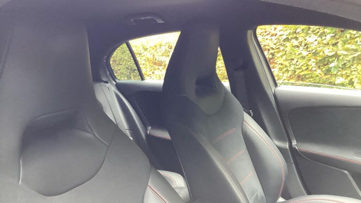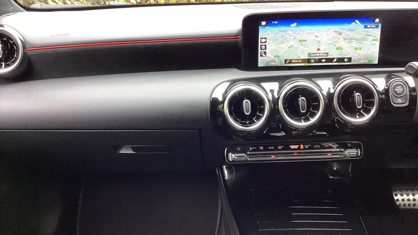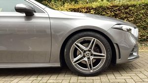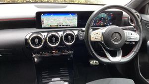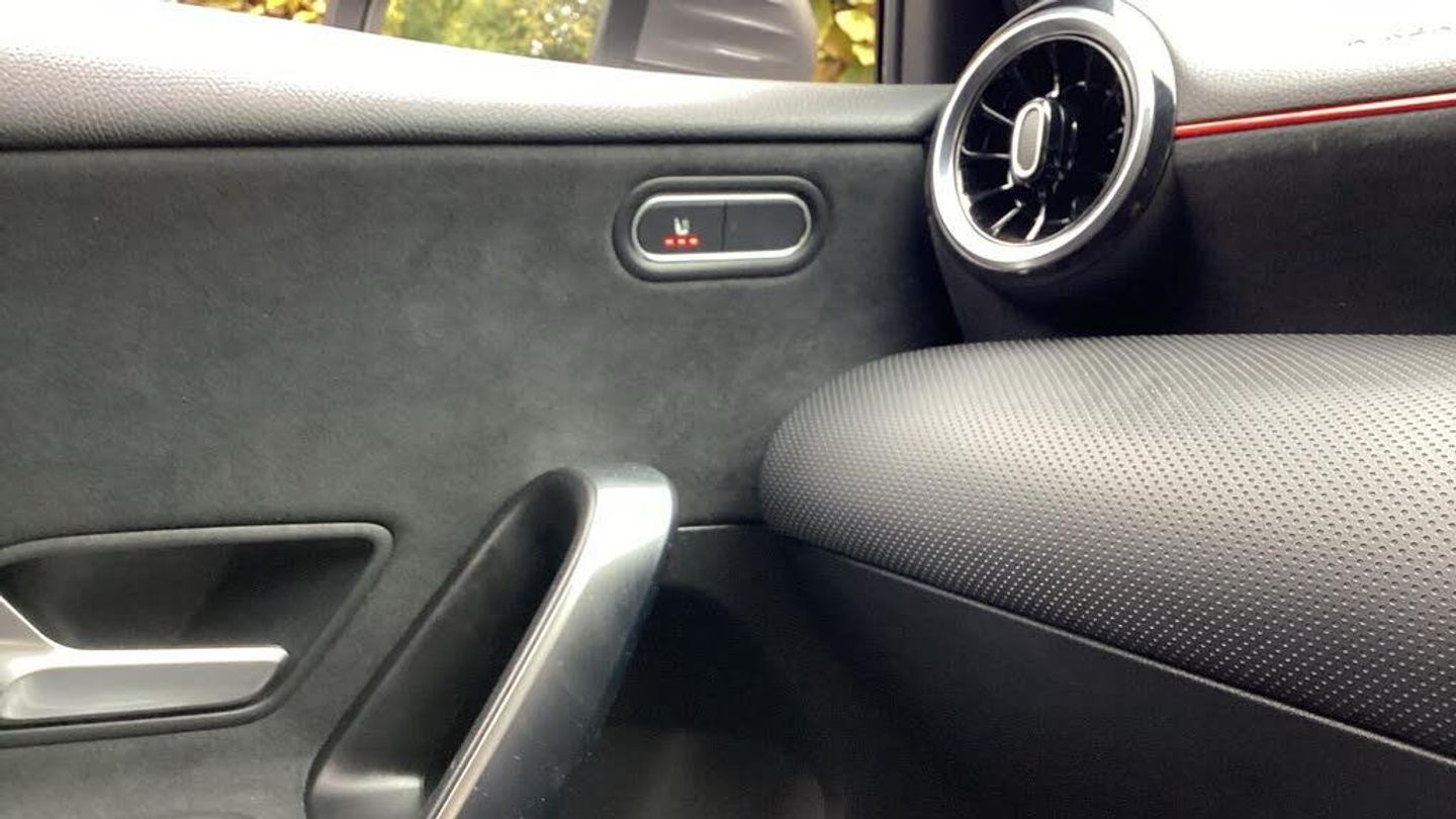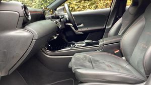 10.25'' media display, 180 degree rear view camera with parking guidelines, 7'' colour screen in instrument panel, Active parking assist with visual and audible warning of detected obstacles, Attention assist, Brake pad wear indicator warning light, Car wash mode, Cruise control + speed limiter, Direct steering, Dual bluetooth interfaces, DYNAMIC SELECT with a choice of driving modes (ECO, Comfort, Sport and Individual), ECO start/stop function, Fluid level warning indicator for fuel, oil, coolant and washer fluid, Hard-disk navigation, Hey Mercedes Voice activation, Lamp failure indicator, Mercedes me connect including emergency call system, accident recovery, breakdown and maintenance management, Mercedes me remote services, Outside temperature gauge, Owners manual in English, Pre-installation for private car sharing, Preinstallation for Mercedes Benz link, Service indicator (ASSYST), Smartphone integration with Apple CarPlay and Android auto, Speed sensitive power steering, Trip computer, Ultrasonic sensors positioned in the front and rear bumpers, Wireless charging, Lowered comfort suspension, Rear axle torsion beam, 2 USB ports (type C) in rear stowage compartment and one in front of center console, 6 speakers, DAB Digital radio, MBUX multimedia system with DAB digital radio and touchpad including satellite navigation, Mercedes-Benz sound system - 100W, 4 Electric Front and Rear windows, Adaptive brake lights, AMG bodystyling - Front apron with splitter in chrome, rear apron with chrome trim and chrome visible trim elements in tailpipe, Black weather strip, Body colour bumpers, Body colour door handles, Body colour side skirt, Body coloured door mirrors, Chrome beltline trim, Diamond radiator grille with chrome pins and silver louvre + chrome insert, Electric adjustable and heated door mirrors with integrated LED side indicators, Exhaust system - Twin visible tailpipes in polished stainless steel, Headlamp assist automatic headlamp activation, Heated glass rear windscreen + timer control, LED high performance headlamps with integrated LED daytime running lights, LED tail lamp, LED third brake light, Privacy glass, Radio aerial, Rain sensing windscreen wipers with two sensitivity settings, Rear fog lights, Rear wiper, Window line trim strip in chrome, 3 Spoke flat bottom leather multi function steering wheel with perforated leather in grip area, 40:20:40 split folding rear seats, Artico man-made leather/Microfibre Dinamica upholstery with red contrast stitching, Auto Mercedes-Benz child seat recognition sensor, Black air vents with surround in silver chrome, Black roof lining, Brushed stainless steel sports pedals with rubber studs, Controller on centre console with chrome surround, Floor mats with stitched edging and AMG lettering, Front centre armrest with storage compartment, Front door sills with Mercedes Benz lettering, Front seat backs luggage nets, Front seat cushion length adjustment, Galvanished gear shift paddles on steering wheel, Heated front seats, Height/reach adjustable steering column, Interior mirror with reading lamps in black and frameless, Manual height adjustable front seats, Rear head restraints, Seat occupancy sensor for front passenger seat, Sports seats with integrated headrests, Stowage compartment in centre console with retractable cover, Sunvisors with illuminated vanity mirrors, Touchpad on center console, Twin front cupholders, Two zone thermotronic luxury automatic climate control, Light and sight pack - A Class, Mirror package - A Class, Seat comfort pack - A Class, 3 rear 3 point seatbelts, ABS with Brake Assist, Active bonnet, Active brake assist includes forward collision warning system with autonomous braking, Adaptive brake assist with hold function and hill start assist, Black seatbelts, Childproof locks manually operated for rear doors and electrically operated for rear power windows, Crash responsive emergency lighting, Driver and passenger head and side airbags, Drivers knee airbag, D