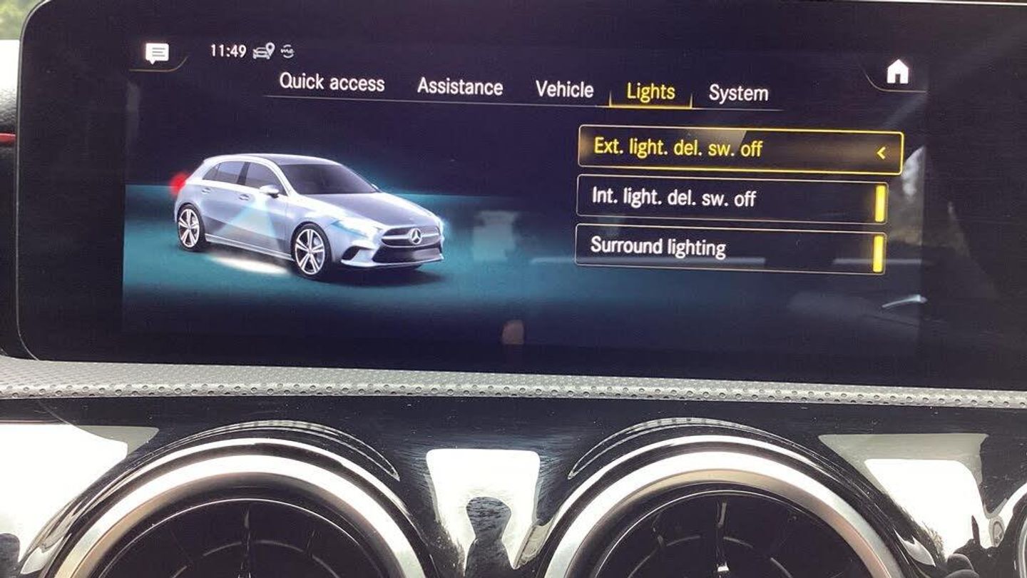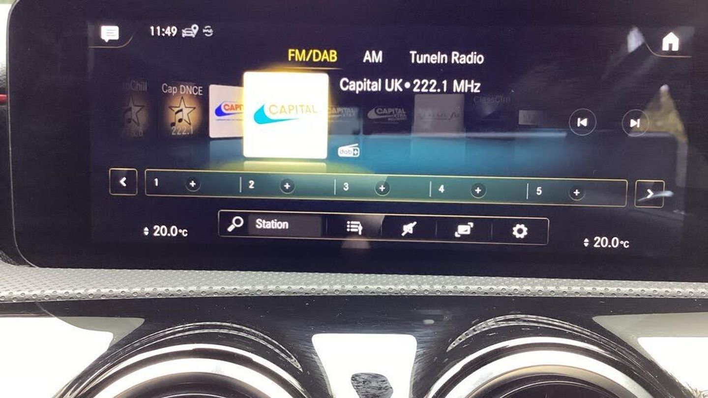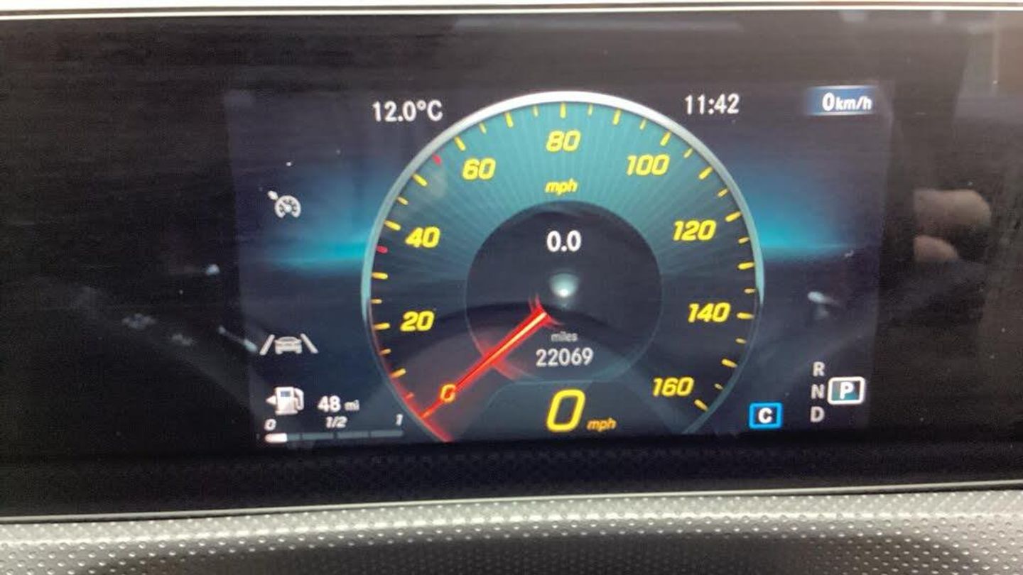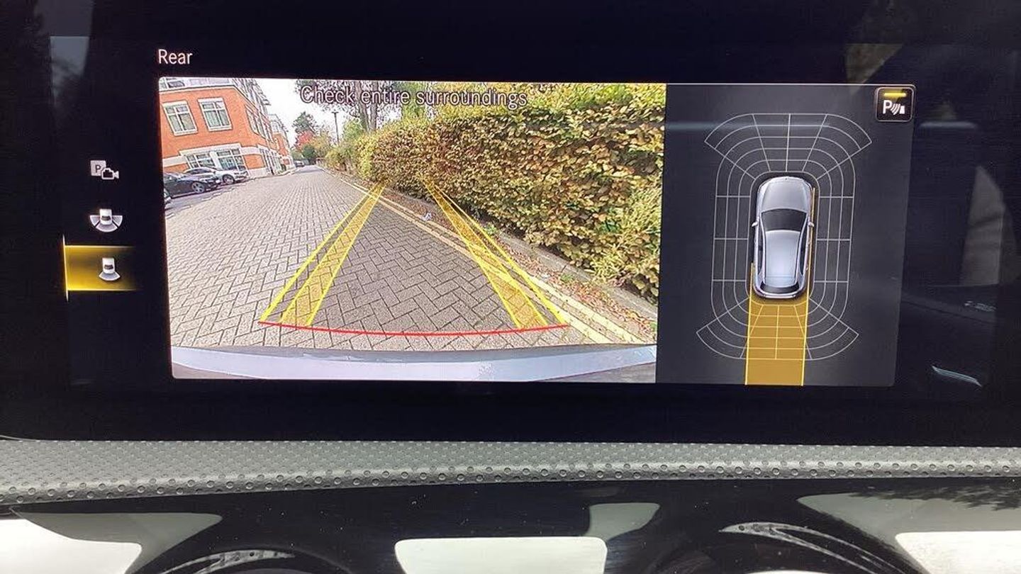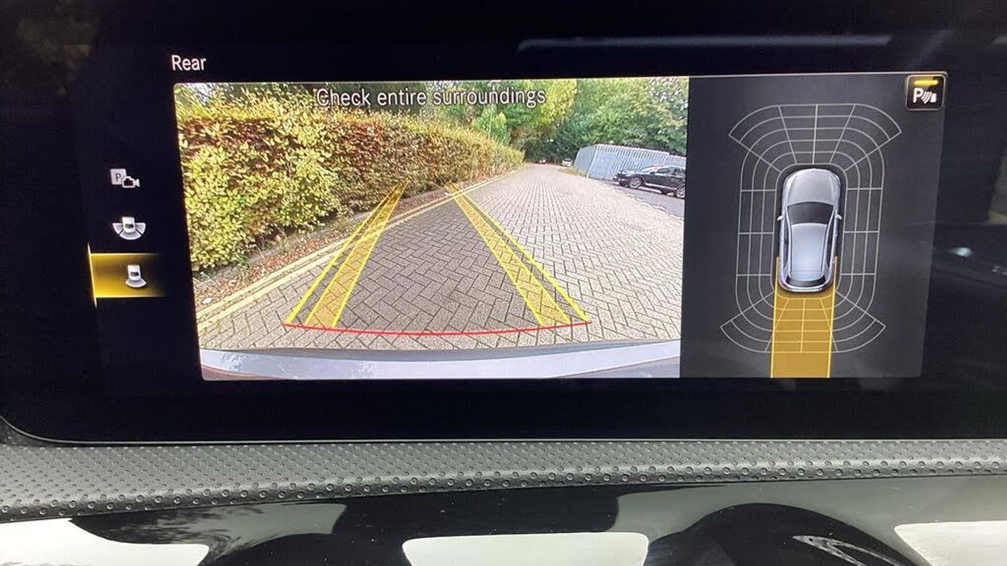 10.25'' media display, 180 degree rear view camera with parking guidelines, 7'' colour screen in instrument panel, Active parking assist with visual and audible warning of detected obstacles, Attention assist, Brake pad wear indicator warning light, Car wash mode, Cruise control + speed limiter, Direct steering, Dual bluetooth interfaces, DYNAMIC SELECT with a choice of driving modes (ECO, Comfort, Sport and Individual), ECO start/stop function, Fluid level warning indicator for fuel, oil, coolant and washer fluid, Hard-disk navigation, Hey Mercedes Voice activation, Lamp failure indicator, Mercedes me connect including emergency call system, accident recovery, breakdown and maintenance management, Mercedes me remote services, Outside temperature gauge, Owners manual in English, Pre-installation for private car sharing, Preinstallation for Mercedes Benz link, Service indicator (ASSYST), Smartphone integration with Apple CarPlay and Android auto, Speed sensitive power steering, Trip computer, Ultrasonic sensors positioned in the front and rear bumpers, Wireless charging, Lowered comfort suspension, Rear axle torsion beam, 2 USB ports (type C) in rear stowage compartment and one in front of center console, 6 speakers, DAB Digital radio, MBUX multimedia system with DAB digital radio and touchpad including satellite navigation, Mercedes-Benz sound system - 100W, 4 Electric Front and Rear windows, Adaptive brake lights, AMG bodystyling - Front apron with splitter in chrome, rear apron with chrome trim and chrome visible trim elements in tailpipe, Black weather strip, Body colour bumpers, Body colour door handles, Body colour side skirt, Body coloured door mirrors, Chrome beltline trim, Diamond radiator grille with chrome pins and silver louvre + chrome insert, Electric adjustable and heated door mirrors with integrated LED side indicators, Exhaust system - Twin visible tailpipes in polished stainless steel, Headlamp assist automatic headlamp activation, Heated glass rear windscreen + timer control, LED high performance headlamps with integrated LED daytime running lights, LED tail lamp, LED third brake light, Privacy glass, Radio aerial, Rain sensing windscreen wipers with two sensitivity settings, Rear fog lights, Rear wiper, Window line trim strip in chrome, 3 Spoke flat bottom leather multi function steering wheel with perforated leather in grip area, 40:20:40 split folding rear seats, Artico man-made leather/Microfibre Dinamica upholstery with red contrast stitching, Auto Mercedes-Benz child seat recognition sensor, Black air vents with surround in silver chrome, Black roof lining, Brushed stainless steel sports pedals with rubber studs, Controller on centre console with chrome surround, Floor mats with stitched edging and AMG lettering, Front centre armrest with storage compartment, Front door sills with Mercedes Benz lettering, Front seat backs luggage nets, Front seat cushion length adjustment, Galvanished gear shift paddles on steering wheel, Heated front seats, Height/reach adjustable steering column, Interior mirror with reading lamps in black and frameless, Manual height adjustable front seats, Rear head restraints, Seat occupancy sensor for front passenger seat, Sports seats with integrated headrests, Stowage compartment in centre console with retractable cover, Sunvisors with illuminated vanity mirrors, Touchpad on center console, Twin front cupholders, Two zone thermotronic luxury automatic climate control, Light and sight pack - A Class, Mirror package - A Class, Seat comfort pack - A Class, 3 rear 3 point seatbelts, ABS with Brake Assist, Active bonnet, Active brake assist includes forward collision warning system with autonomous braking, Adaptive brake assist with hold function and hill start assist, Black seatbelts, Childproof locks manually operated for rear doors and electrically operated for rear power windows, Crash responsive emergency lighting, Driver and passenger head and side airbags, Drivers knee airbag, D