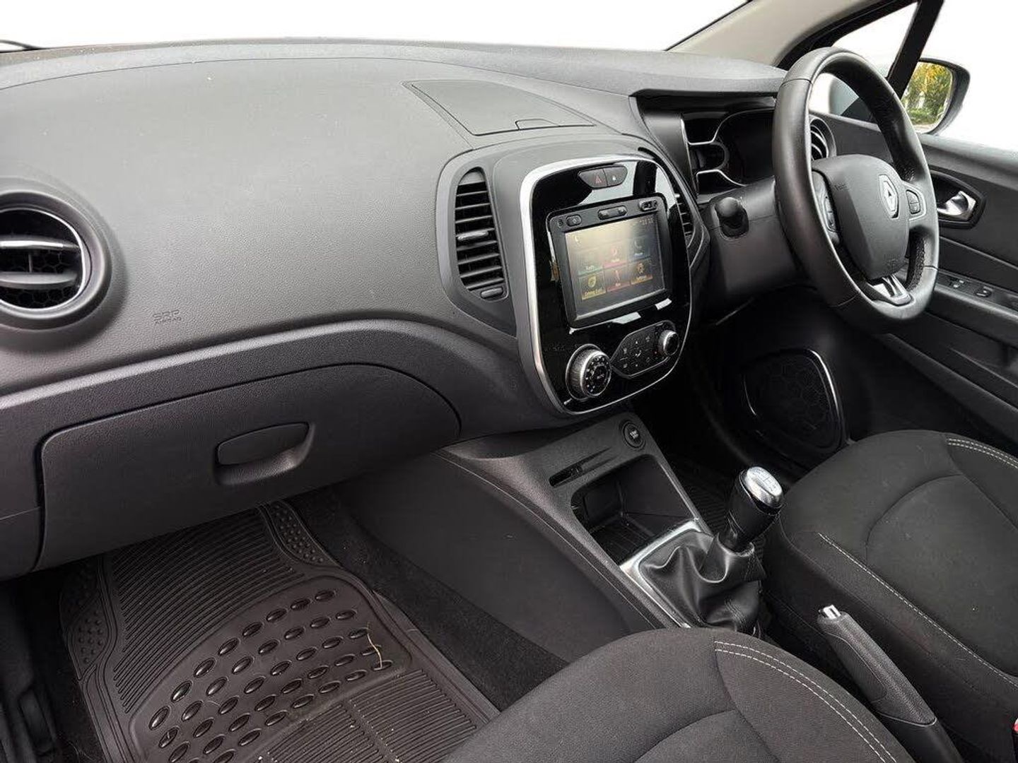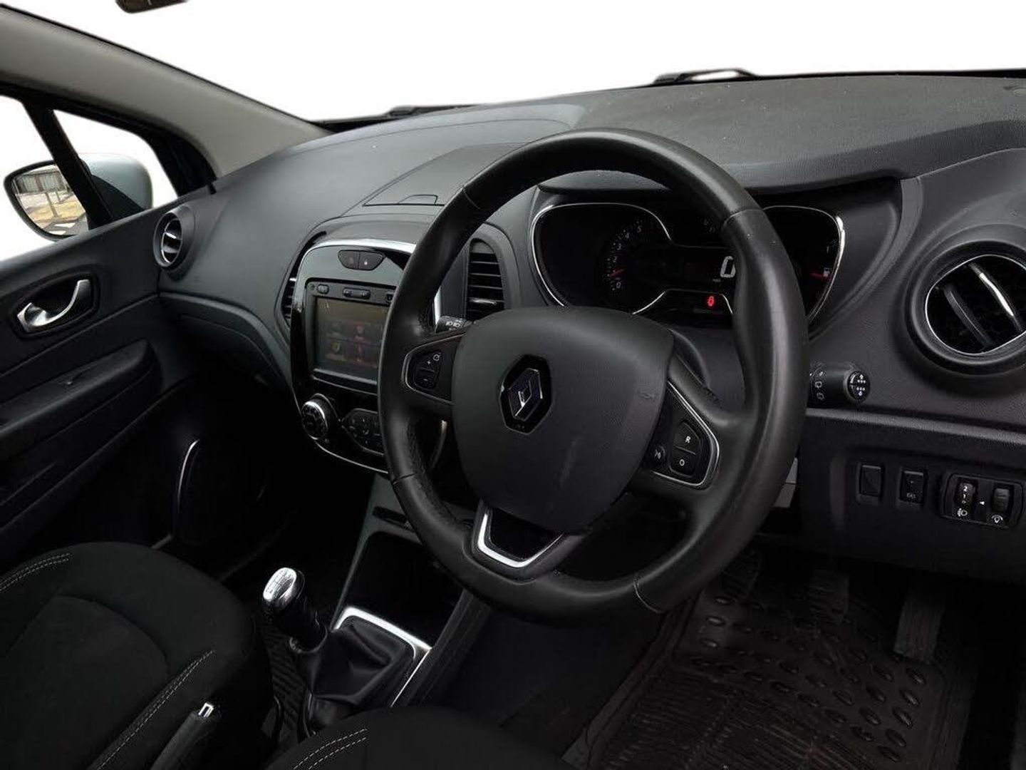 Cruise control + speed limiter, Eco mode, Smartphone cradle, Trip computer, Variable PAS, Auxiliary input socket, DAB Digital radio, Fingertip controls for audio system, Body colour door handles, Body coloured bumpers, Electric front windows + one touch + anti-pinch, Electric rear windows, Extra tinted glass in rear windows and tailgate, Front skid plate, LED daytime running lights, LED front fog lights, Rain sensitive wipers + automatic lighting, Rear skid plate, Rear wiper, Variable intermittent front wash/wipe, 12V Accessory socket, 3 rear headrests, 60/40 split rear seats, Centre console storage tray, Climate control, Compartment in glovebox, Dark harmony dashboard and door panels, Fixed cloth upholstery, Front cupholder, Front seat backrest storage nets, Height adjustable driver's seat, Height adjustable front headrests, Height/reach adjust steering wheel, ISOFIX on front passenger and rear outer seats, Leather steering wheel and gear knob, Pollen filter, Removable storage between driver and passenger, Reversible boot floor, Storage area on top of dashboard, Storage compartments in doors, Variable boot floor, Exterior touch pack Chrome - Captur, Interior touch pack Chrome - Captur, 3 point seatbelts on all rear seats, ABS+EBA, Driver/Front Passenger airbags, ESC - Electronic Stability Control + traction control, Front passenger airbag deactivation, Front side airbags(head+thorax), Hill start assist, Rear door child safety locks, Seatbelt warning, Tyre pressure monitor, Deadlocking system, Keyless entry, RAID (Renault Anti-Intruder Device) with automatic door locking, Thatcham Cat 2 engine immobiliser, 17" Explore alloy wheels with black inserts