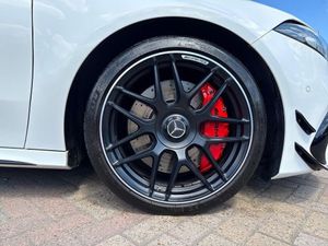 10.25in Media Display, 19in Alloy Wheels - AMG Forged Cross-Spoke, ABS - Anti-Lock Braking System with BAS - Brake Assist, AMG A 45 S Bodystyling, AMG Aerodynamics Package, AMG Bodystyling - Front and Rear Apron, AMG Centre Console - Decidedly Sporty with Raised Front Section, AMG Centre Console is Finished with Trim in Silver Chrome, AMG Drive Unit including AMG Dynamic Select Controller, AMG Drivers Package with Top Speed of 170mph, AMG Dynamic Select with a Choice of Driving Modes, AMG High-Performance Braking System with Red Brake Calipers and Black AMG Lettering at the Front, AMG Instrument Cluster with Colour Display and AMG Menu, AMG Leather Package, AMG Night Package, AMG Speed-Sensitive Steering with Two Sets of Steering Characteristics, AMG Sports Pedals in Brushed Stainless Steel with Rubber Studs, AMG Sports Suspension, AMG Track Pace - Records Lap Times on the Racetrack, ATTENTION Assist, Active Bonnet - Pedestrian Safety Measure which Detects an Impact and Raises Bonnet by 65mm, Active Brake ASSIST, Active Lane Keeping Assist, Adaptive Brake Assist with Hold Function and Hill Start Assist, Adaptive Brake Lights, Air Conditioning - THERMOTRONIC Luxury Automatic Climate Control - Two-Zone with Display, Air Vents - Black with Silver Chrome Elements, Airbag - Kneebag for Driver, Airbags - Dual Stage - Driver and Front Passenger, Airbags - Windowbags for Driver and Front Passenger, Alarm System with Immobiliser and Interior Protection - Thatcham Category 1, Automatic Child Seat Recognition Sensor, Beltline Strips - High Gloss Black, Blind Spot Assist, Bonnet with Power Domes, Brake-Pad Wear Warning Indicator, Bumpers - Body Coloured, Burmester Surround Sound System, Car Wash Mode, Centre Armrest - Front with Stowage, Childproof Locks - Manually Operated for Rear Doors and Electrically Operated for Rear Power Windows, Crash-Responsive Emergency Lighting, Cruise Control with Limiter, DAB Digital Radio Tuner, Direct Steer Speed-Sensitive Power Steering, Door Handles - Body Coloured, Door Mirrors - Electrically Adjustable and Heated with Integrated LED Indicators, Dual Bluetooth Interfaces, ESP - Electronic Stability Programme - Three-Stage, ESP - Electronic Stability Programme with ASR - Acceleration Skid Control, ESP Curve Dynamic Assist, Electric Parking Brake, Electric Windows - 4, Exhaust System - AMG Real Performance Sound, Exhaust System - Two Round Twin Tailpipe Trim Elements, Exhaust System with Valve Control Dependant on Drive Program, Exit Warning Assist, First Aid Kit and Warning Triangle, Floor Mats - AMG, Glass - Rear Windscreen - Heated with Timer Control, Hard-Disk Navigation, Headlamp Assist - Automatic Headlamp Activation, Heated Front Seats, Hey Mercedes - Voice Activation, High Level Third Brake Light - LED, ISOFIX and Top-Tether Child Seat Fixing Points in Rear - Two Outer Seats, Illuminated Front Door Sills with Mercedes-Benz Lettering, Instrument Cluster - Outside Temperature Display, Instrument Cluster - Service Indicator ASSYST, Instrument Cluster - Trip Computer in Multi-Function Display with Current Fuel Consumption Indicator, Instrument Display - 10.25in Display, Integrated Radio Aerial, Interior 64-Colour Ambient Lighting, Interior Mirror with Reading Lamps in Black and Frameless, KEYLESS-GO - Keyless Locking-Unlocking, KEYLESS-GO Starting Function, LED Tail Lights, Light Failure Indicator, Light and Sight Package, Live Traffic Information, Luggage Compartment Cover, MBUX Augmented Reality for Navigation, MBUX Multimedia System, MULTIBEAM LED Headlights with Adaptive Highbeam Assist Plus, Mercedes Me Connect - Standard Services, Mirror Package, Multi-Contour Seat Package, Panoramic Glass Sunroof, Parking Package, Pre-Installation for Private Car Share, Pre-Installation for Vehicle Monitoring, Pre-Installation for Vehicle Set-Up, Privacy Glass, Radiator Grille - AMG-Specific Radiator Grille in High-Gloss Chrome with AMG Lettering, Rain-Sensing Windscreen Wipers with Two Sensitivity Settings, Rear Armrest with Two Cup Holders, Rear Axle - Multi-Link, Rear Fog Light, Rear Windscreen Wiper, Remote Central Locking and Crash Sensor with Emergency Opening Function, Reversing Camera with Parking Guidelines - 180 Degree View, Roof Lining - Black, Seat Belts - Black, Seat Belts - Rear Three-Point - 3, Seat Belts Reminder - Front and Rear, Seat Comfort Package, Seat Occupancy Sensor - Front Passenger Seat, Seats - AMG Performance, Seats - AMG Performance High-End Package, Seats - Rear Seat Backrests - Split Folding 40-20-40, Smartphone Integration, Speed Limit Assist, Steering Column - Manually Adjustable for Height and Reach, Steering Wheel - AMG Performance - 3 Spoke Multi-function - Trimmed in Nappa Leather-DINAMICA Microfibre with Aluminium Gearshift Paddles - Red 12-o-Clock Marker and AMG Lettering, Summer Tyres, Sun Visors with Illuminated Vanity Mirrors, Suspension with Adaptive Damping System, TIREFIT Tyre-Sealant Kit, Touchpad on Centre Console, Traffic Sign Assist, Trim - Light Longitudinal-Grain Aluminium, Tyre Pressure Monitoring System, URBAN GUARD Vehicle Protection, USB - Type C - 2 Ports in Rear of Stowage Compartment and 1 in Front Centre Console, Wheel Arches - Flared AMG Wings with TURBO 4MATIC+ Lettering, Wider Wheel Arches for AMG Wheels, Window Line - High-Gloss Black, Wireless Charging
