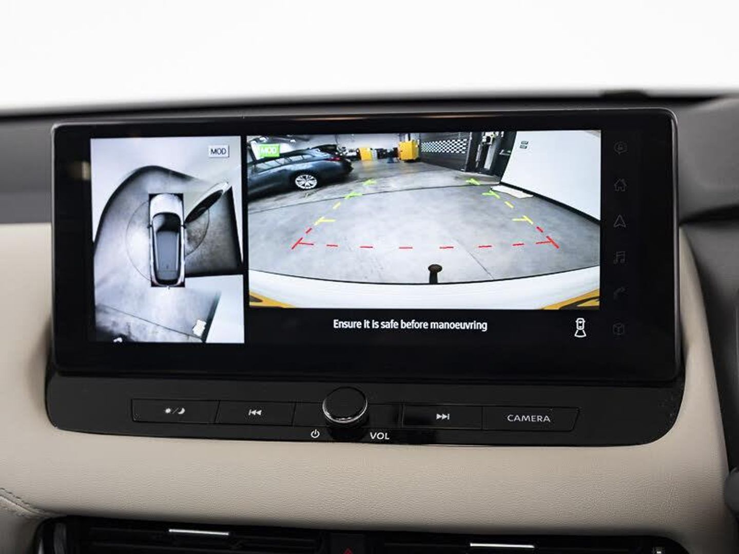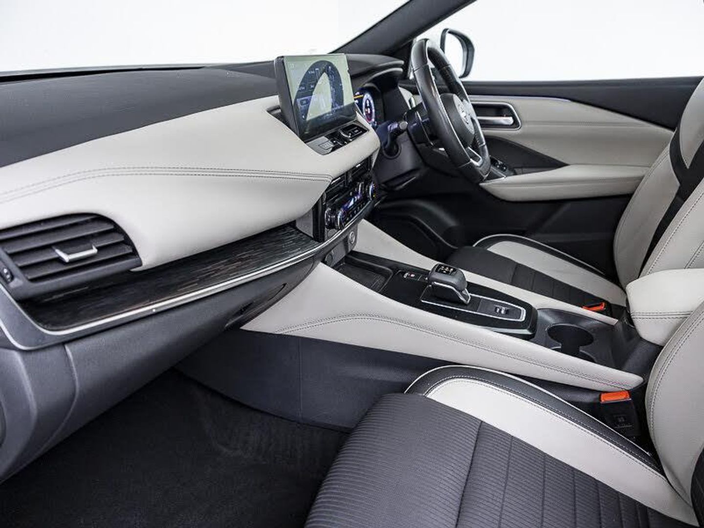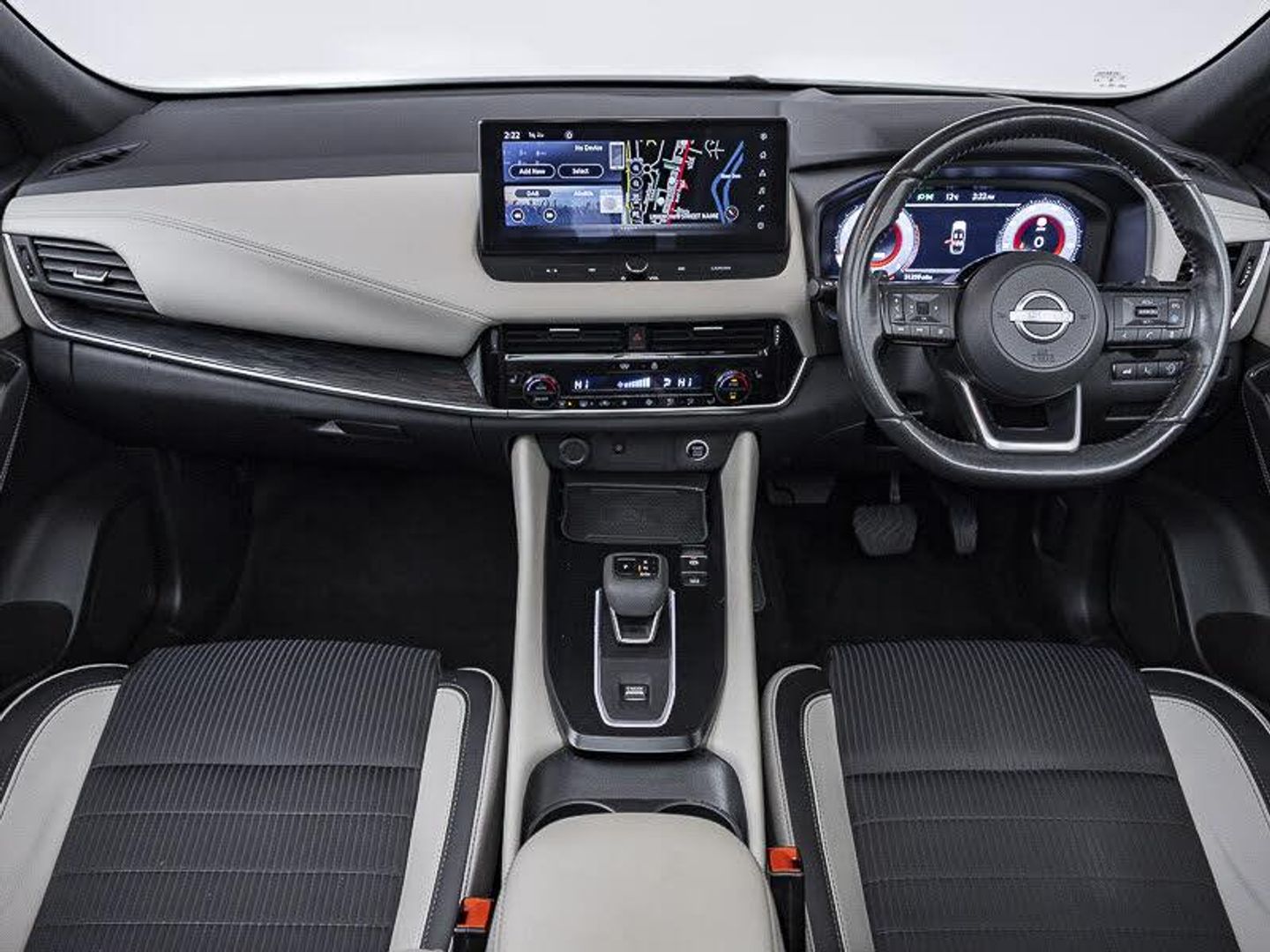 Google maps services - search, weather, 3D maps and Google street view, Nissan connect navigation, Virtual personal assistant and firmware over the air capability, Front and rear parking sensors, Hands free power tailgate, Intelligent around view monitor, Intelligent Cruise control (ICC), Intelligent driver alert system, Intelligent forward collision warning, Intelligent lane intervention, Lane departure prevention, Lane departure warning system, Moving object detection, Push button starter, Rear cross traffic alert, Remote control services - door locks, lights, horn and car locator, Traffic sign recognition with legal speed adjustment, TomTom live traffic services, Full Digital 12.3" TFT Digital Combimeter, Drive modes (sport, normal, eco), Blind spot warning, Bluetooth audio streaming, AM/FM audio system with DAB, Front USB connections (Type-A and Type-C), Rear USB charging only ports (Type-A and Type-C), Auto rear wiper when reversing, Auto dimming rear view mirror, Electric auto folding door mirrors, Electrically adjustable and heated door mirrors with LED turn indicator, Intelligent auto headlights, LED daytime running lights, Front and rear LED turning signals, Splash free rain sensing wipers, Ambient lighting around centre console, Ambient lighting in front doors, Dual zone automatic climate control with pollen filter, Auto hold function, Active brake limited slip, Electronic parking brake, Hill start assist, Intelligent blind spot intervention, Intelligent front emergency braking with pedestrian, cyclist recognition and junction assist, Intelligent rear automatic braking, Tyre pressure monitoring system, Child locks on rear doors, Thatcham Cat.1 alarm
