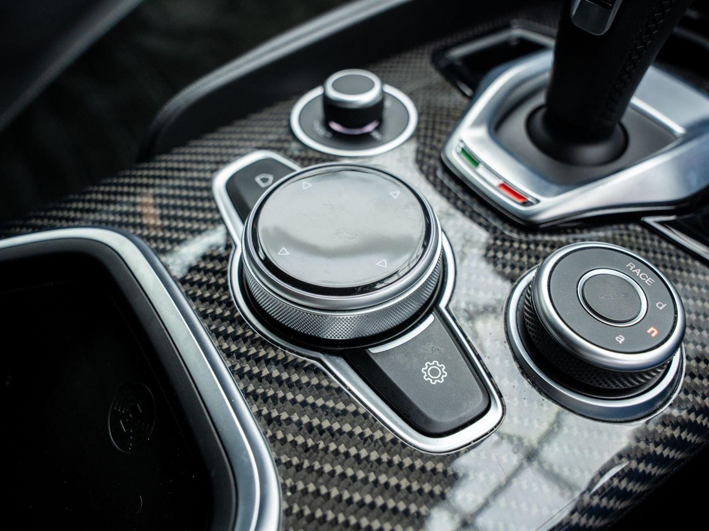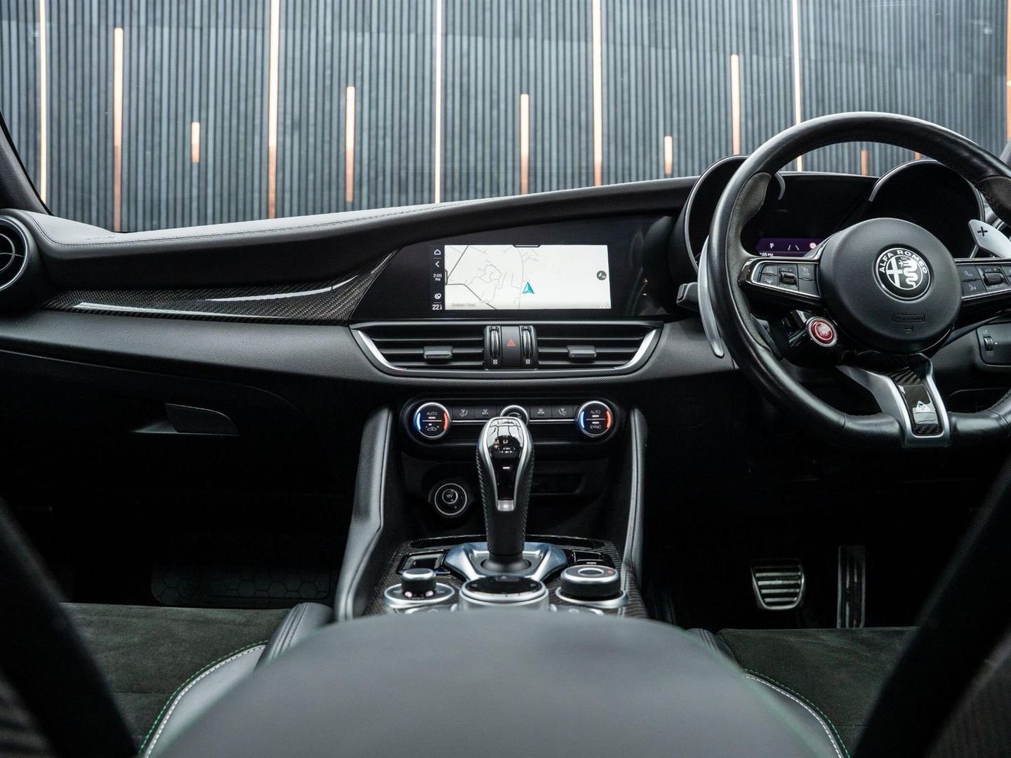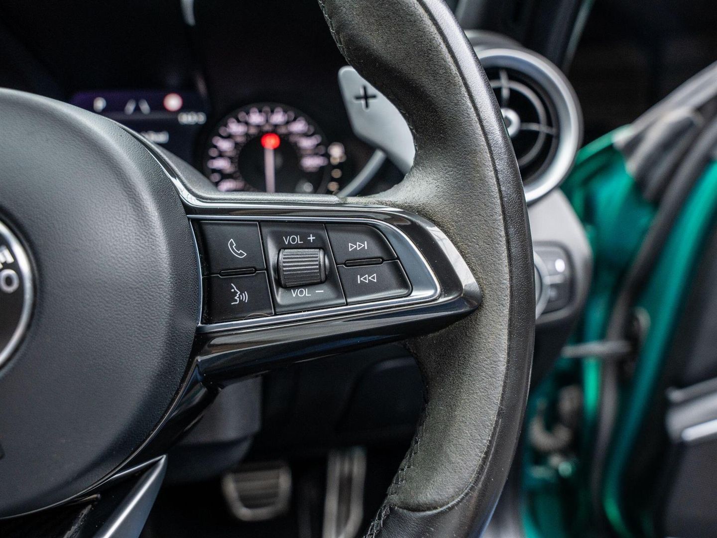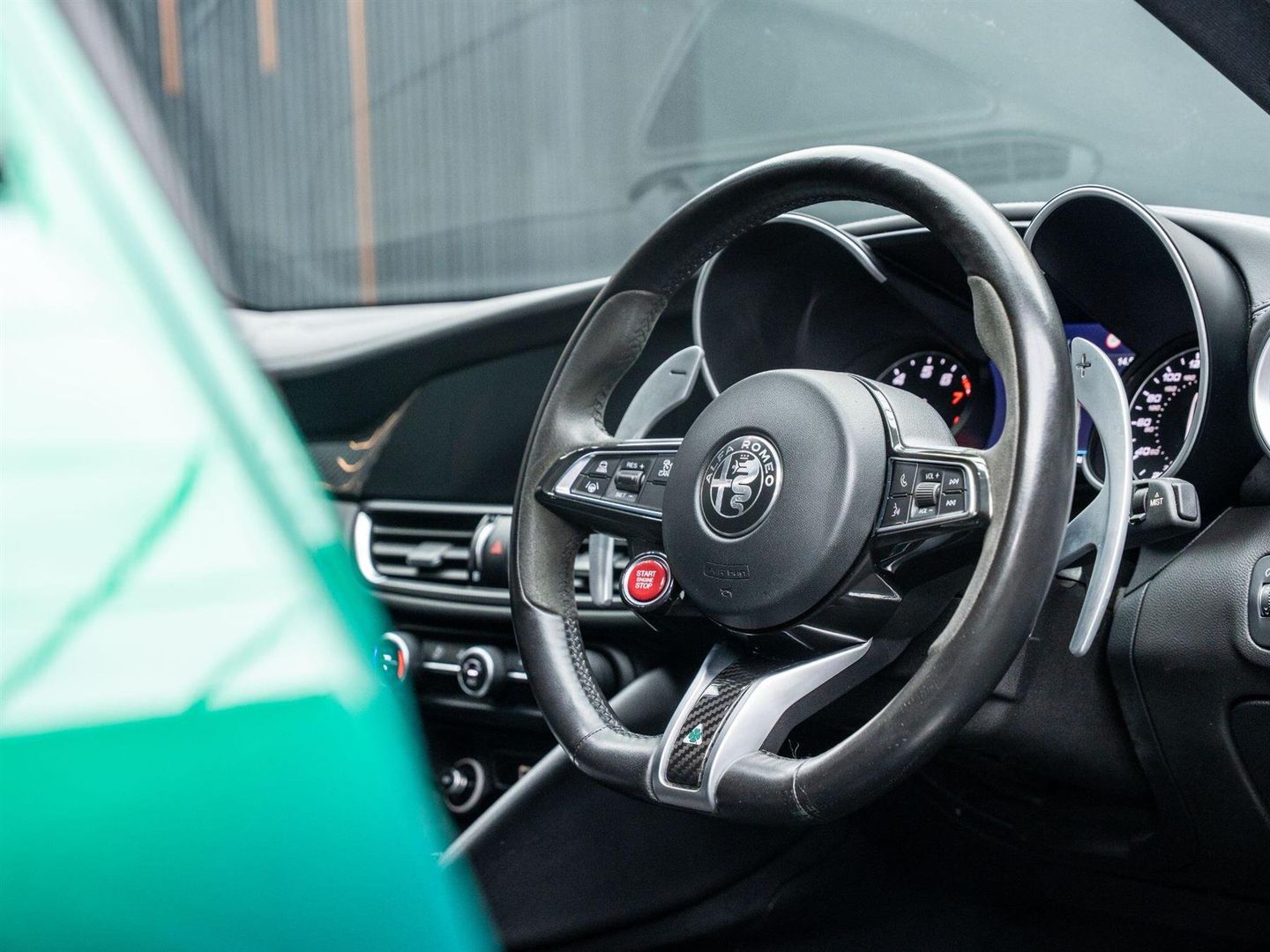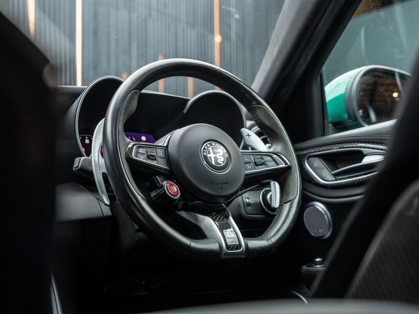 - Quadrifoglio Leather-Alcantara Flat Bottomed Sports Steering Wheel with Carbon Insert