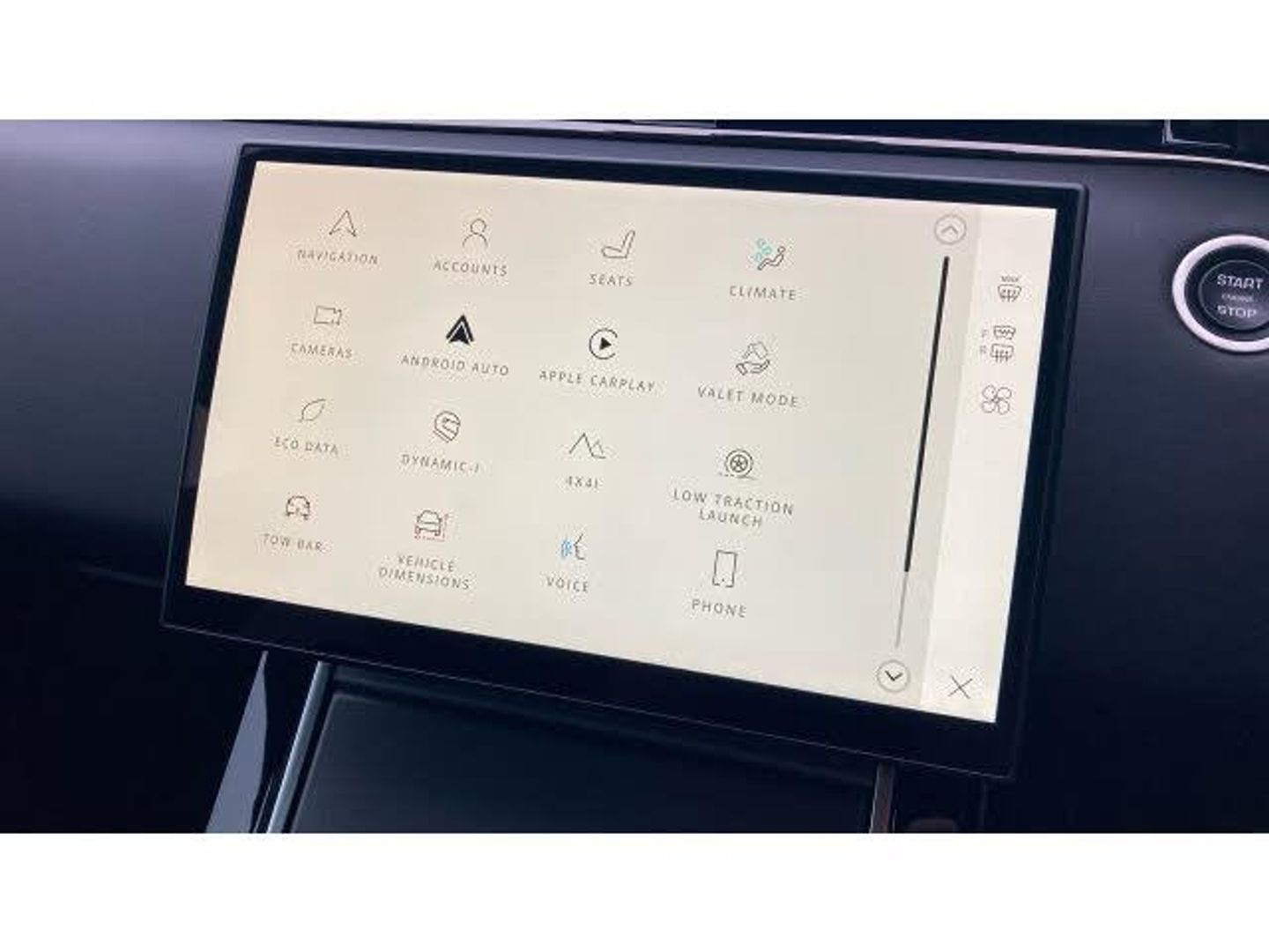 Carpet mats, Heated windscreen, Rear wiper, Heated washer jets, Heated rear window with timer, Rain sensing windscreen wipers, Acoustic laminated windscreen, Electric windows with one touch open/close and anti trap, Winter wiper park position, Electronic traction control, Electronic brake force distribution, Hill descent control, DSC - Dynamic Stability Control, Electronic parking brake, Roll stability control, Torque vectoring brake, Hill Launch assist, Efficient Driveline, Anti-lock Braking System (ABS), Brake hold function, All terrain progress control, Passive suspension, Terrain Response 2, Voice control system, Land rover incontrol apps, InControl remote, Apple car play, Bluetooth connectivity, Wireless device charging, Adaptive cruise control, Lane keep assist, Eco mode, Blind spot assist, Low traction launch, Traffic sign recognition with adaptive speed limiter, Front and rear parking aid, Rear traffic monitor