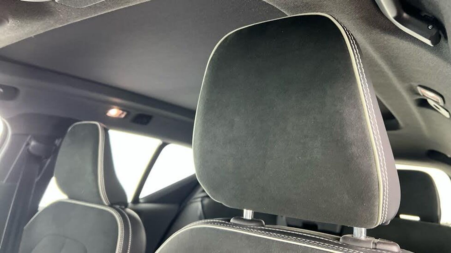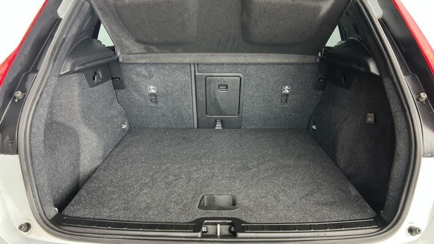 Power Glass Tilt and Slide Panoramic Sunroof with Sun Curtain, Smartphone Integration includes Apple CarPlay and Android Auto - with 2 Type A x USB Hub, Leather-Nubuck - Charcoal, Panoramic Roof, Smartphone Integration (includes Apple Car Play and Android Auto) with 2 x USB Hub, Roof top in contrast colour. Black Stone, Door mirror covers. Black Stone, Nubuck textile/Nappa Leather upholstery, 8-speed Automatic transmission, Sport Pedals, Tailored leather gear shift with contrasting seams, 2-Zone Electronic Climate Control, Afterrun parking climate, Passenger Airbag Cut Off Switch, Dual Stage Driver and Passenger Airbags, Driver Knee Airbag, Panoramic Roof, Charcoal headlining, Charcoal interior inserts, Road Sign Information, Driver Alert Control with Lane Keeping Aid, R-Design grille with high-gloss black insert, LED headlights, 12-inch driver display, Cruise Control, Adjustable Speed Limiter, My Volvo, DAB (Digital Audio Broadcasting) Radio, High Performance Sound, Autofolding Heated Power Door Mirrors, Automatic door locking, Small storage. front, Double locking, Dark Tinted Rear Windows, Anti-theft Alarm including Immobiliser. Volume Sensor and Level Sensor, Power Operated Tailgate, CleanZone Air Quality System and Pollen Filter, GloveBox Bag Hook, Voice Activated Control for Key Functions, Digital owners manual, Cutting Edge aluminium decor, Adjustable passenger seat, Five seats, Mechanical release second seat row, Manual cushion extensions. driver and passenger, 4-Way Lumbar Support, Sport Textile Mats. Charcoal, Load Protection Net, Rear centre armrest, Illuminated Vanity Mirrors, Rear Footwell and Side Step Illumination, 12v Socket - Cargo Area, Auto-dimmed rear-view mirror, Front and 2nd Row Centre Armrest with Storage and Cupholders, Glossy black tunnel console, Sport Chassis, Braking system, Indirect Tyre Pressure Monitoring System (iTPMS), Oncoming Lane Mitigation, Hill Descent Control, EBL. Flashing Brake Light and Hazard Warning, Tailored sport steering wheel. Charcoal, Adaptive power steering, 18 5 Double Spoke (Diamond Cut/Matt Black), Temporary mobility kit, Locking Wheel Nuts, Hidden tail pipes, Glossy Black Window Trim, Roof Rails - Integrated. High Gloss Black, Volvo tread plates. aluminium, Tempered side windows, Rain Sensor - Automatic Windscreen Wiper Activation, Sensus Navigation, Rear Park Assist, Ticket Holder, Plastic protection cap, Smartphone Integration (includes Apple Car Play and Android Auto) with 2 x USB Hub, Front seats, 9-inch centre display, Whiplash injury protection system, IC (Inflatable Curtains) - Full Length, Side impact protection, ISOFIX Attachment (Outer Rear Seats), Steering Wheel Remote Infotainment Control, Humidity sensor, Bluetooth® Handsfree System