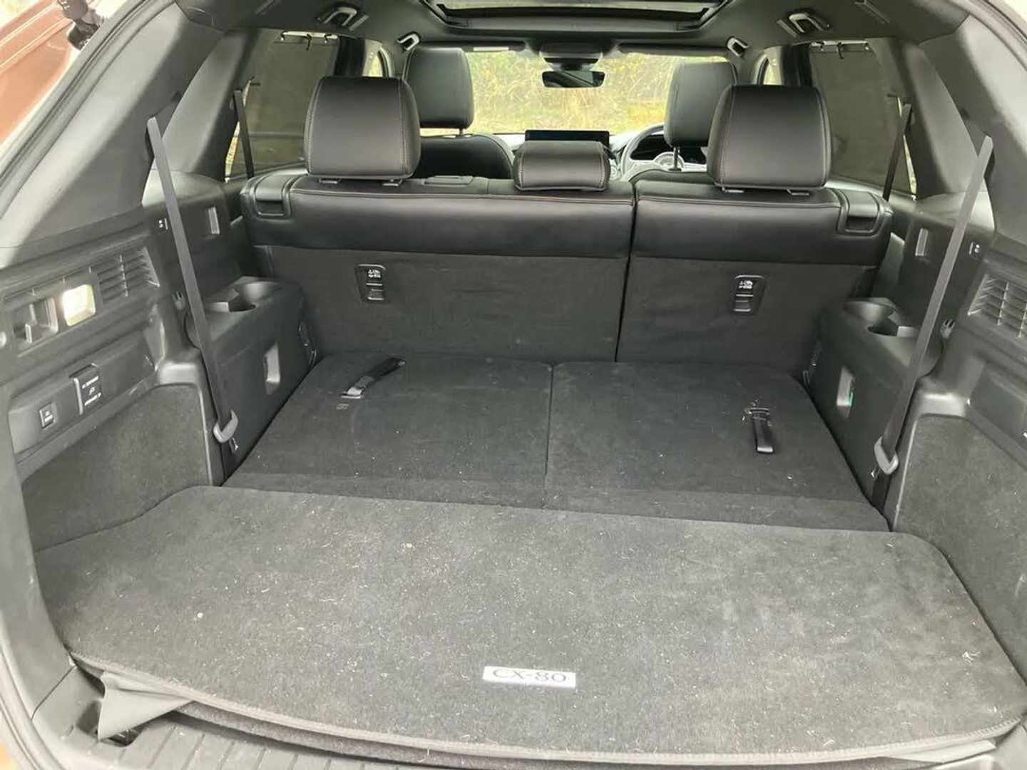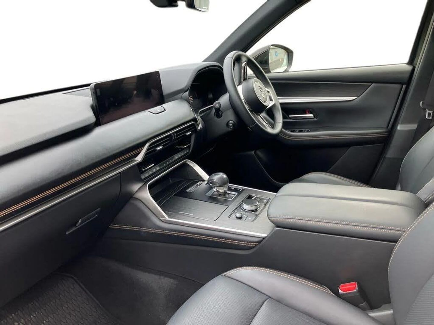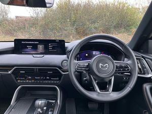 Emergency lane keeping with blind spot assist, Low washer fluid warning light,12.3" Colour entertainment centre display with mazda connect infotainment,12.3" TFT Colour display,Adjustable speed limiter,Blind spot assist,Blind spot monitoring with rear cross traffic alert,Distance alert system,Driver attention alert system,Driver Monitoring with personal identification,E-call with GPS,Emergency stop signalling system,Exit warning function,Front and rear parking sensors,Ingress / Egress support and automatic driver position guide,Integrated bluetooth,Intelligent speed assist,Kinematic posture control,Lane keep assist system (LAS) with Lane departure warning system (LDWS),Mazda Driver Personalisation System,Mazda Navigation System with european mapping,Multimedia Commander,PAS,Power lift gate with handsfree function,Power start/stop button,Speed alert,Traffic sign recognition enhanced with mandated excessive speed warning,Trip computer,Windscreen projected colour active driving display,Wireless apple car play/android Auto, Type 2 Mode 2 cable for AC charging via UK 3-pin plug,7.2 kw On board Charger,Internal Combustion Engine Sound Emulator,Mi-Drive (Normal, Sport, Off-road, Towing and EV mode),Type 2 Mode 3 cable for AC charging via home or public charge points,AM/FM and DAB radio,Bose surround sound system with 12 Speaker, Bose center point, Bass match and audio pilot technology,Steering wheel mounted audio/bluetooth controls,USB-C inputs (x2 front and x2 rear),Auto dimming driver's door mirror,Automatic headlight levelling,B-pillar and C-pillar garnishes in piano black finish,Body colour roof spoiler,Body coloured bumpers,Body coloured wheel arch and side mouldings,Coming/leaving home lighting function,Dark plated headlight lense,Dark plating finish signature wing in front grille,Dark plating front side garnish,Differentiated front bumper design to accentuate the intake,Dusk sensing headlights,Electric front/rear windows with one touch auto up/down,Electric panoramic sunroof,Electrically adjustable, heated auto power folding door mirrors with memory,Frameless auto dimming interior rear view mirror,Front kodo turn signal,Front wiper de-icer,Gloss black door mirrors,Headlight washers,High beam control,LED 3rd brake light,LED rear signature combination lamps,Piano black honeycomb style front grille,Rain sensing front wipers with adjustable sensitivity and speed,Rear side wing doors,Rear wiper,Signature LED daytime running lights,Silver decoration panel,12v power outlet - front,12V socket in boot,2 Heated captains chairs in 2nd row,2 seat bench in 3rd row,3 height adjustable rear headrests,3 seat bench featuring folding centre armrest equipped with two cup holders 2nd row,50/50 split folding 3rd row rear seats,60/40 split folding 2nd row rear seats,Ambient lighting,Black roof lining,Cargo net,Door panel trim - Cordovan-like Vinyl leather with matt black hairline film inlay,Driver and front passenger two rear grab handles with rear coat hooks,Driver and front passenger visors with covered vanity mirror and driver ticket holder,Driver seat electric tilt, slide, recline, height and lumbar adjustment,Driver, front passenger and two rear door pockets,Driver/passenger front seatback pockets,Electric telescopic and tilt adjustment steering wheel,Front centre storage with illumination and two cupholders,Front down lamp with front and rear foot lamps,Front headrests,Front passengers seat electric slide, recline, height and lumbar adjustment,Front seat ventilation with 3-stage setting,Glovebox illumination,Heated front seats with 3 stage setting,Heated leather wrapped steering wheel,Heated outer rear seats with 3-stage setting,ISOFIX child seat anchorage points attached on outer rear seats,Leather wrapped gear shift knob,LED illumination luggage compartment,Nappa leather upholstery,Paddle shift,Practical and spacious front centre armrest storage,Rear seat recline function for rear passenger comfort,Remote fold down rear seats,Remote pre-heating/cooling,Roof mounted sunglasses holder,Single front passenger seat,Three zone climate control air conditioning with rear air vents for 2nd and 3rd row,Convenience and Driver Assistance Pack - CX-80 PHEV,3 point ELR front seat belts x2 with pretensioners,3 point ELR rear seat belts,Active bonnet,Anti-lock braking system (ABS),Drivers knee airbag,DSC - Dynamic Stability Control,Electronic parking brake with auto disengage function and auto hold function,Front and rear curtain airbags,Front dual stage driver and single stage front passenger airbags,Front passenger airbag cut-off switch,Front side airbags,Front smart city brake support,Hill decent control,Hill launch assist,Manual rear child locks,Seatbelt reminder for driver/front passenger and rear seats,Traction control,Tyre pressure monitoring system (TPMS),Remote central locking with deadlocking and automatic door lock when driving,Smart keyless entry,Thatcham accredited alarm and immobiliser