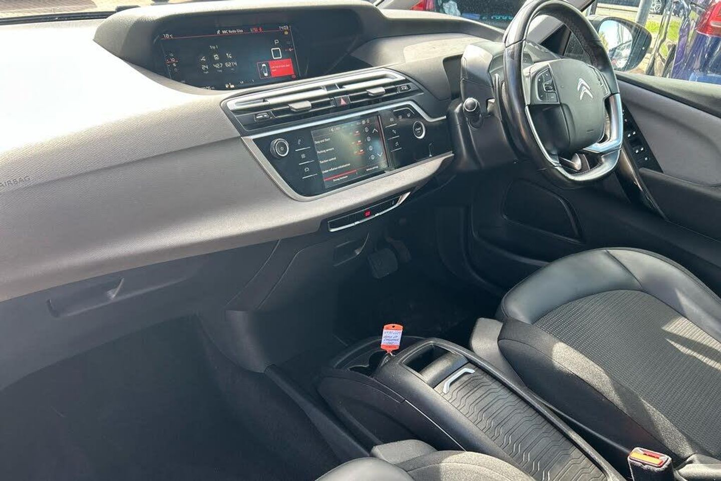 12'' Panoramic HD central display, 7'' Touch drive interface, Audible lights on warning, Citroen connect box emergency assist system, Citroen connect nav with speed cam and danger zones alert, Coffee Break Alert, Driver attention alert system, Find my car feature, Forward collision warning, Front parking sensor, Mirror screen with Apple CarPlay and Android auto, Programmable cruise control and speed limiter, Rear parking sensors, Reversing camera, Service indicator, Speed limit recognition system, Trip computer, Variable assistance power steering, Diesel particulate filter, Bluetooth hands free and media streaming, DAB Digital radio, RDS radio with 6 speakers and Aux socket, Steering wheel mounted controls, 3D effect rear lights, Aluminium front sill scuff protectors, Aluminium side profile with integrated roof bars, Auto dimming electrochrome rear view mirror, Automatic activation of hazard warning lights, Automatic lights and windscreen wipers, Black electrically heated and folding door mirrors with LED courtesy light, Body colour bumpers, Body colour painted door handles, Chrome lower front bumper insert, Cornering function, Dark tinted side windows and rear windscreen, Front and rear electric windows with anti pinch and one touch operation, Front fog lights, Halogen twin optic headlights, High level LED brake light, Kerb lighting (puddle lights in door mirrors), LED daytime running lights, Panoramic athermal windscreen with sliding interior sun blinds, Rear fog lights, Rear wiper, Windows total closure mode, 12 volt accessory power socket in central storage compartment, 8 lashing eyes in boot, Additional 12 volt sockets in boot, Air vents for row 2 rear seat passengers, Automatic digital dual zone air conditioning, Black panel on/off instrument lighting, Boot light, Cup holders, Dimmable interior mood lighting, Driver and front passenger seats adjustable armrests, Driver/passenger sunvisors and vanity mirrors, Fabric load cover (parcel shelf), Front and rear courtesy reading lights, Front and rear floor mats, Front door pockets, Height adjustable front passenger seat, Height and reach adjustable leather steering wheel with control zones, Height/tilt adjustable driver's seat, Illuminated and ventilated glove box, Illuminated central storage compartment (housing USB and 12 volt connection), Ondulice cloth/leather upholstery with hype grey ambience, Rear underfloor storage [row 2], Removable centre storage box with sliding lid, Seats with individual sliding fore/after adjustment in row 2, Storage under driver's seat, Three individual full size seats with adjustable recline angle and retractable headrests in row 2, Three ISOFIX mounting points with top tether on all row 2 rear seats, Two individual seats with retractable headrests in row 3, ABS with Electronic brakeforce distribution and Emergency braking assistance, Active safety brake, Automatic electronic parking brake, Driver, front passenger, front lateral and curtain airbags, Electronic Stability Control (ESC) with intelligent traction control (auto re-activation 30mph+), Five 3 point inertia reel seat belts, Front inertia reel seatbelt with pre-tensioners and force limiters, Hill start assist function, Mono-tone horn, Passenger airbag deactivate switch, Tyre pressure monitor, Tyre under inflation indicator, Unfastened seatbelt visual warning system on all seats + audible warning for driver/front passenger (front passenger presence detection), Immobiliser, Keyless entry and start, Perimetric and volumetric anti theft alarm, Remote central locking + deadlocks, Aluminium dashboard trim and air vent surrounds, 17'' Shamal diamond cut alloy wheels