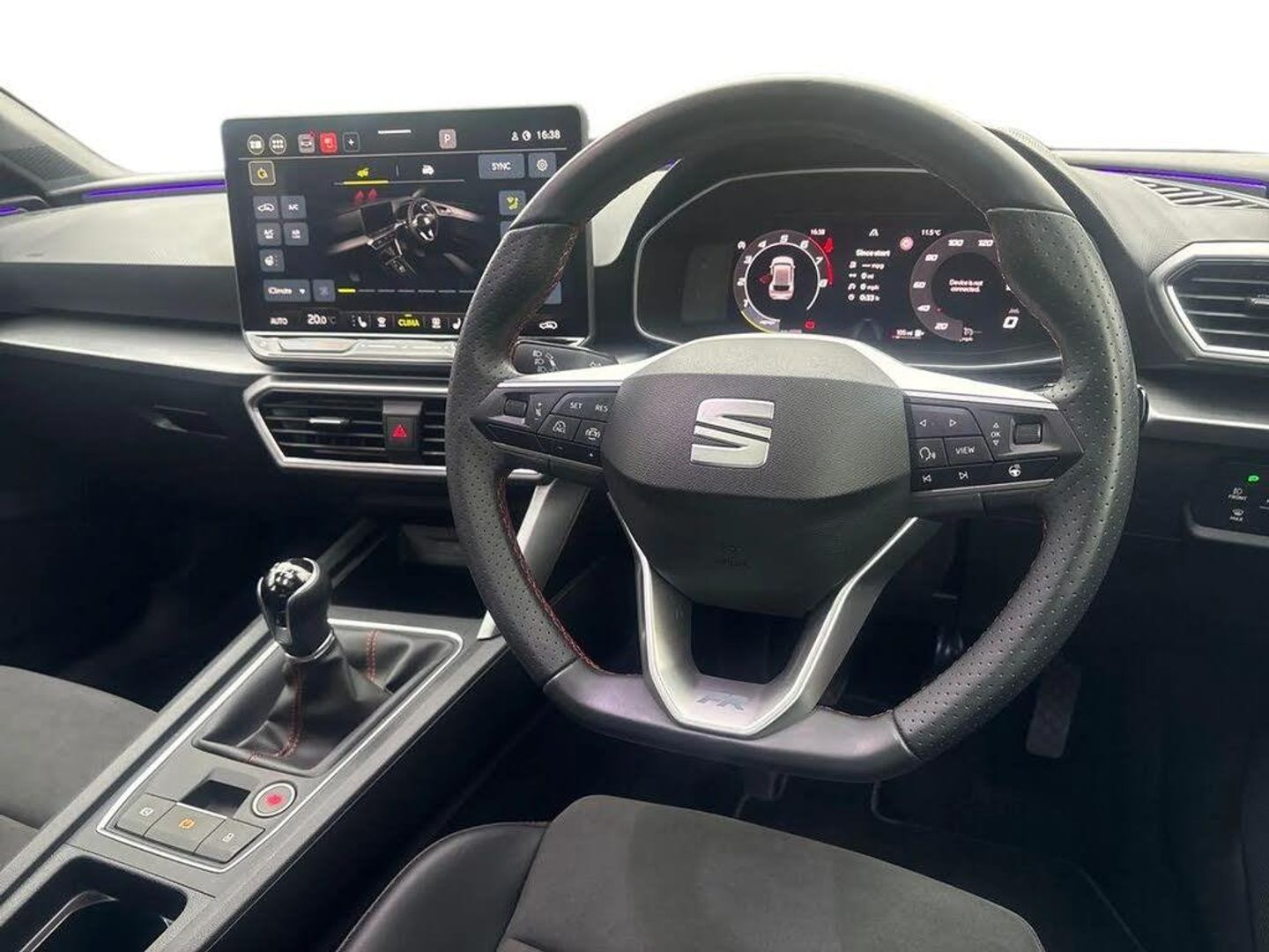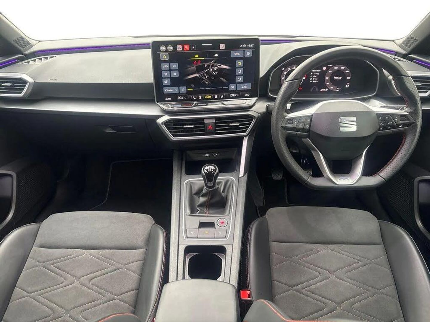 Digital cockpit with multifunction display,Driver attention alert with drowsiness warning,E-call,Front assist with forward collision warning braking reaction to vehicles, pedestrians and cyclists,Full link smartphone integration with Mirror Link, wireless Apple CarPlay and wired Google Android Auto,Intelligent speed assist,Lane assist,Lockable tailgate,Park assist (inc front/rear parking sensors),Power assisted speed sensitive electro-mechanical steering,Rear view camera,RPM, trip computer, outside temp gauge, instrument light brightness, low fuel warning light, lights on reminder, gearshift indicator,SEAT drive profile with 4 modes (Eco/Normal/Sport/Individual), throttle response,Service interval indicator,Start/stop system with regenerative braking,Sports suspension,XDS electronic differential lock and dynamic traction support,2 front and 2 rear USB-C ports,Auxiliary input socket,Auto dimming rear view mirror,Black door mirror housings,Black roof spoiler,Black side skirts,Body colour door handles,Body coloured bumpers,Dark tinted rear windows,Door mirror LED indicator lights,Dynamic headlight range control,Electric adjustable/heated/folding door mirrors with memory,Electric front/rear windows,FR sports bumper,Illuminated front door sill,LED front fog lamps,LED rear fog lamp with rear coast to coast light,Matrix LED headlights and beams with variable light distribution, LED rear light and dynamic turn signals,Panoramic sunroof,Rear side wing doors,Rear wash/wipe,Separate daytime running light with automatic headlight control and coming home feature,Third brake light,Welcome light silhouette from exterior mirrors,Windshield wiper intermittent control with light/rain sensor,12v power point in centre console,3 seat bench in 2nd row,60/40 split rear bench seat with armrest,Ambient lighting with glovebox, footwell and single monocolour,Black headlining,Dust/pollen filter,Electric driver lumbar support + passenger manual lumbar support,Folding boot cover,Front and rear height adjustable headrests,Front and rear reading lights X 4,Front centre armrest,Front seatback storage pockets,Heated front seats,Heated leather steering wheel with leather gearstick,Height/reach adjust steering wheel,Interior wraparound lighting (FR),ISOFIX points in outer rear seats with top tether anchorage points,Luggage tie-down hooks,Microsuede cloth upholstery,Power driver seat with memory and manual height adjustable passenger seat,Single front passenger seat,Sunvisors with covered illuminated mirror,Three zone climate control,Media system plus with navigation - Leon,3 point seatbelts on all rear seats,ABS,Brake control system - ESC and brake booster,Child proof door locks,Driver and front passenger airbags with front passenger airbag de-activation, front side and curtain airbags,Electronic parking brake,Extended safety system - seat belt tensioner, window closure and hazard lights,Hill hold control,Rear disc brakes,Seat belt reminder for front and rear seats,Tyre pressure monitoring system,Anti theft alarm system with interior monitoring in cab, backup horn and towing protection,KESSY Advanced - Keyless start, keyless entry,Locking wheel bolts,Wireless phone charging,Chrome interior detailing,18" Black alloy wheels,Tool kit without jack