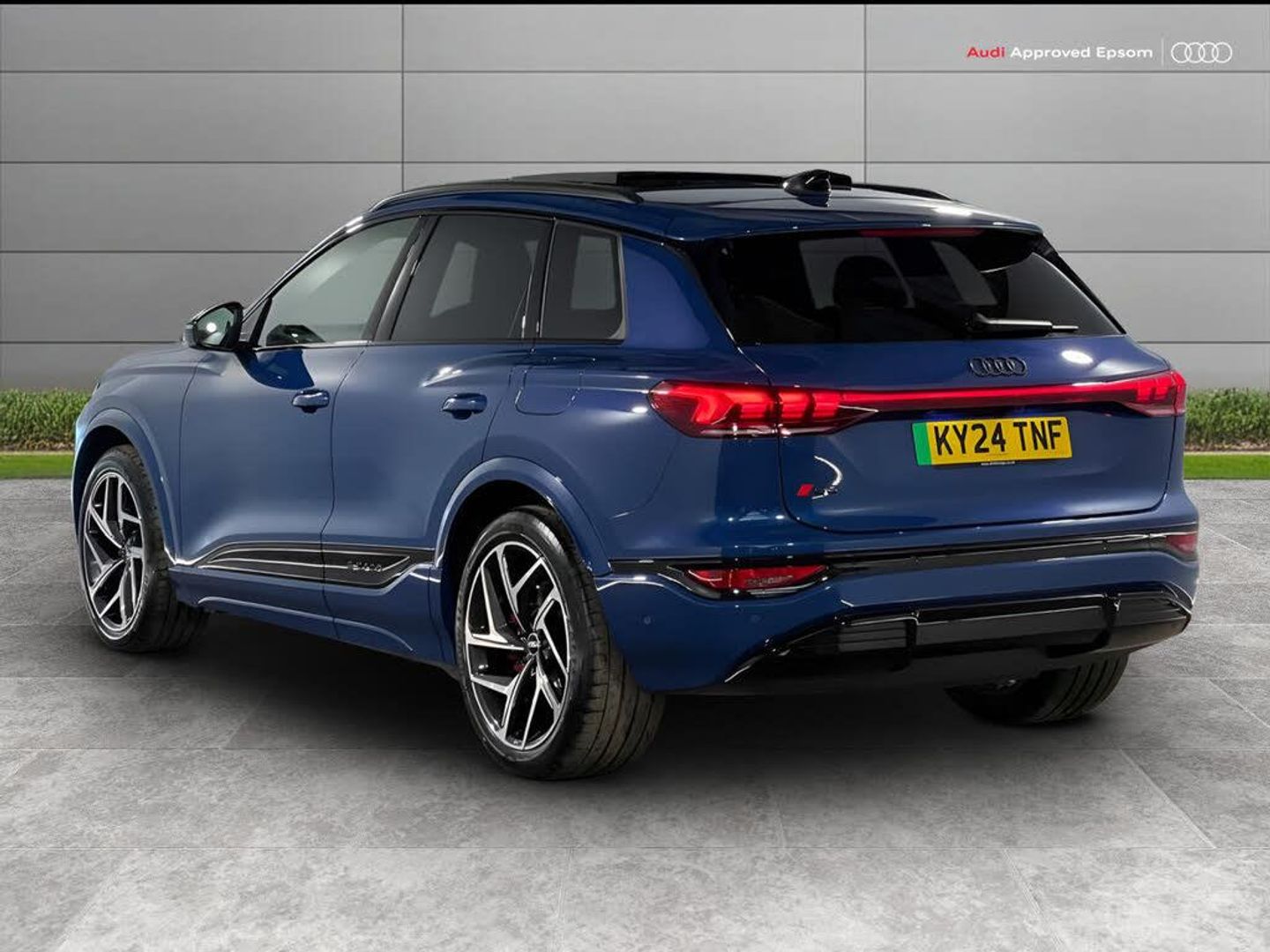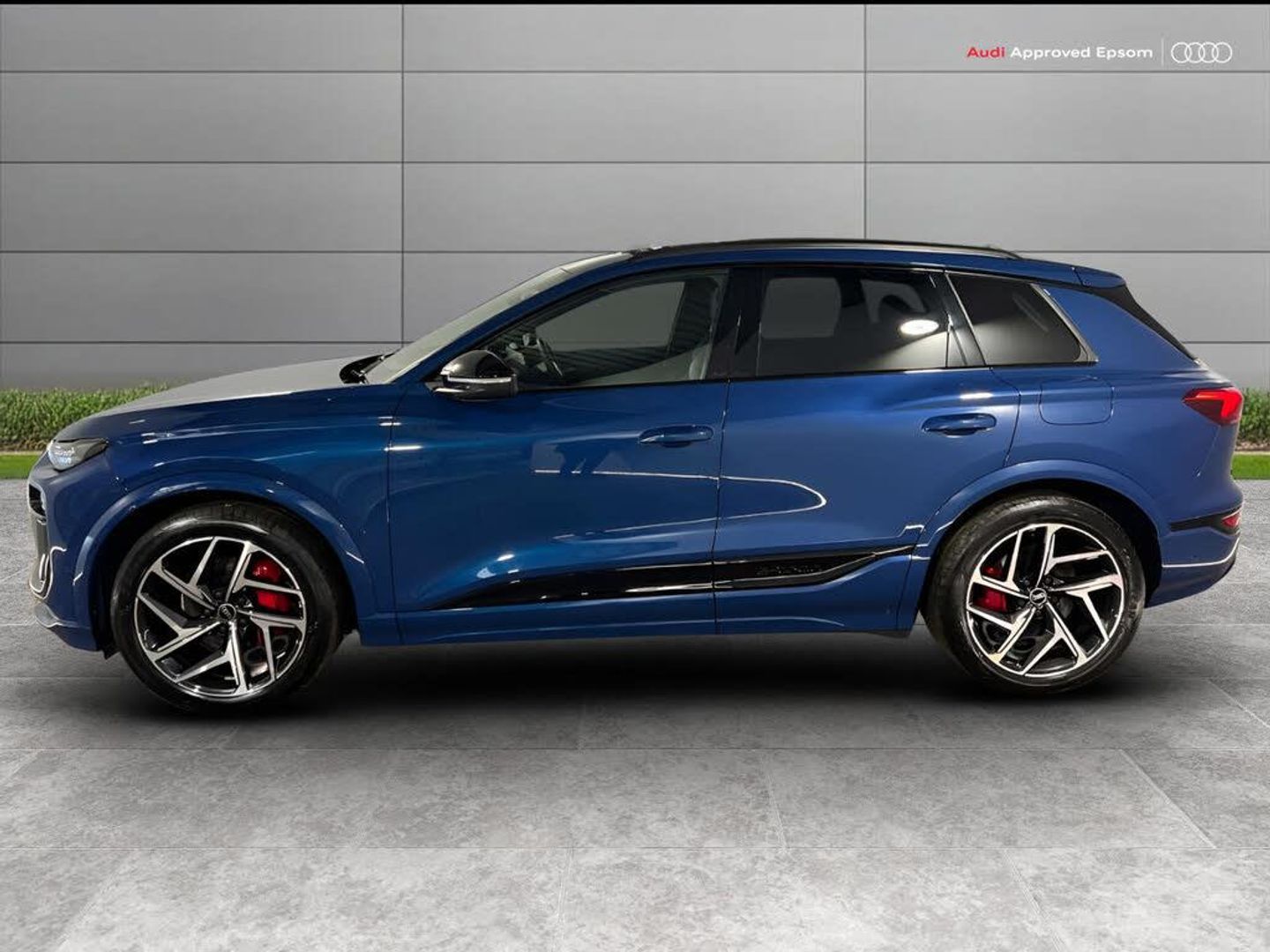 Adaptive cruise assist plus with steering intervention, Advanced driver attention and fatigue montior, Audi application store, Audi assistant, Audi connect emergency call and service, Audi connect navigation and infotainment, Audi connect remote and controls, Audi drive select, Audi parking system plus includes 360 degree display with front and rear sensors, Audi smartphone interface, Audi virtual cockpit plus with 11.9" OLED colour display, Camera traffic sign recognition, Comfort key with SAFELOCK, Garage door opener, Intersection assist, Lane change assistant with exit warning system, rear cross traffic alert and rear turn assist, Lane departure warning with emergency assist, MMI 10.9" front passenger touch display, MMI navigation plus with high resolution 14.5" OLED touchscreen colour display, Park assist plus, Progressive steering with servotronic, Swerve assist and turn assist, Top view camera, Traffic sign based speed limiter, 11KW onboard charger, Adaptive air suspension, Compact e-tron charging system, E-tron sport sound, Household plug type G (GB), Industrial connector CEE 32A, 230V, long and straight for the e-tron charging system, Mode 3 charging cable for public charging, 22 KW (AC), On-board charger up to 270 KW (DC), Plug n charge, Quattro all wheel drive, Second charging port (AC), Wall mounted bracket for compact e-tron charging system, 2 front and 2 rear USB-C ports, DAB Digital radio, Smartphone compartment with wireless charging, "edition" Audi beam, Acoustic glass for front door windows, Acoustic windscreen, Active digital light signature with eight combination of active daytime running light, Auto dimming rear view mirror, Black door mirrors, Black roof rails, Black window surrounds, Darkened matrix headlights, Digital OLED tail lights including communication light, Door mirror memory, Electric adjustable/heated/folding door mirrors with auto dimming, Electric charging cover, Front door sill trims with aluminium inlays, illuminated, Full paint finish, Headlight cleaning system, High beam assist, LED 3rd brake light, Logo projection light in exterior mirrors, Panoramic sunroof, Privacy glass, Rear side wing doors, Rear wiper, Side and rear windows in heat insulating glass, Special metallic paint, Towbar preparation, 3 bench rear seats in 2nd row, 3 rear head restraints, 3 spoke multifunction heated leather steering wheel with touch control, flat on top and bottom, with 'S' badge,contrast stitch, 3 zone automatic climate control including comfort remote pre-conditioning, 40:20:40 split folding rear seat bench , centre armrest and cupholders, Black carpets, Black cloth headlining, Comfort front centre armrest, Driver seat memory function, Electrically adjustable front seats, Electrically adjustable steering column, Fine Nappa leather upholstery with diamond stitching, Front sport seats plus with 'S' embossed logo, Front/rear floor mats, Heat pump, Heated front and outer rear seats, i-Size child seat mounting on the front passenger side and outer rear seats, i-Size and top tether on the outer rear seats, Integrated front head restraints, Key cover in body colour paint, Luggage compartment lid, electrically opening and closing, Pneumatically adjustable lumbar support with massage function, Single front passenger seat, Stainless steel pedals and footrest, Steering wheel grips in perforated leather and shift paddles, Black styling package plus - Q6, Sound and vision pack - Q6, Storage and Luggage compartment pack incl. frunk luggage compartment - Q6, 3 point seatbelts on all seats, Acoustic vehicle alerting system, Airbags in front, front passenger airbag is automatically activated and deactivated, Electric child locks, Front and rear side airbags with head airbag system, Front emergency brake assist, Front interaction airbag, Hill hold assist, Occupant detection sensor - 2nd row, Proactive passenger protection system for front, sides and rear, Rear seat occupant reminder for child presence detection, Red brake calipers, Seat belt monitoring, Tyre pressure loss indicator, Warning triangle and first aid kit, Anti theft alarm, Anti-theft wheel bolts, Accent surfaces and control buttons in gloss black, Black dashboard with contrast stitching, Inlays in anthracite high tech mesh, Upper and lower interior elements in dinamica microfiber, 21" x 9.0J 10.0J 5 Y-spoke dynamic style metallic black gloss turned finish audi sport alloy wheels, Tyre repair kit
