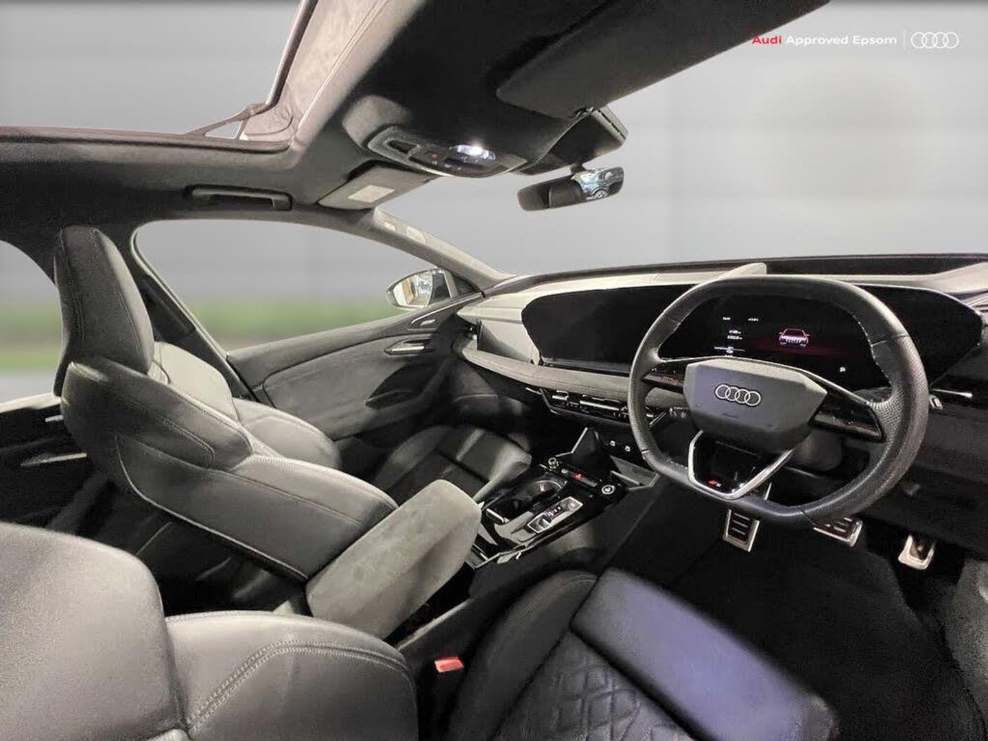 Memory function for the driver seat and the exterior mirrors, Operating permit, alteration, edition one, Blue, Full paint finish, Without customized installation, S line, Park assist plus, Seat belts, Adaptive cruise assist plus, e-tron sport sound, Accent surfaces and control buttons, Gloss Black, Audi Application Store and smartphone interface, Audi connect emergency call & service with Audi connect remote & control, MMI front passenger display, Intersection assist, Surround view cameras, Augmented reality head-up display, Digital light signatures, Fine Nappa Leather with diamond stitching, Exterior package, Black, Brake calipers painted Red, edition one, Blue, Comfort package pro with Anti-Theft package, Interior S with sport seats plus in leather, Black, MMI experience pro, Assist package Drive and Park plus, Safety package, S line exterior, Suspension package comfort, Storage and Luggage Compartment package and front compartment, Sun protection glass, tinted, Ambient Lighting package plus, Sport seats plus, front, Upper and lower interior elements, Dinamica microfiber, Special control, Special vehicle for launch, USB interfaces with higher charging capacity, Garage door opener, Stainless steel pedals and footrest, Door sill trims with aluminum inlays, front, illuminated, S logo, Acoustic glass for front door windows, Audi Sport wheels, 5-Y-spoke dynamic, Black Metallic, gloss turned finish, 9.0J!10.0J x 21, 255/45!285/40 R21 tires, Ramp-up scenario F, Floor mats, front and rear, Without special color trim, adaptive air suspension, Projection light in the exterior mirrors, First aid kit with warning triangle and safety vest, Sport leather steering wheel, 3-spoke, flat top and bottom with multifunction and shift paddles, Disc brakes in front, 18-inch, brake calipers painted in Red, Steering wheel adjustment, electric, Disc brakes in rear, 18-inch, brake calipers painted in Red, Digital key, Bumpers, S line, Panoramic glass roof, Front seats, electrically adjustable, Roof rails in Black, Without seat ventilation/massage seat, Swerve assist and turn assist, Convenience key with safelock, Interior mirror, automatically dimming, Black styling package plus, Decorative inserts in Anthracite technical fabric, Front head restraints, Side airbags, front and rear with head airbag system and interaction airbag, front, Comfort center armrest, front, Black exterior mirror housings, Steering wheel trim in chrome look, S emblem, st. wheel grips in perforated leather and contrasting stitching, Lane departure warning with emergency assist, Headlining in cloth, Black, Exterior mirrors, electrically adjustable, heated and folding, automatically dimming on both sides, Anti-theft alarm, Upper part of instrument panel, Black with contrasting stitching, Proactive occupant protection, front, side and rear, Side assist and exit warning, rear cross-traffic assist and rear turn assist, Matrix function, Lumbar support, pneumatically adjustable with massage function for the front seats, LED headlights plus, darkened, Front emergency brake assist, Bang & Olufsen 3D Premium Sound System with head restraint loudspeakers, Adaptive cruise control, Digital OLED rear lights, Headlight cleaning system, Parking system plus with distance display, Convenience package 3 (only for Audi/Bentley/commercial vehicles), MMI experience pro, Assist package Drive and Park plus, Assist package, protective and warning systems plus, Interior equipment 14, Equipment options subset for Great Britain