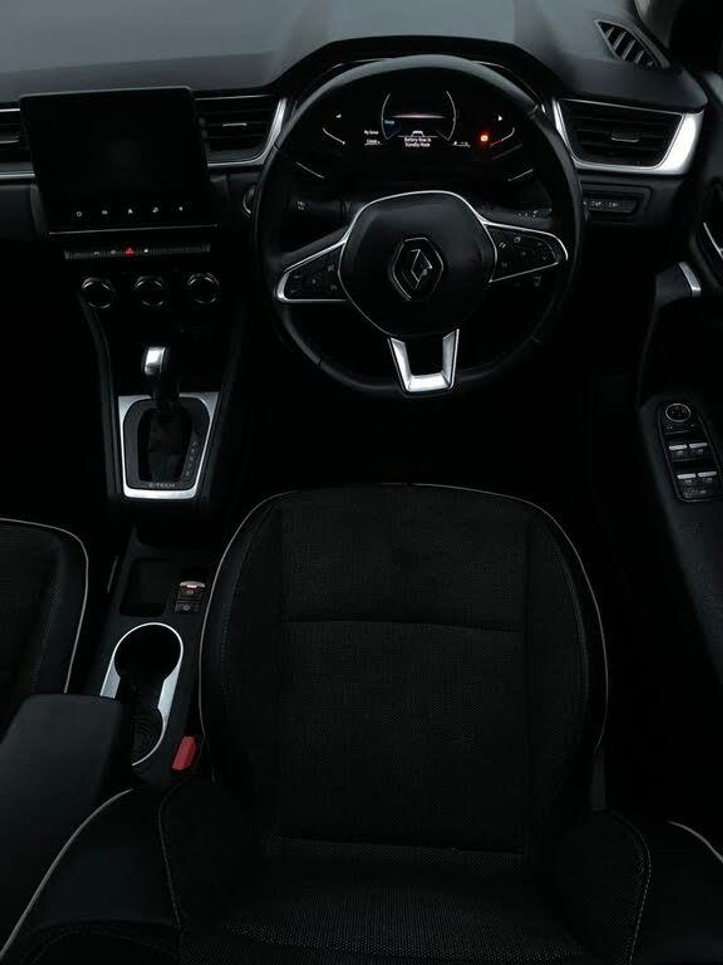 18in Alloy Wheels - Pasadena - Diamond Cut with Grey Insert, 2 Front Reading Lights LED and Central Rear Roof Light with 3 Reading Lights LED, 2 Reverse Gear LED Lamps and 1 Rear LED Fog Lamp in Bumper, 7in TFT Driver Information Display, ABS with EBA - Emergency Brake Assist, AEBS - Active Emergency Braking System, Airbags - Deactivation - Front and Side - Driver and Passenger, Airbags - Driver and Front Passenger - Side - Head and Curtain, Anti Drill Door Locks and Locking Fuel Cap, Auto Dimming Rear View Mirror, Automatic Air Conditioning with One Touch Quick Demist Function and Air Quality Regulator, Automatic Headlights, Automatic Windscreen Wipers with Rain Sensors, Black Side Door Protection with Chrome Insert, Black Soft Touch Dashboard, Bluetooth - DAB Radio and USB Ports, C-Shaped LED Front and Rear Lighting Signature with 3D Effect on the Rear Lights, Central Console with Storage, Central Door Locking, Chrome Around Front Air Deflectors - Front Wing Deco Element and Window Lining, Cruise Control with Speed Limiter, Daytime Running Lights, Deadlocking, Distance Warning Alert, Driver Seat Belt Height Adjustable, ECO Mode Function, ESC - Electronic Stability Control, EV Button to Activate 100% Electric Drive, Easy Link Navigation with 7in Touchcreen, Electric Windows - Front With Driver One Touch Facility and Anti-Pinch Function, Electric Windows - Rear, Electronic Parking Brake with Auto-Hold Function, Extra Tinted Windows - Rear and Tailgate, Front Grille with Chrome on Upper Part, Front Passenger Height Adjustment Seat, Front and Rear No Seatbelt Warning Sound, Full LED Headlights, Gear Change Indicator, HSA - Hill Start Assist, Hands Free Keycard - Keyless Access and Start, Headlights - Automatic High-Low Beam, Heating System with Pollen Filter, ISOFIX Child Seat Fixing Points on Rear Outermost Seats, LDW - Lane Departure Warning, LED Turn Indicators in Side Wing Mirrors, LKA - Lane Keep Assist, Longitudinal Roof Bars, MULTI-SENSE - 3 Driving Modes and 8 Ambient Lighting, Modular Boot Floor, Parking Sensors - Front and Rear, Rear Air Vents, Rear Door and Window Child Locking Function - Front Driver Door Control Panel for Rear Door, Rear LED Fog Lights, Rear Seats - 1-3 2-3 Foldable Sliding Bench, Rear-View Camera, Renault Automatic Emergency Assist - E-Call, Seats - Drivers Height Adjustment, Shark Fin Antenna, Skid Plates - Front and Rear - Grey, Smartphone Integration with Apple CarPlay and Android Auto, Steering Wheel - Height and Reach Adjustable, Steering Wheel - Synthetic Leather, Traffic Sign Recognition with Overspeed Prevention, Trip Computer, Tyre Inflation Kit, Tyre Pressure Warning Light, Variable Power Assisted Steering - Electrical, Windscreen Wipers - Rear, Wireless Phone Charger, Diamond Black, Synthetic Leather-Cloth - Black and Grey with Grey Stitching